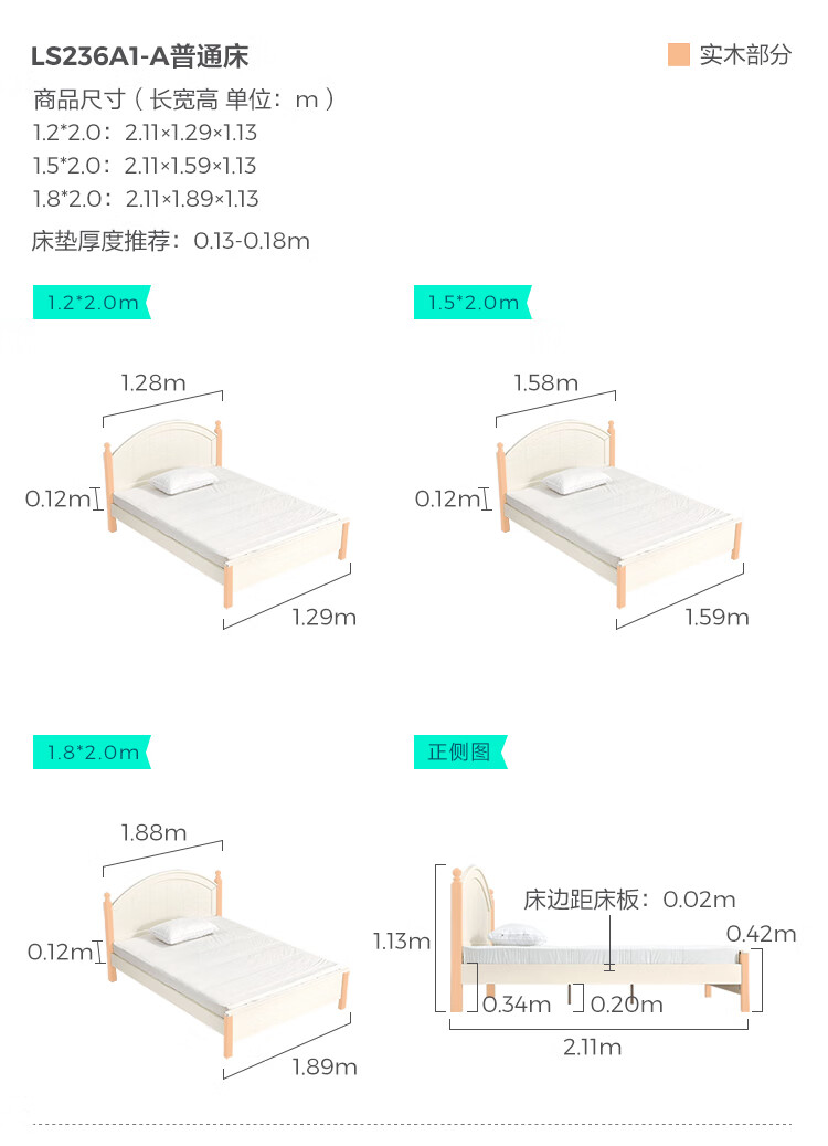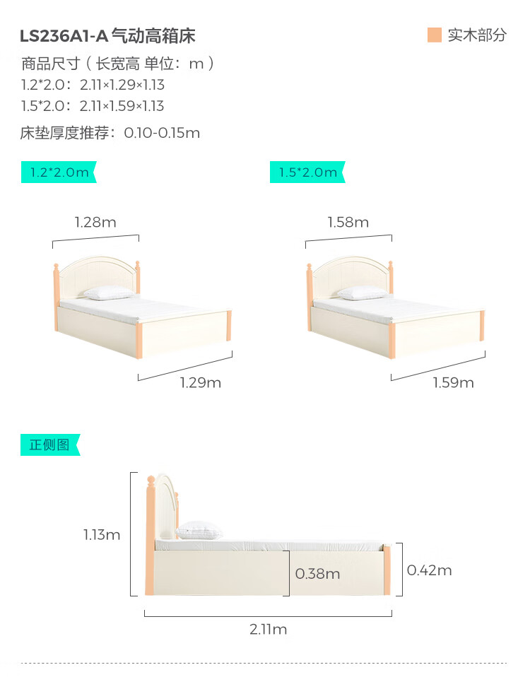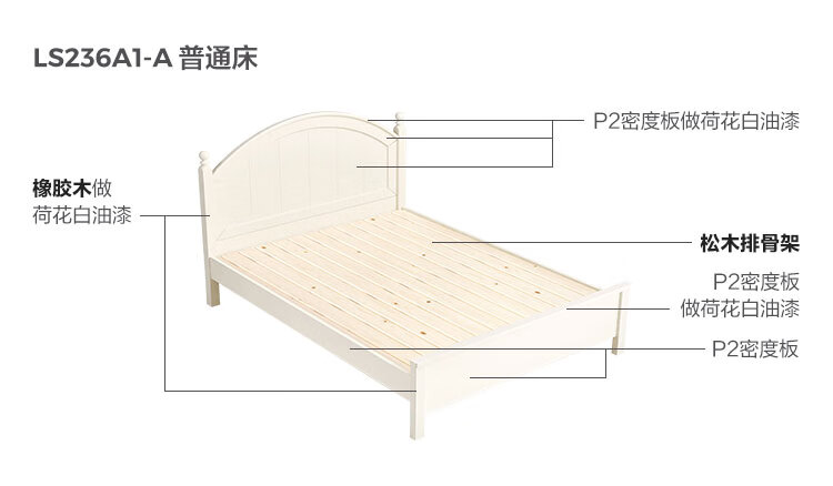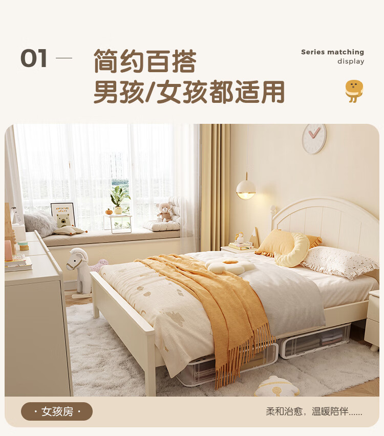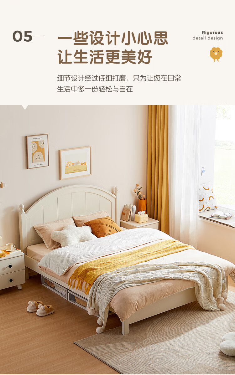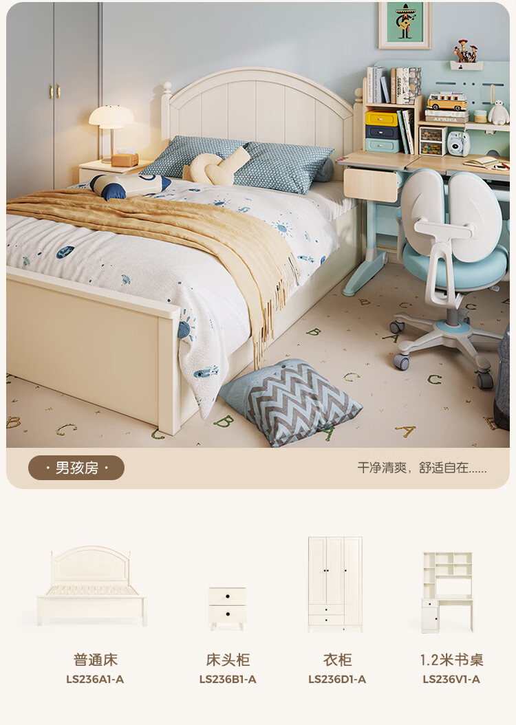 LINSY KIDS Lin's children's bed boys and girls single bed cream style double bed boys and girls 1.5*2 meters LS236A1-A