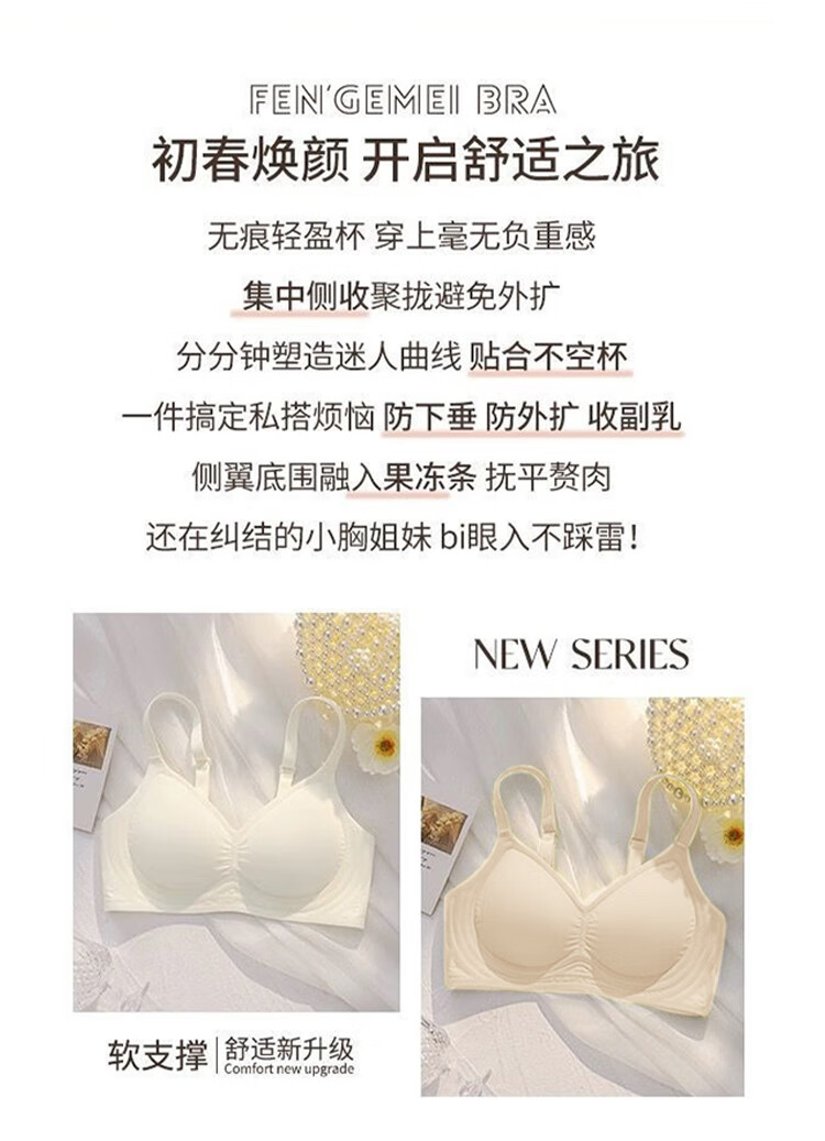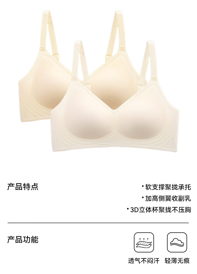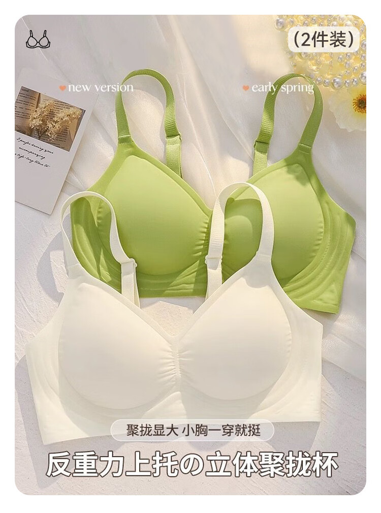 FitonTon 2-pack seamless underwear women's wire-free bra soft support anti-sagging push-up comfortable invisible bra