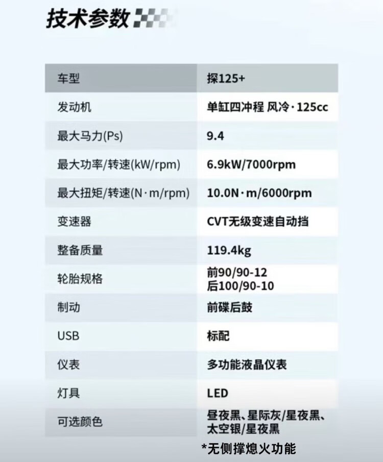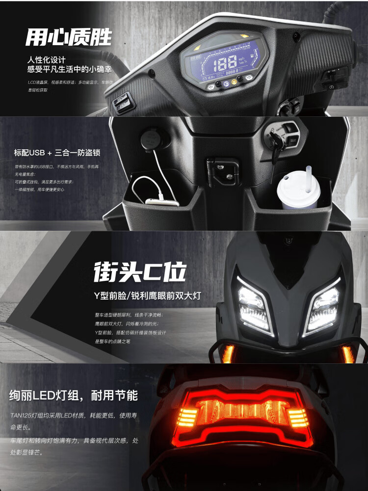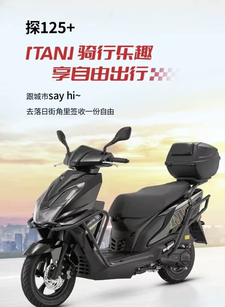 Qianjiang TAN125+ scooter, fuel-saving and light for commuting, cost-effective takeout, trunk + guard, starry night black