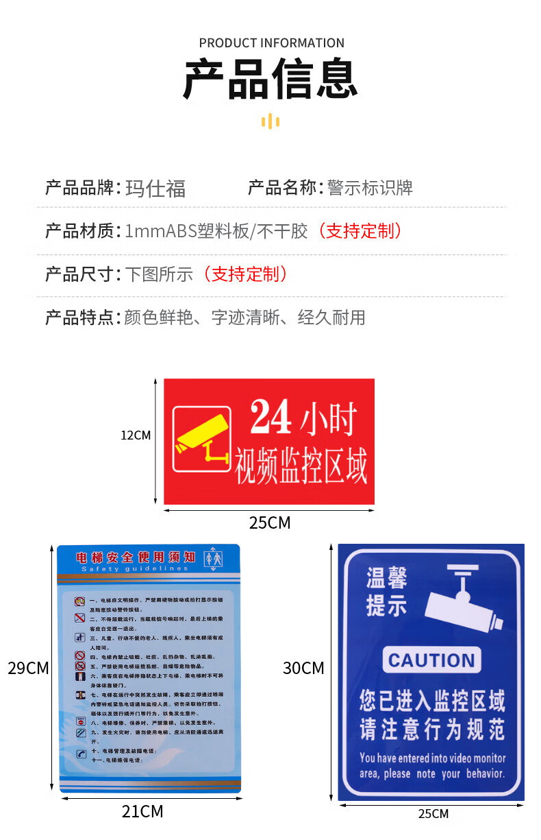 Masifu You have entered the surveillance area. Please pay attention to the code of conduct. Safety sign sticker 25*30CM (2 sheets)