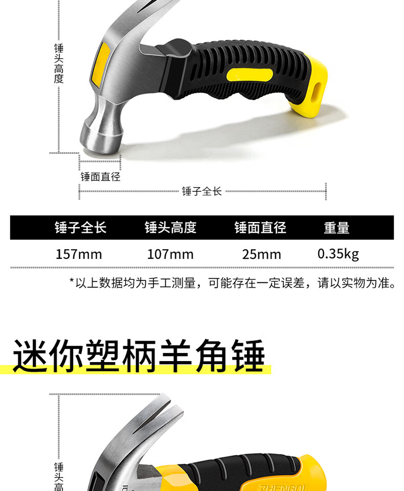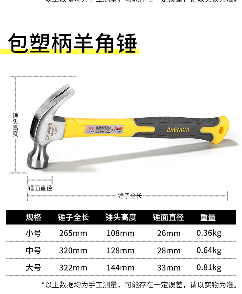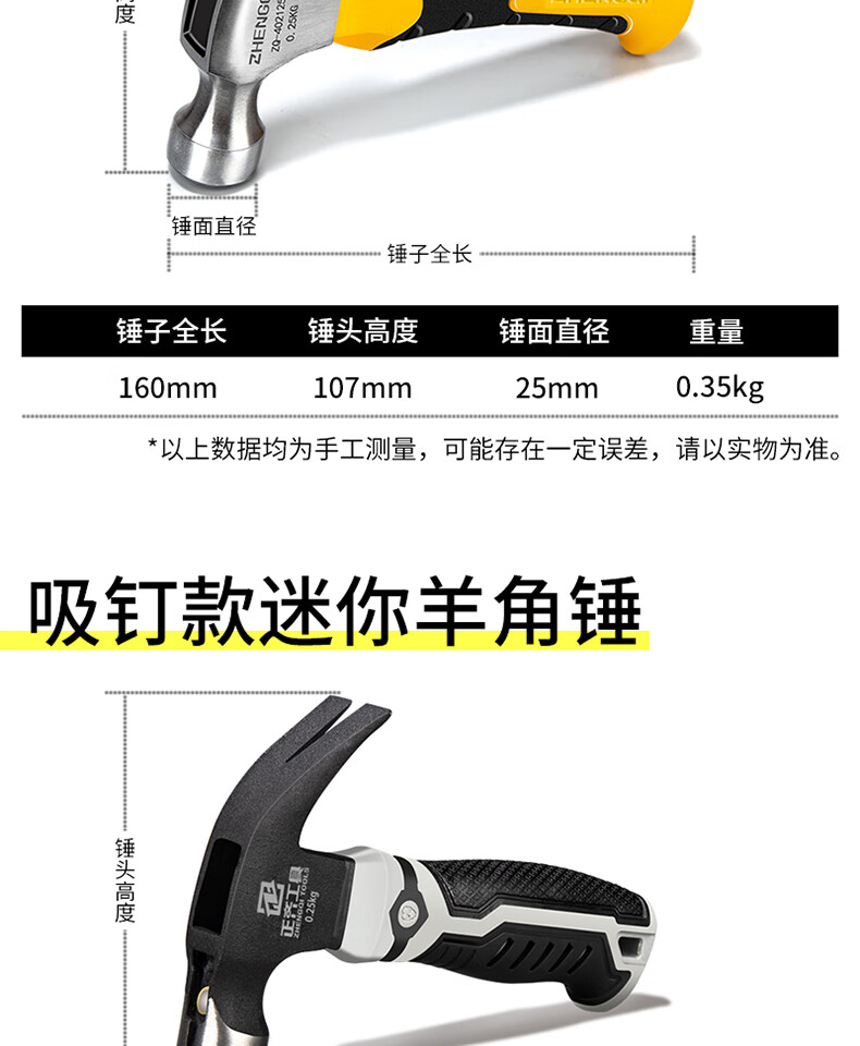 Zhengqi claw hammer integrated hammer head hammer woodworking special mini small hammer hammer household hammer multi-functional tool