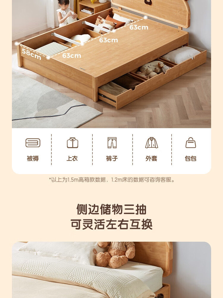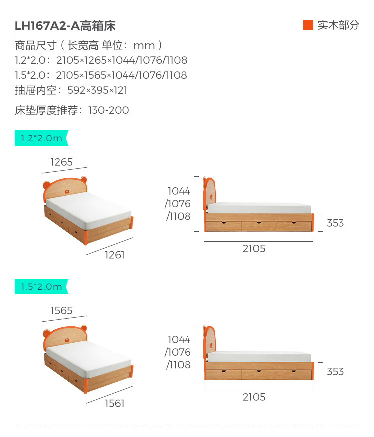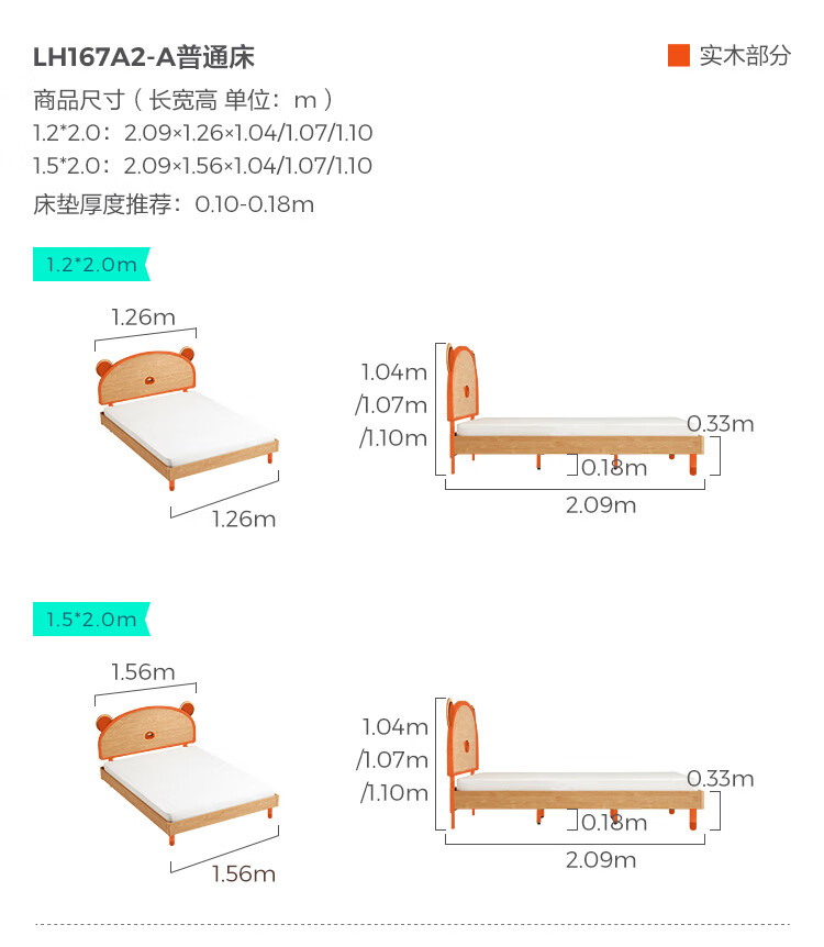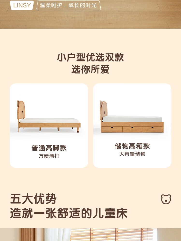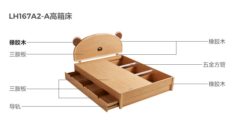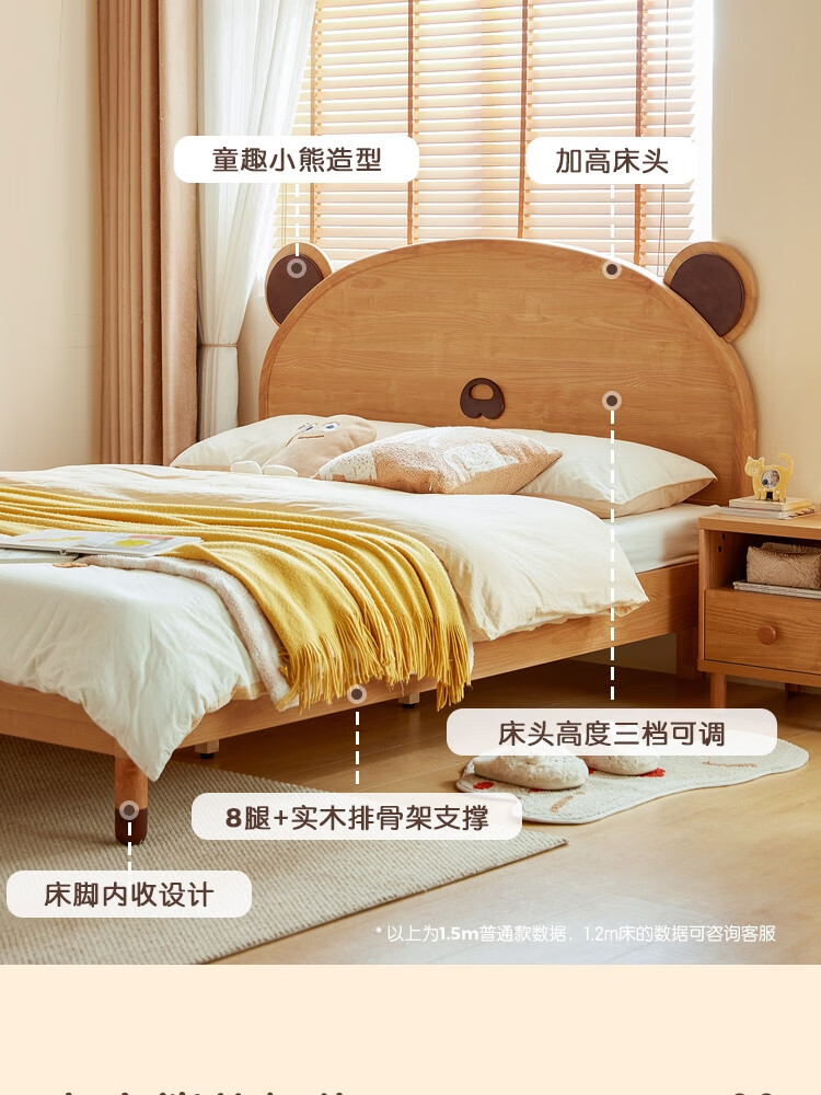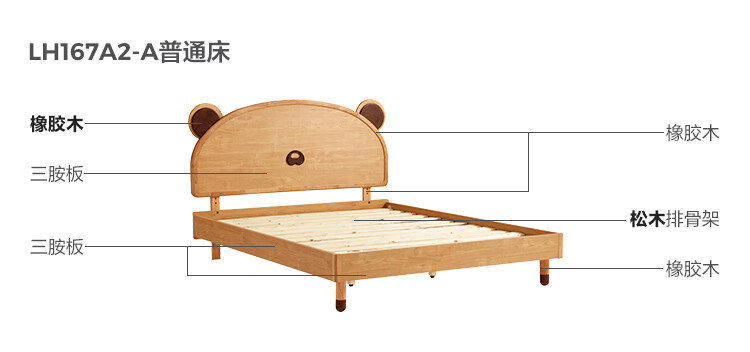 LINSY KIDS Lin's children's bed cartoon bear bed boys and girls single bed LH167A2-A bear bed 1.2*2m