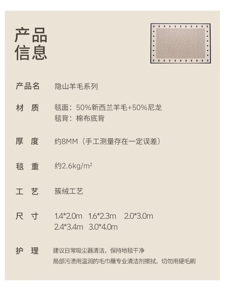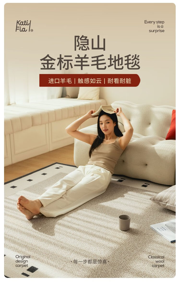 Cartifiya carpet living room imported wool non-slip light luxury high-end sofa bedroom blanket Yinshan-wool 2*3 meters