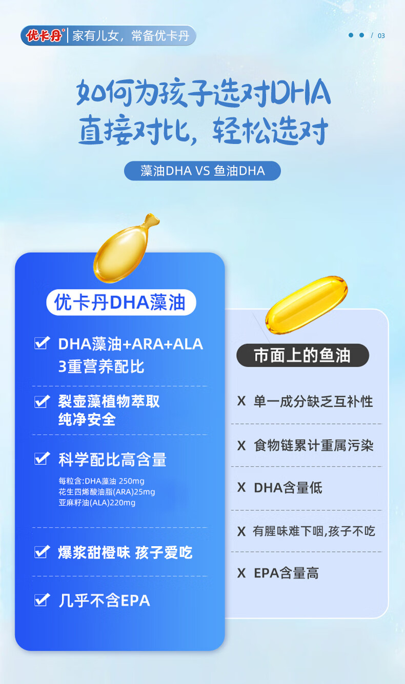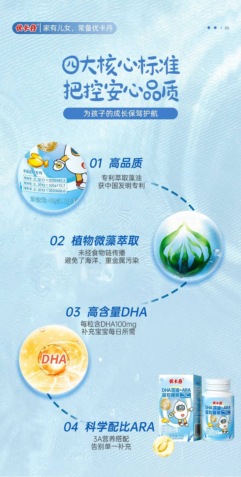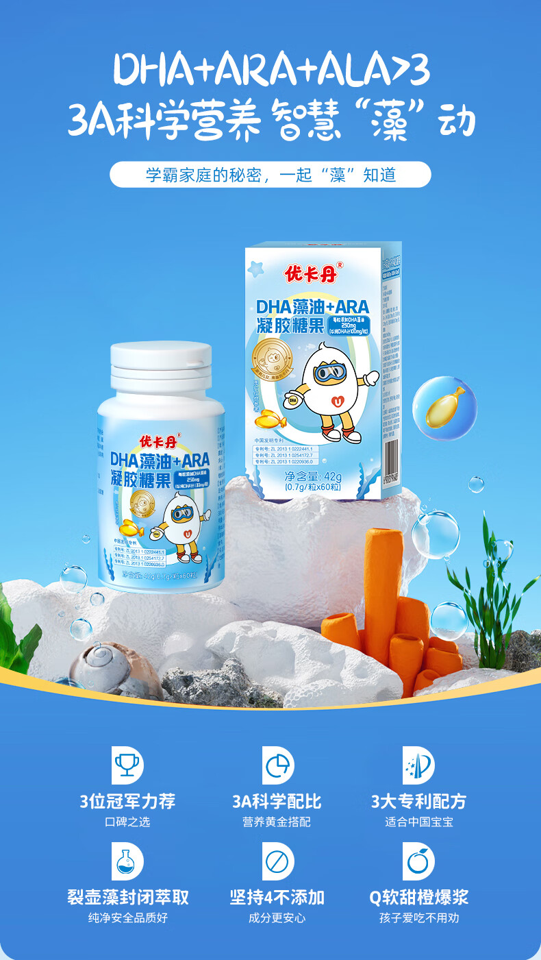 Eucatan DHA algae oil gummies for children, infants, teenagers and students, specially containing ARA, no fishy smell, 3 bottles