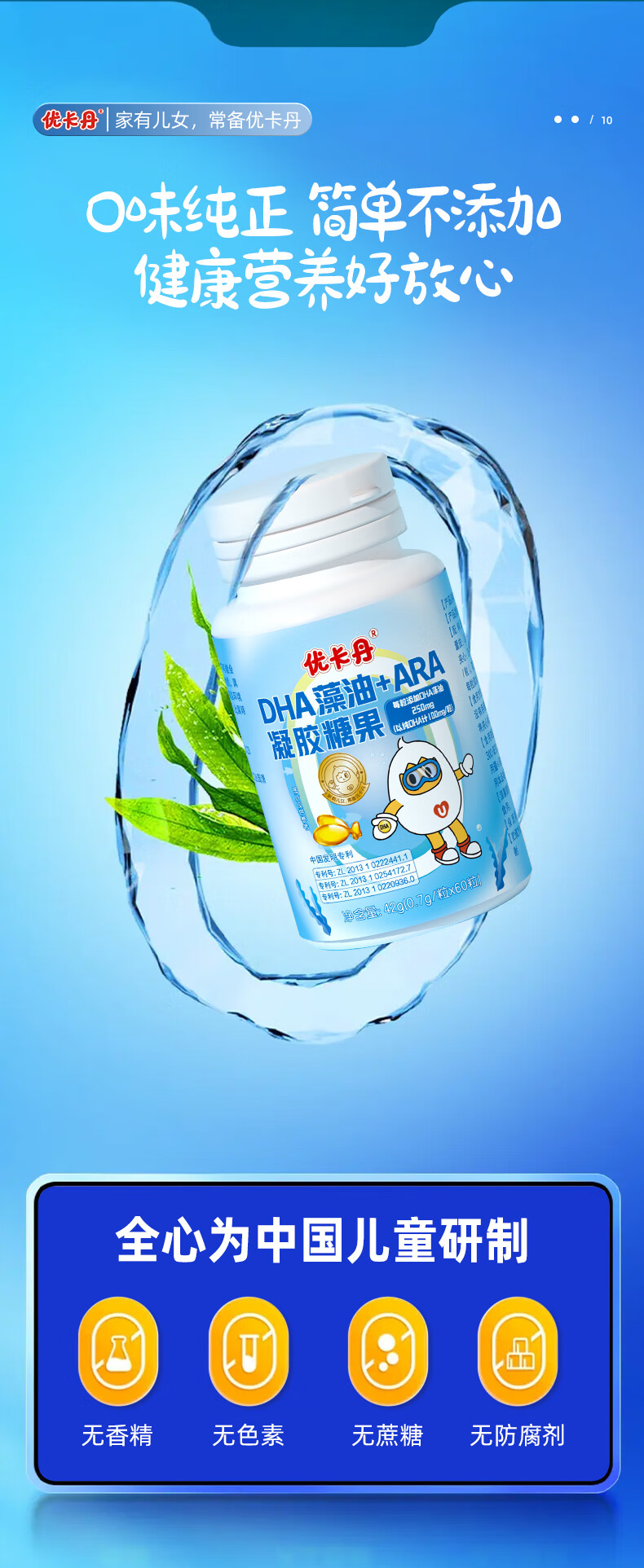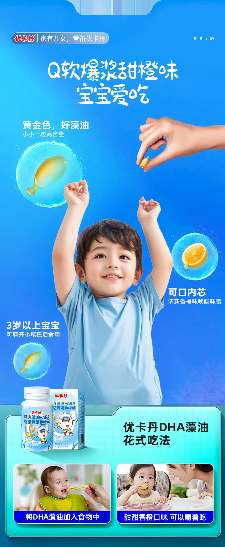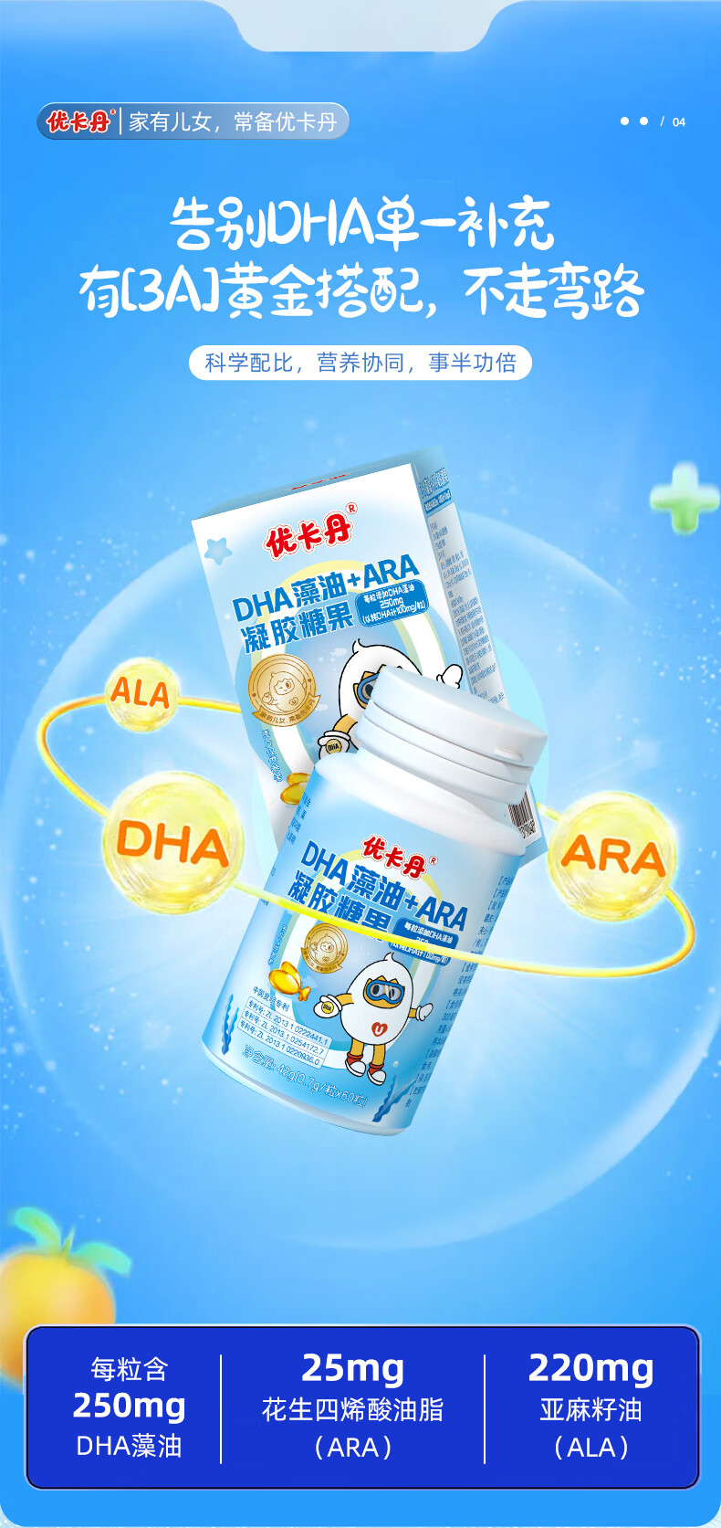 Eucatan DHA algae oil gummies for children, infants, teenagers and students, specially containing ARA, no fishy smell, 3 bottles