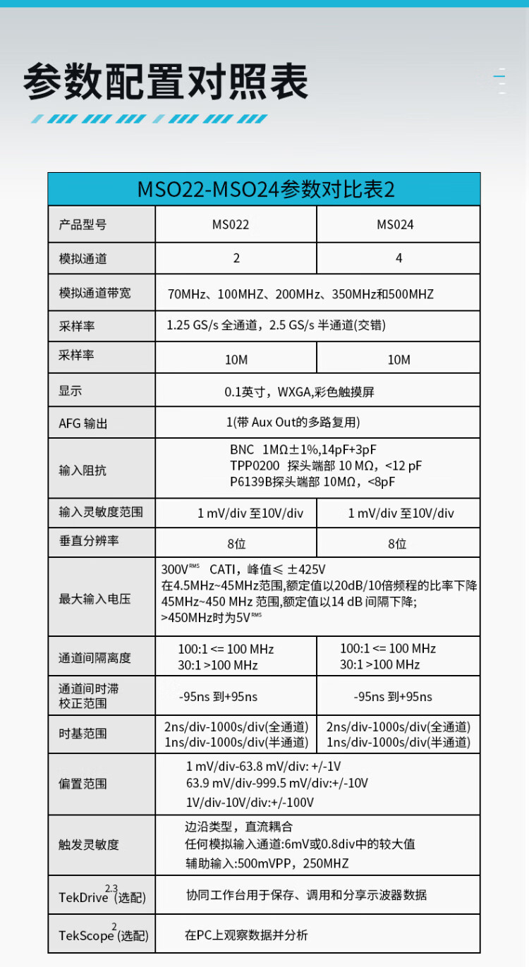 TEKTRONIX MSO22 2-BW-200+R3 portable digital storage oscilloscope dual channel 200M