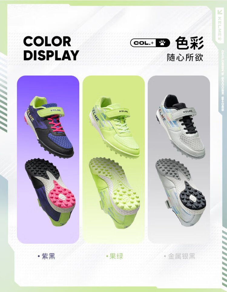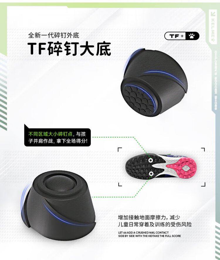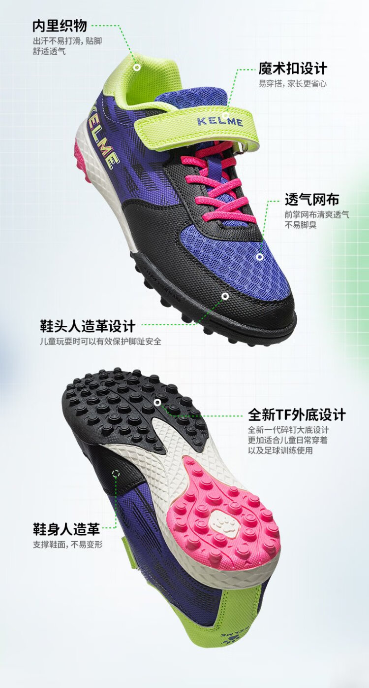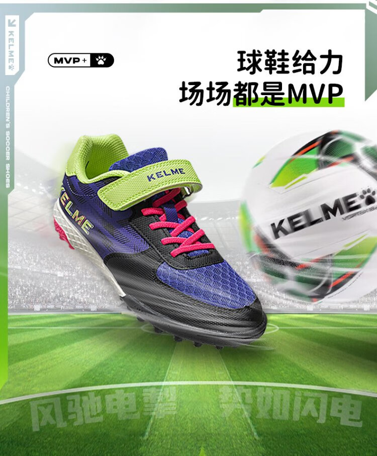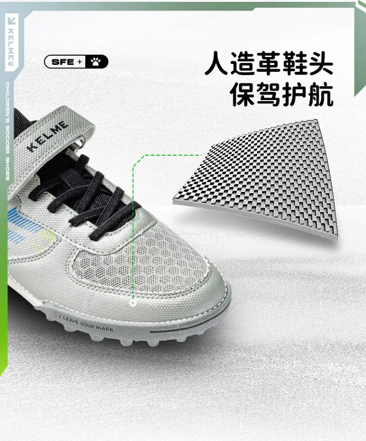 KELME children's football shoes TF nail-breaking Velcro-free lace-up non-slip wear-resistant sneakers metallic silver black 35