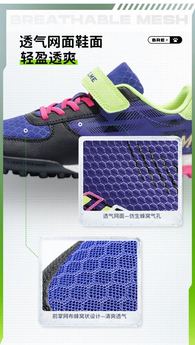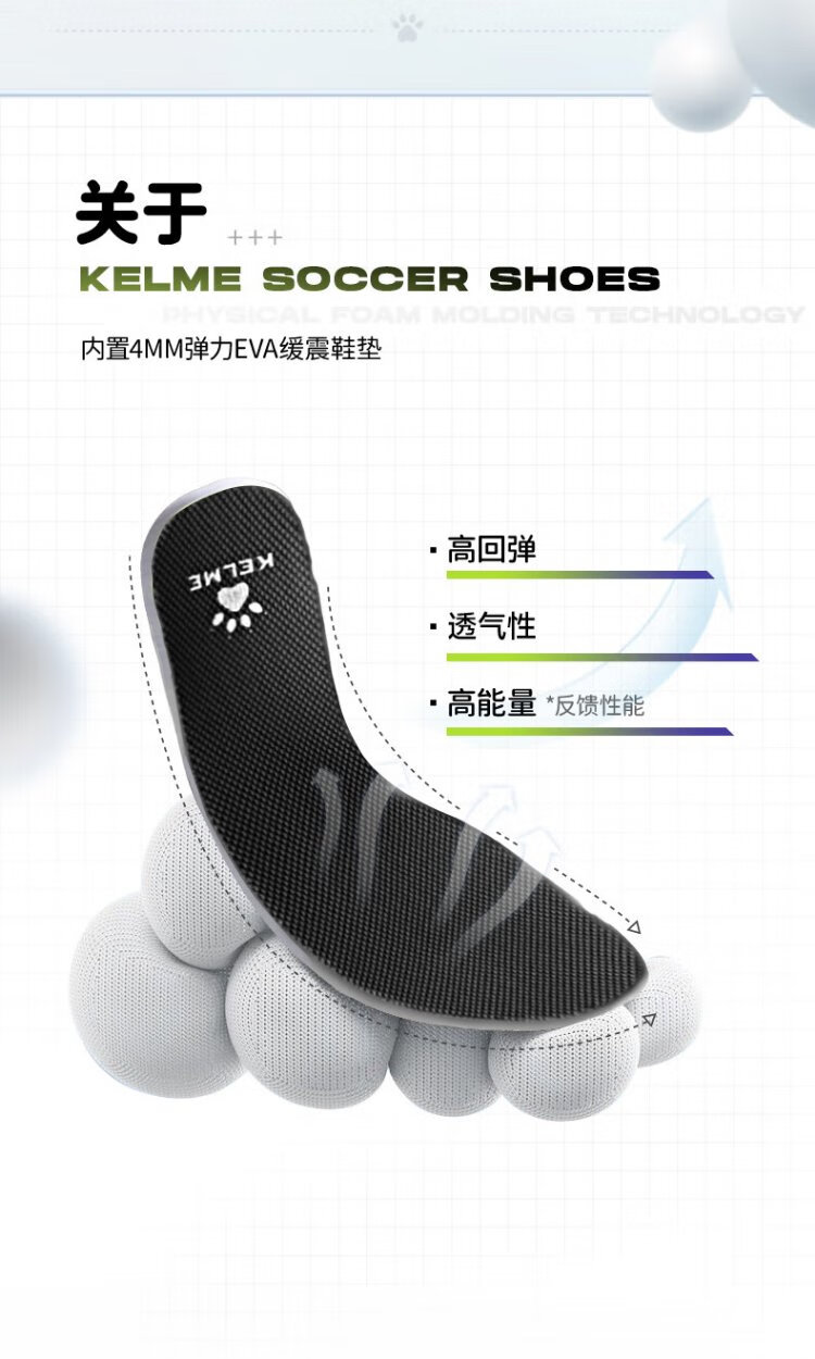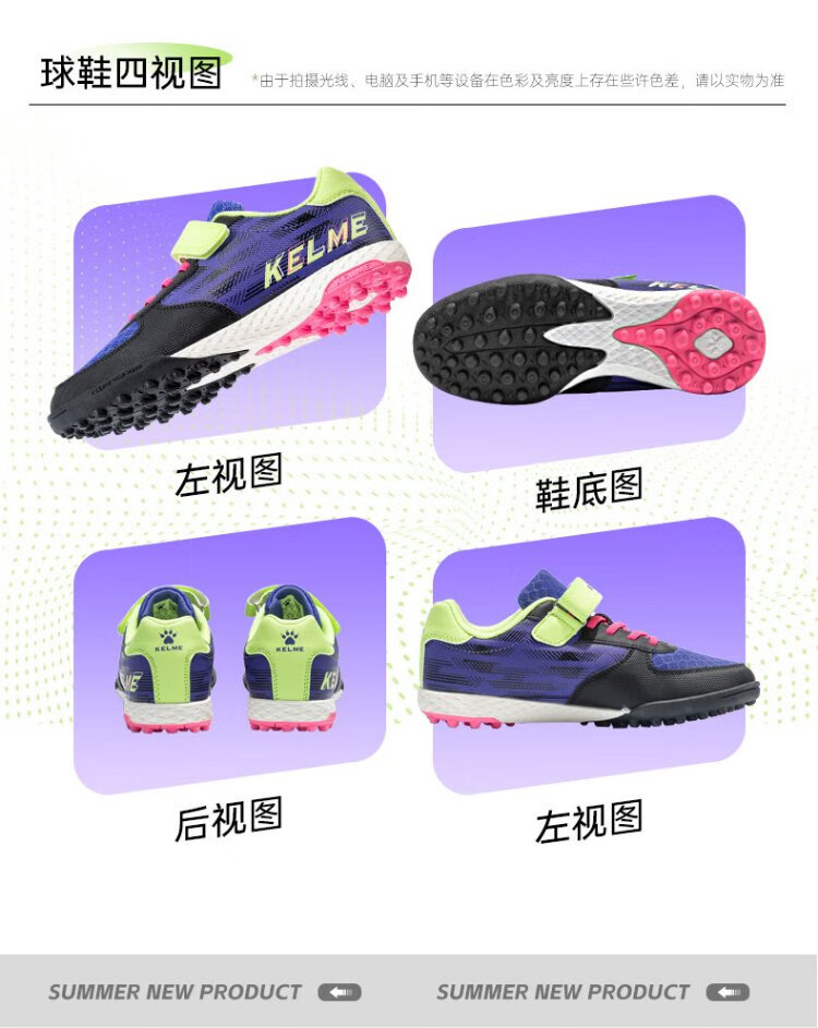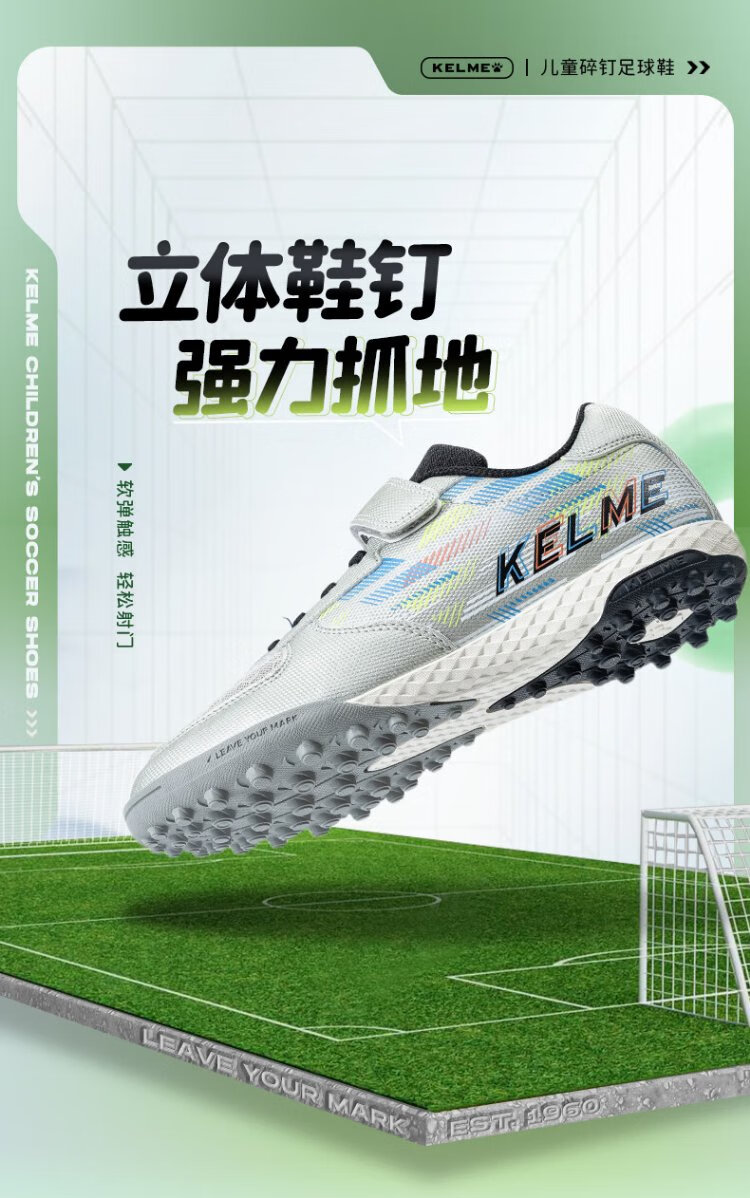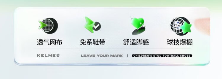 KELME children's football shoes TF nail-breaking Velcro-free lace-up non-slip wear-resistant sneakers metallic silver black 35