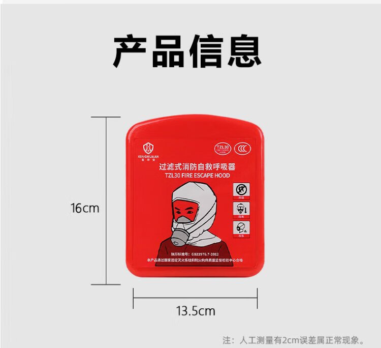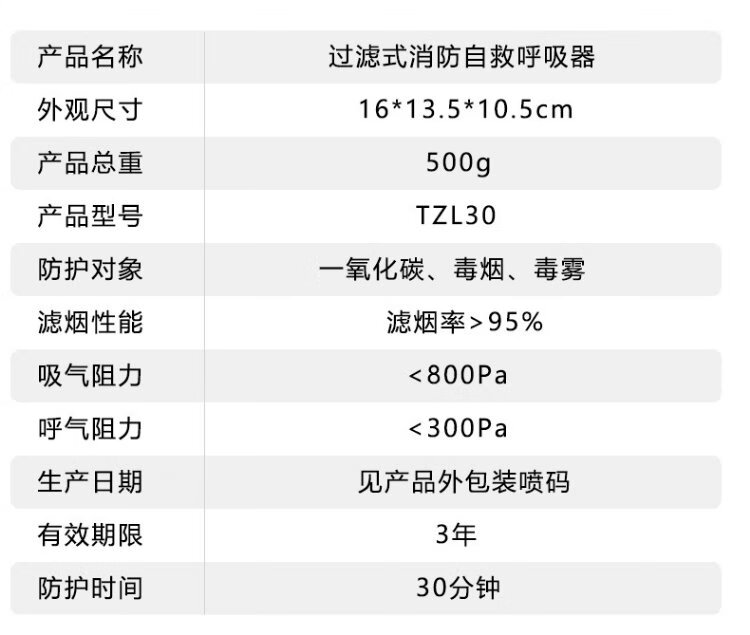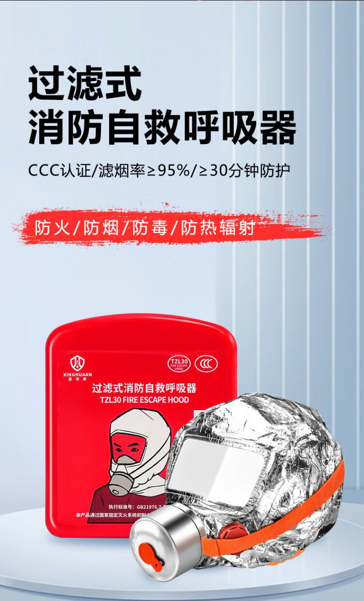 Xinghuaan TZL30 fire mask anti-smoke and anti-virus filter type fire self-rescue respirator fire escape mask national standard 3C certification