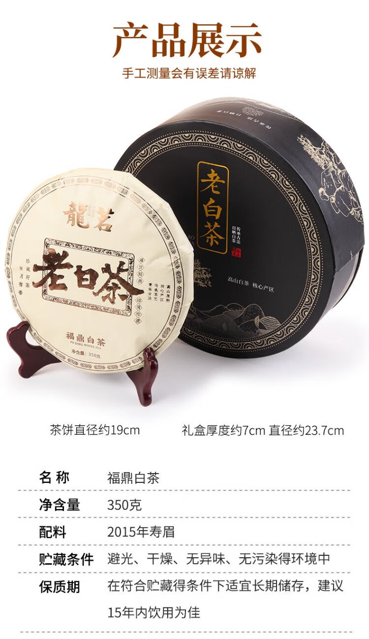 Longming 2015 Fuding Old White Tea Shoumei Tea Cake 350g New Year Tea New Year Souvenir Box