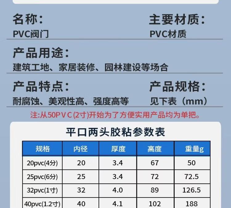Deqi PVC valve, switch ball valve, plastic water supply pipe accessories, Jingcang 25pvc (6 points), inner wire at both ends of the wire mouth