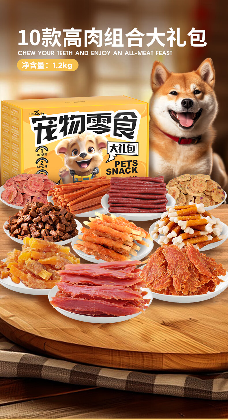 HELLOJOY Dog Snacks Gift Pack 1200g Adult Dogs and Puppies Teeth Training Pet Snacks Lucky Bag Gift Box 2.4kg