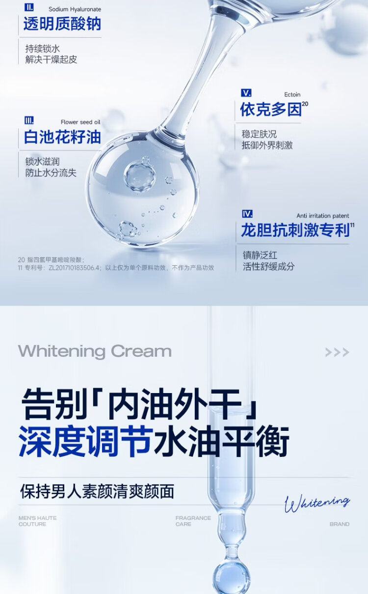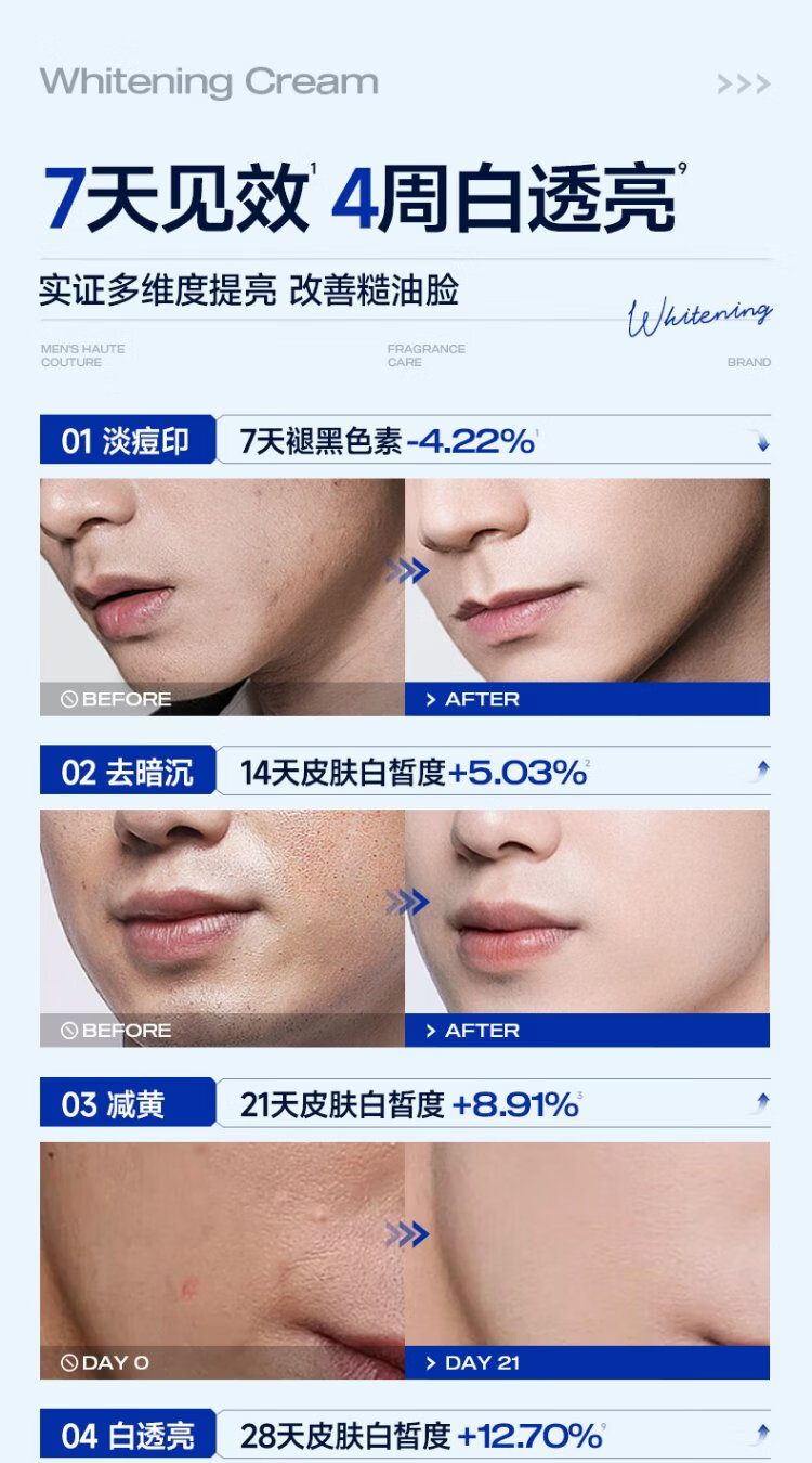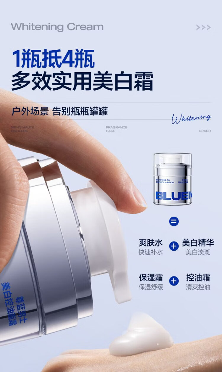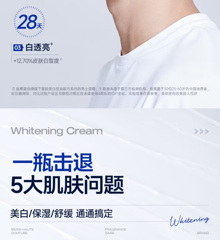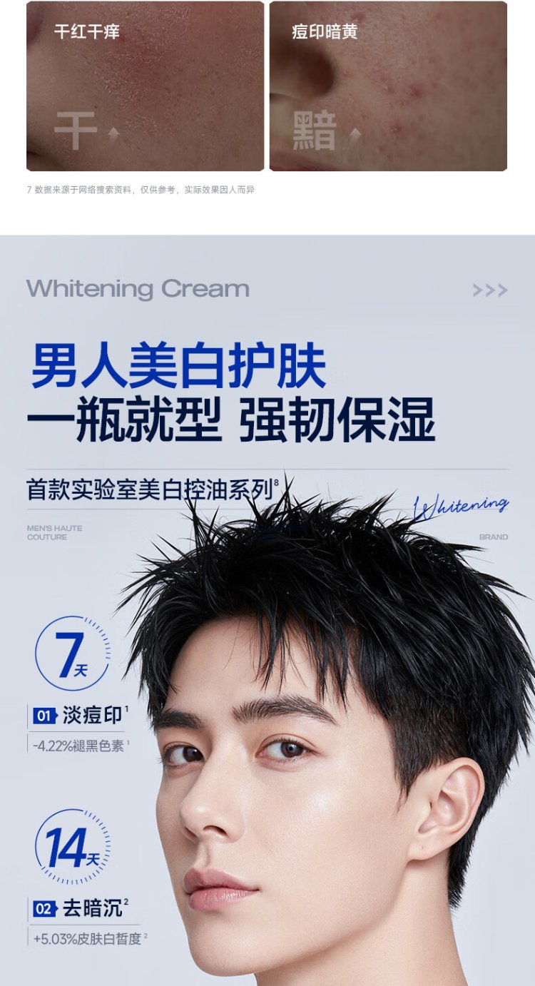 Zunlan men's whitening cream, hydrating and moisturizing lotion, removes spots, brightens skin tone, fades acne marks, men's skin care products 50g