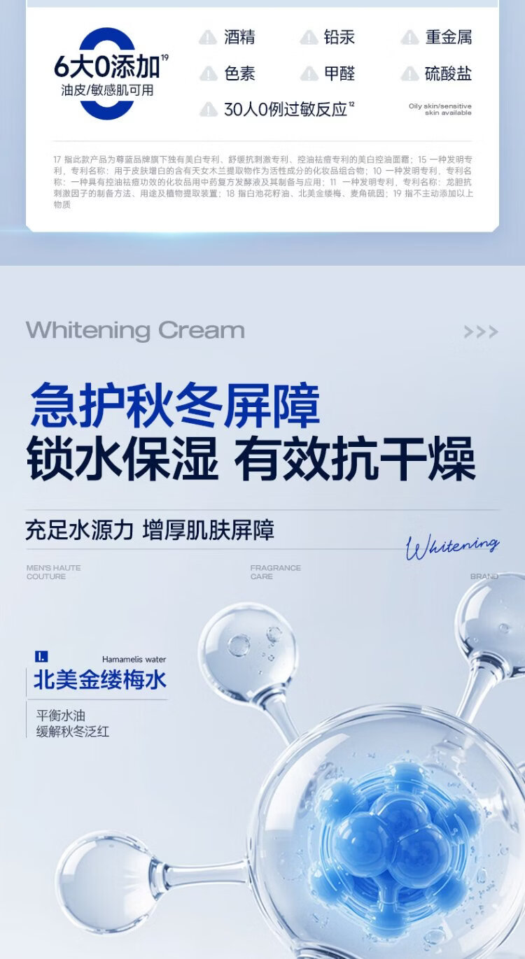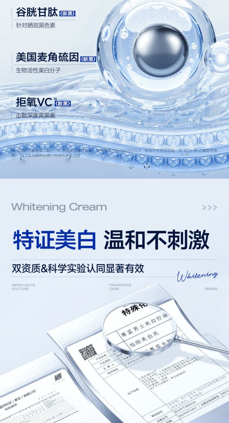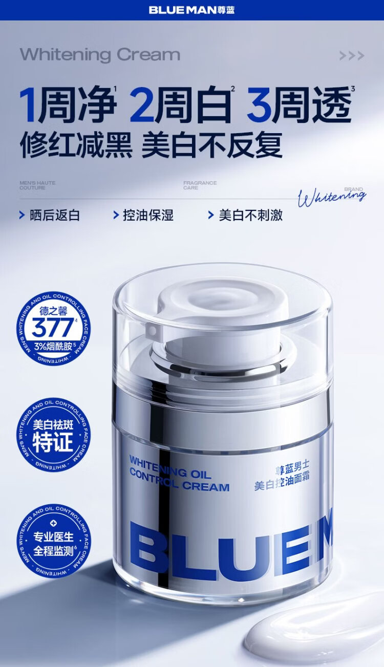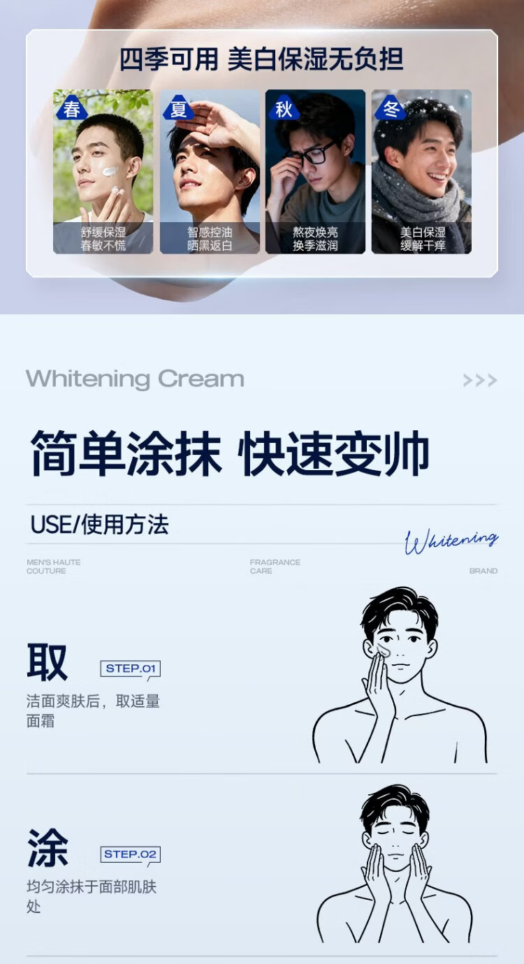 Zunlan men's whitening cream, hydrating and moisturizing lotion, removes spots, brightens skin tone, fades acne marks, men's skin care products 50g