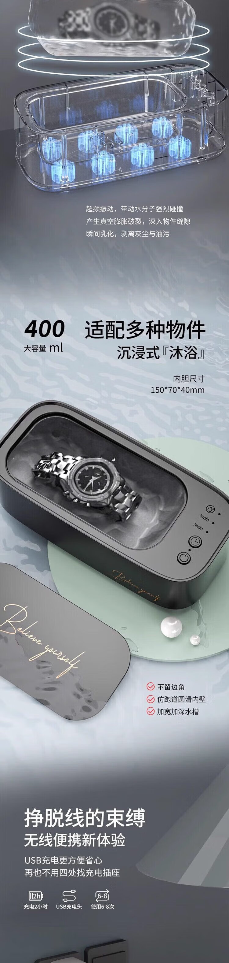 Dipur ultrasonic cleaning machine multifunctional denture braces cleaning machine artifact jewelry makeup brush home portable fully automatic cleaning