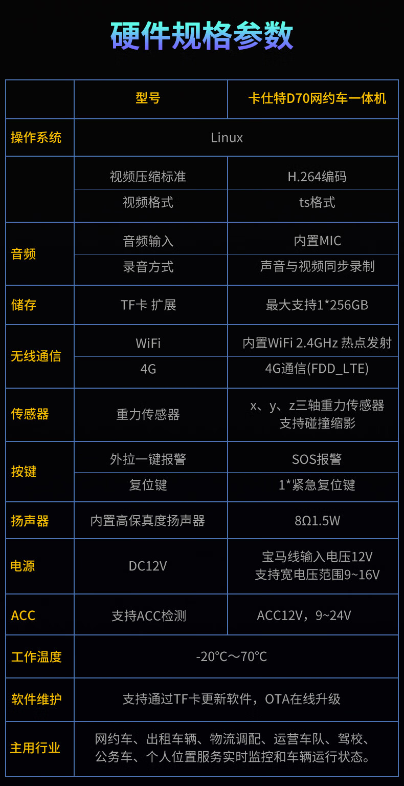 Custer D70A online car-hailing taxi driving school driving recorder inside and outside the car remote monitoring and positioning fleet management