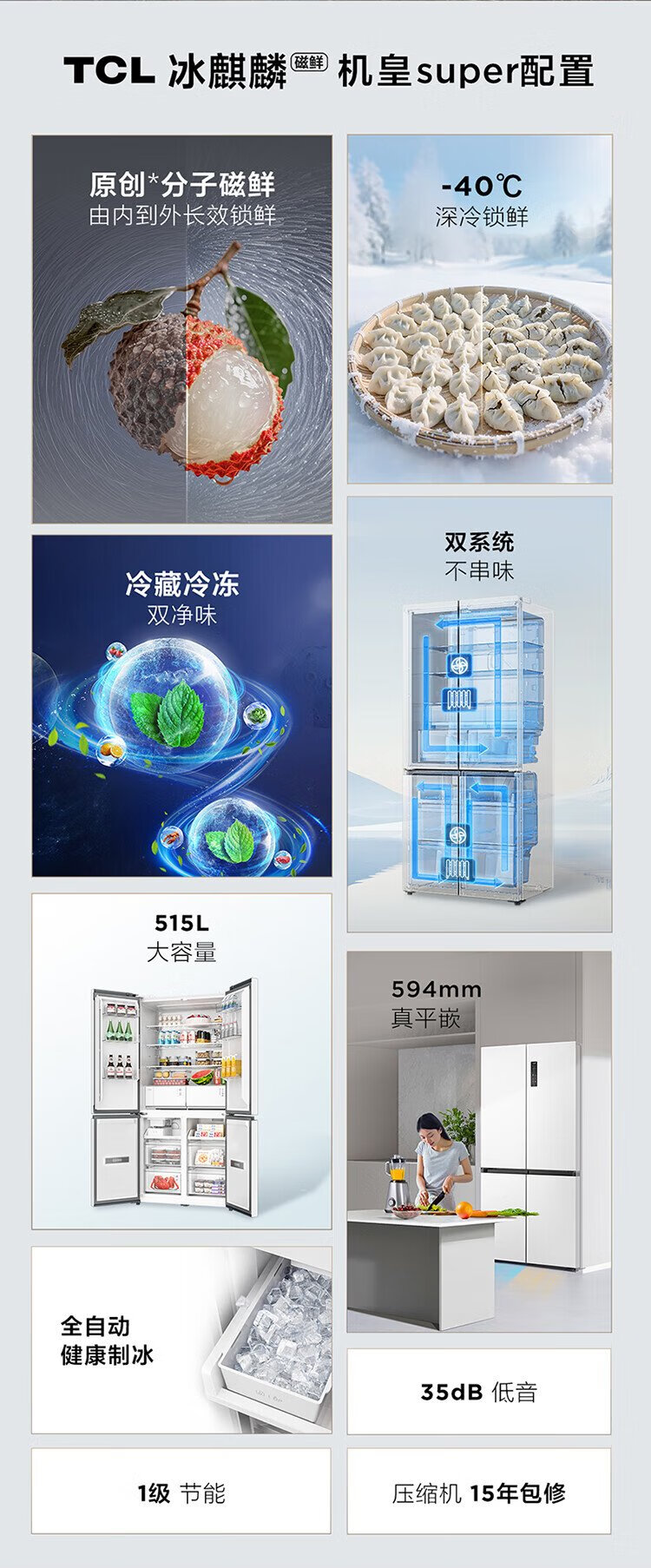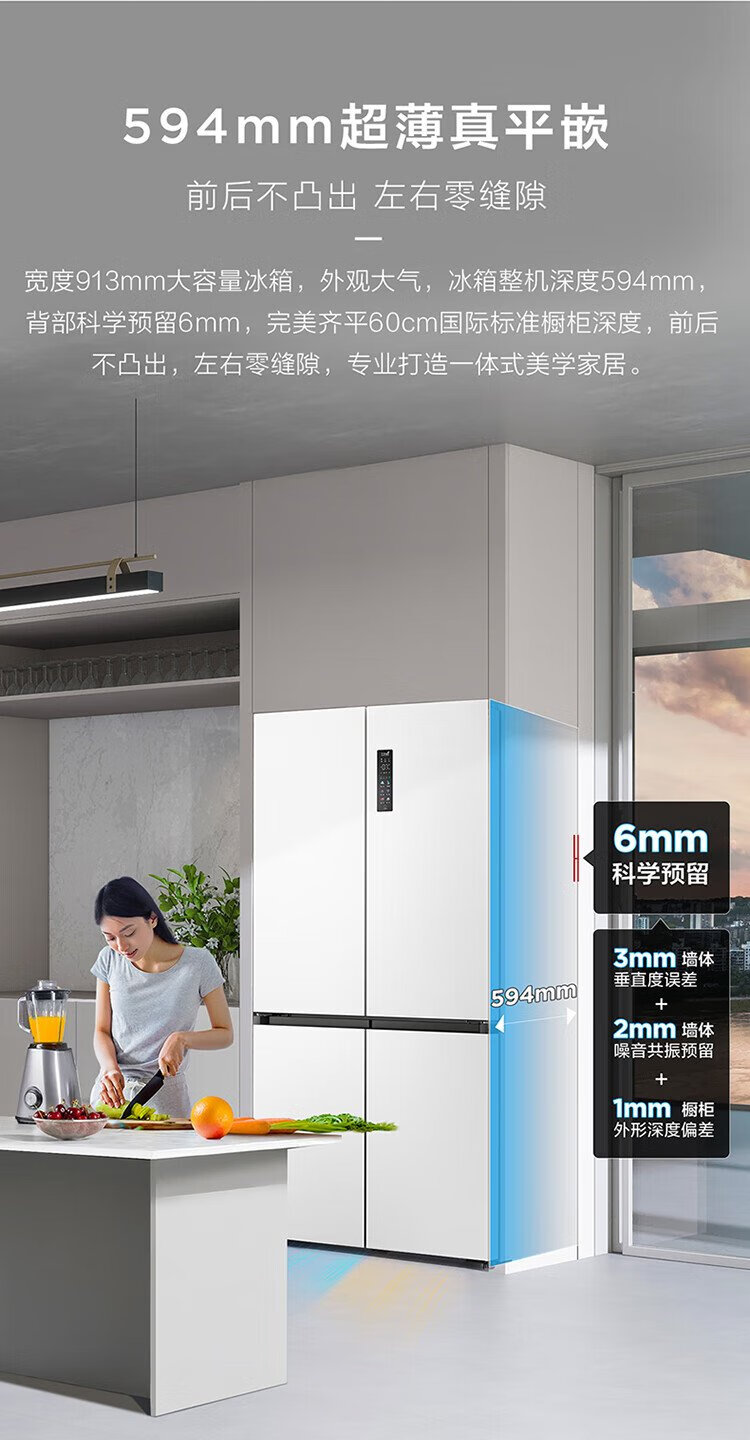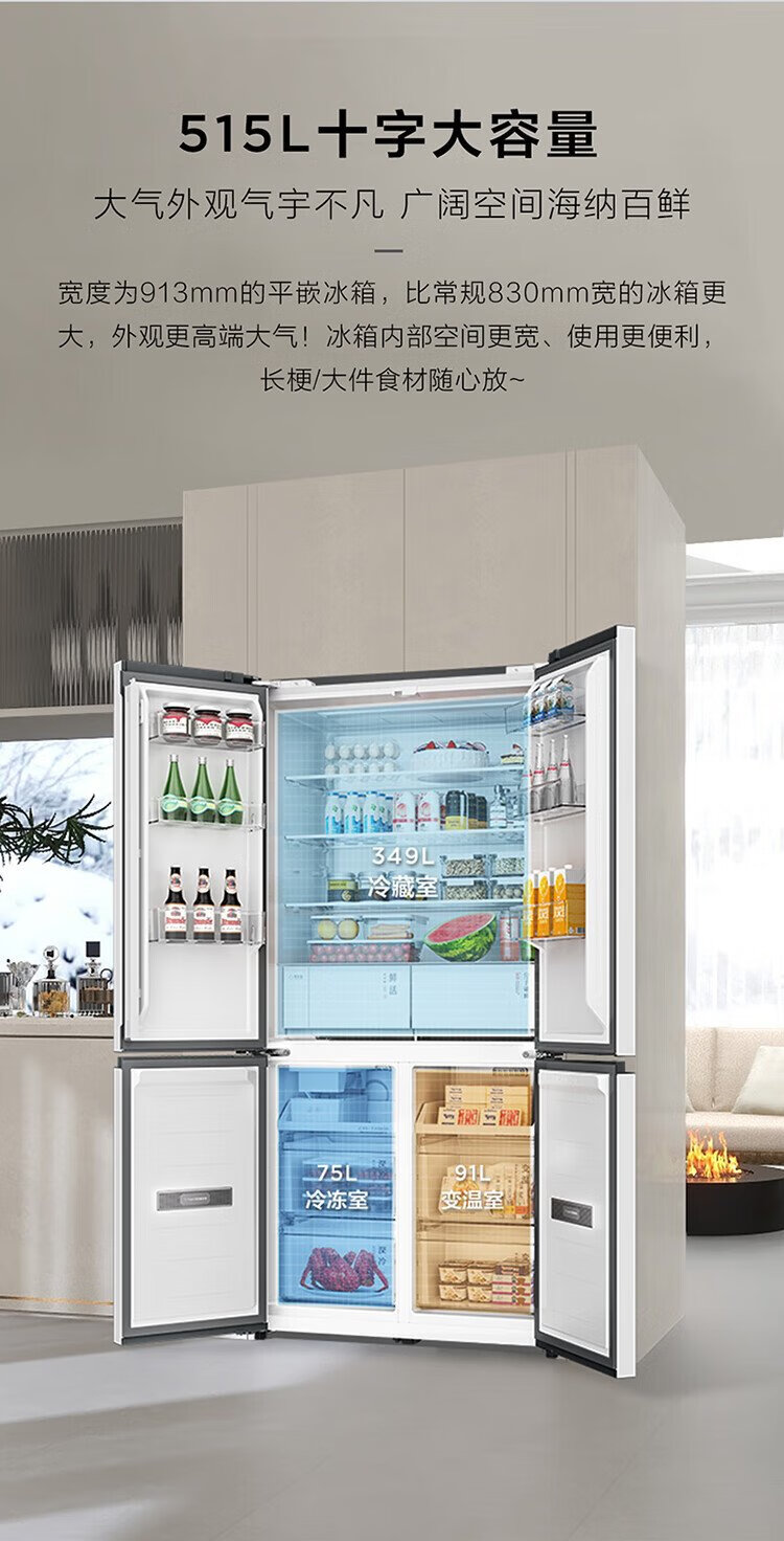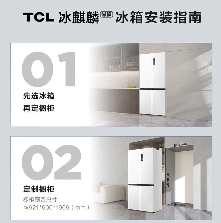 TCL's annual machine King Ice Kirin 515L cross-door refrigerator original molecular magnetic fresh dual system automatic ice making ultra-thin zero embedded level R515T15-UQBS national subsidy