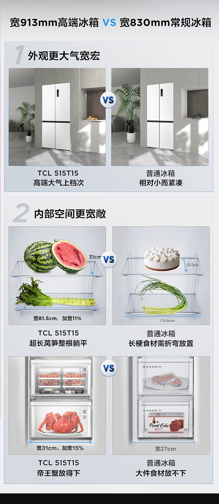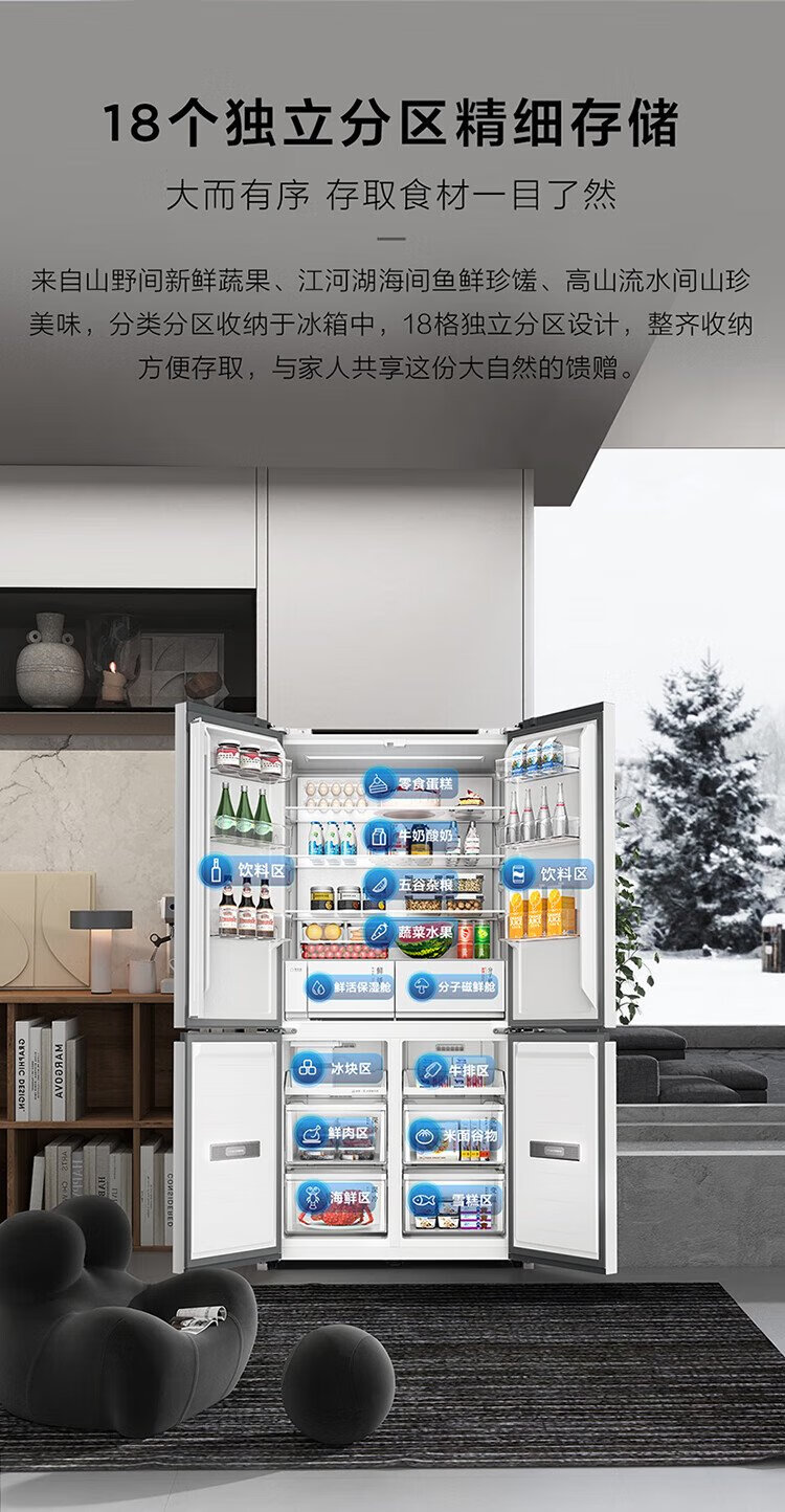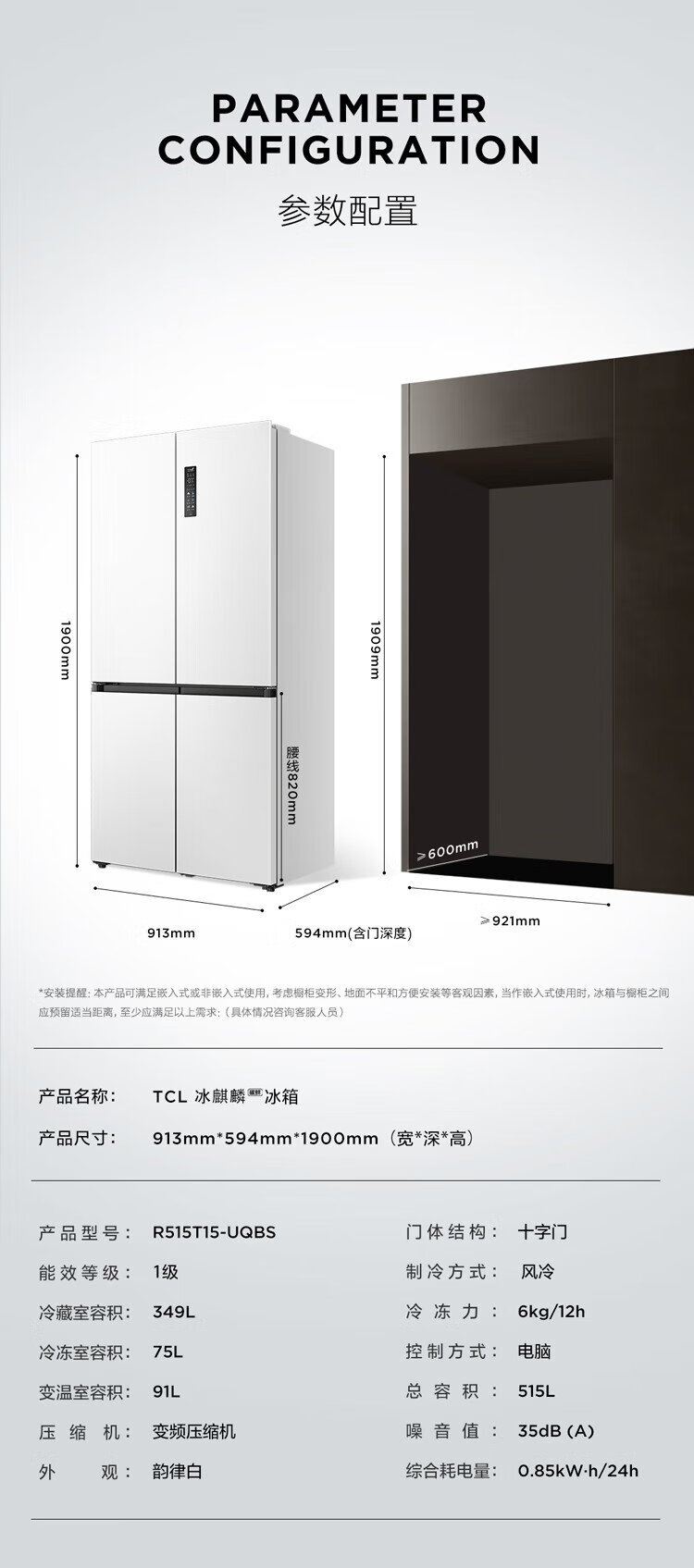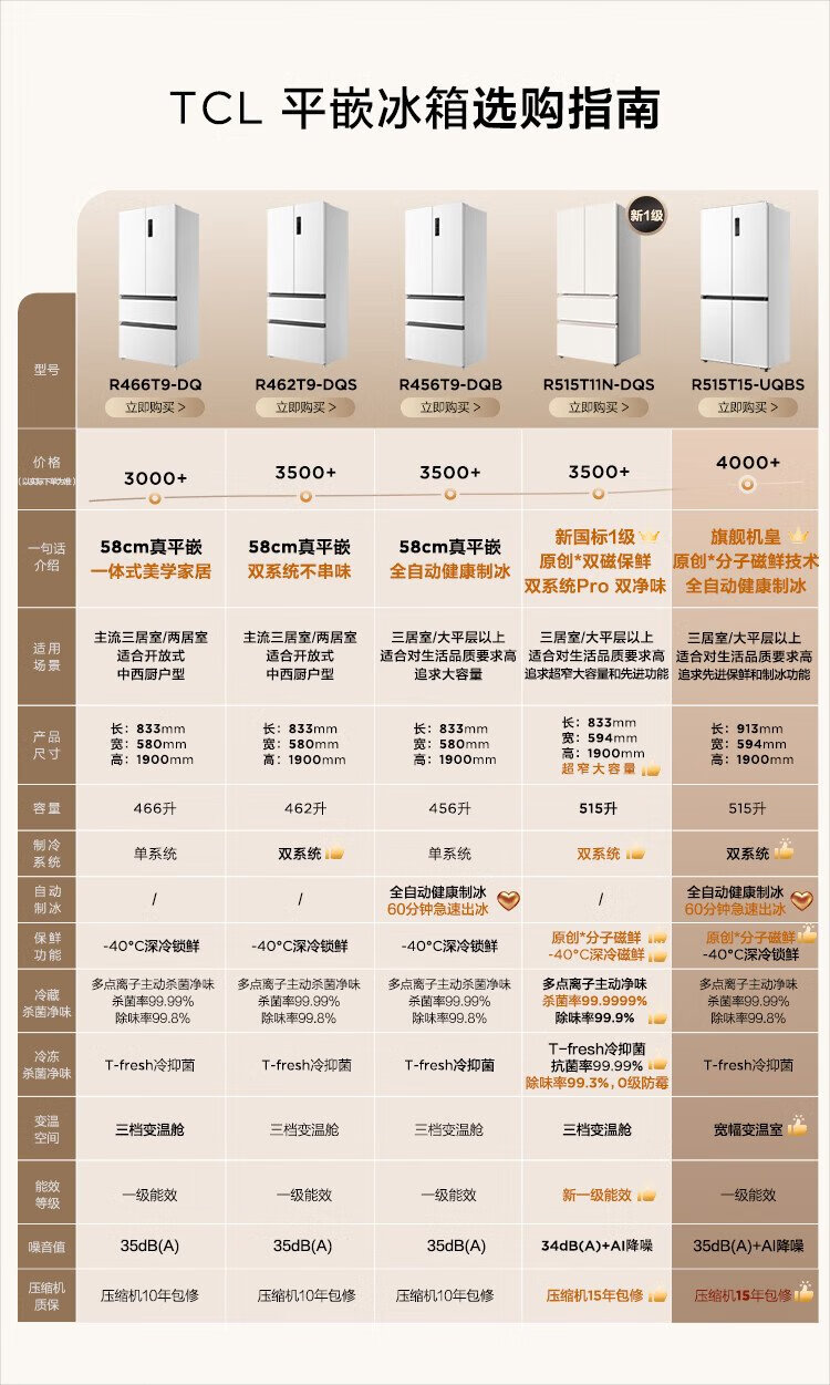 TCL's annual machine King Ice Kirin 515L cross-door refrigerator original molecular magnetic fresh dual system automatic ice making ultra-thin zero embedded level R515T15-UQBS national subsidy