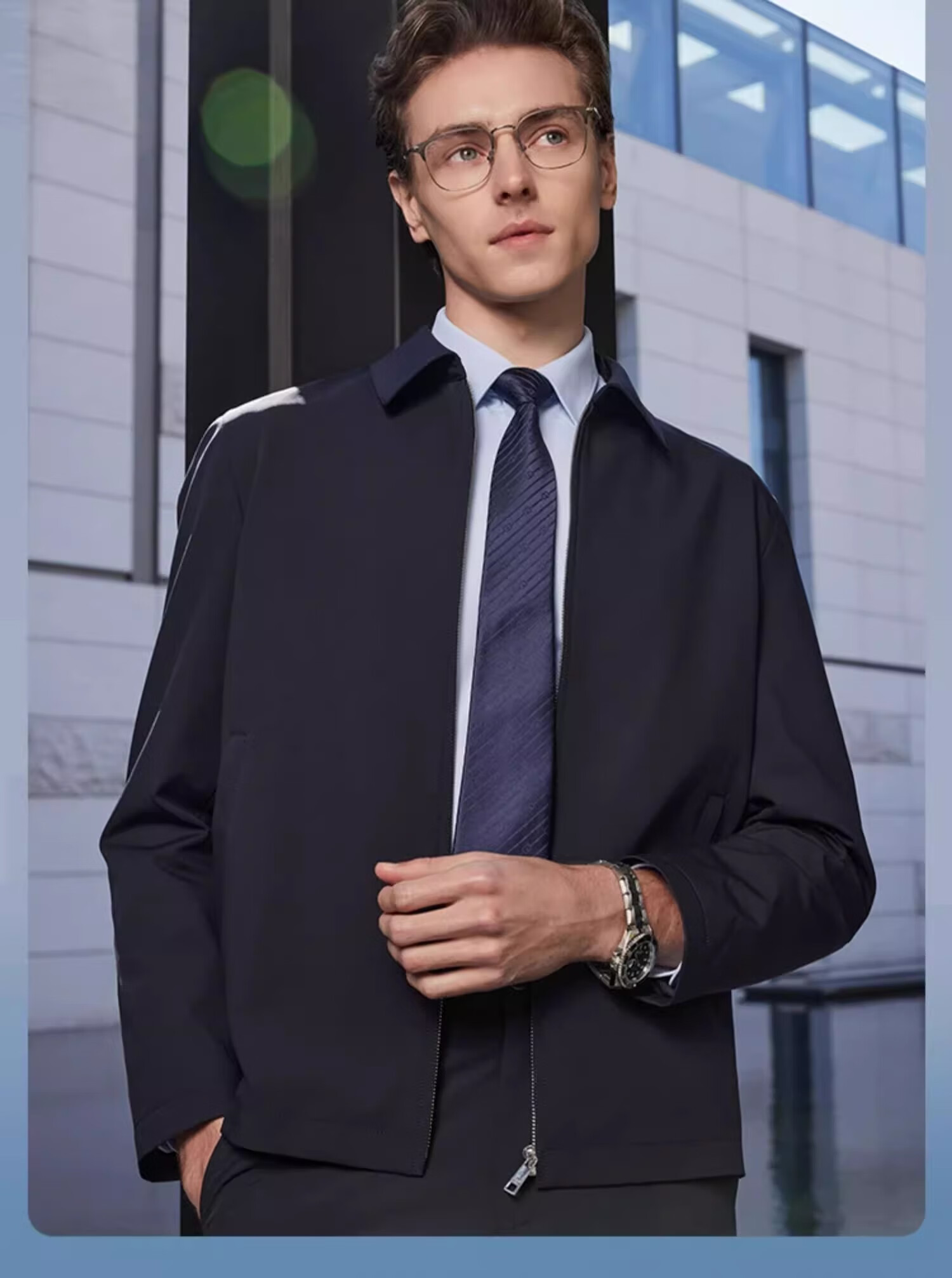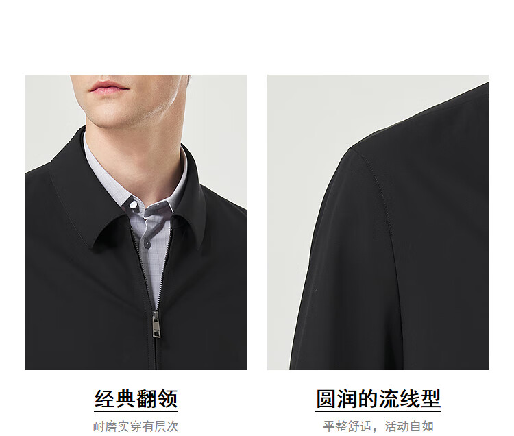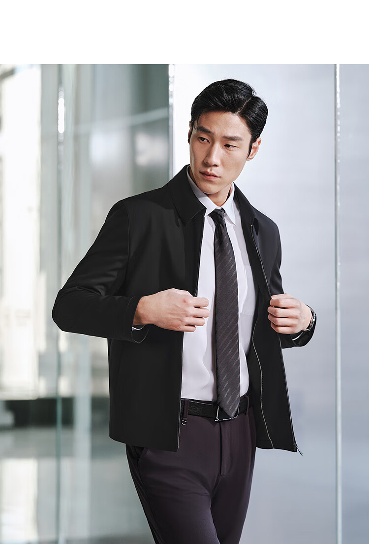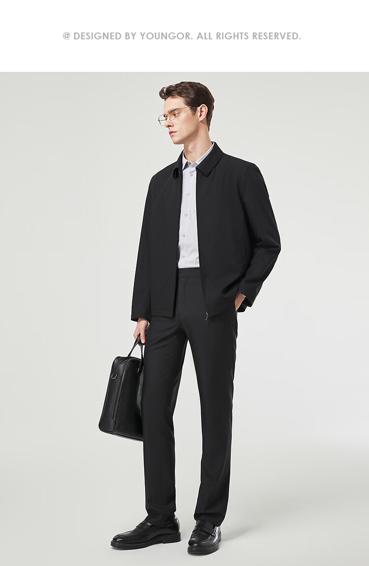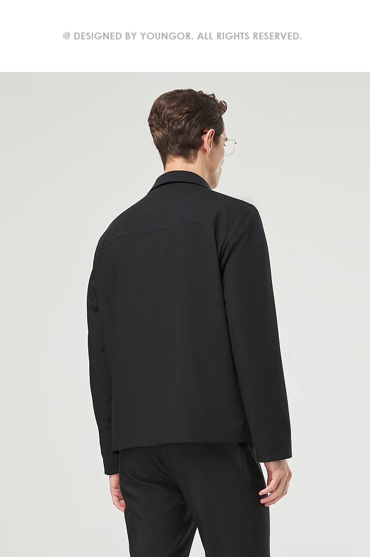 YOUNGOR Executive Jacket 2025 Autumn and Winter New Men's Lapel Wear-Resistant Jacket Black XL180/100A