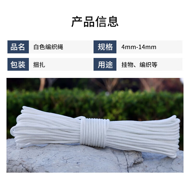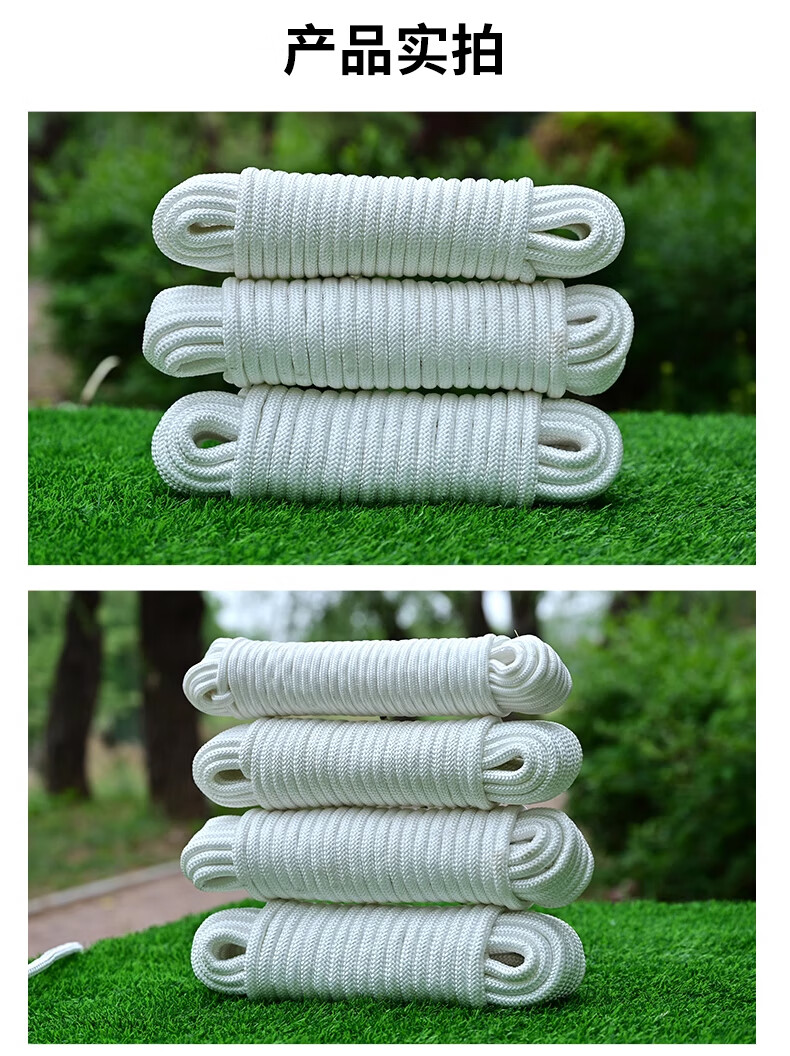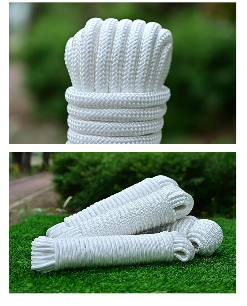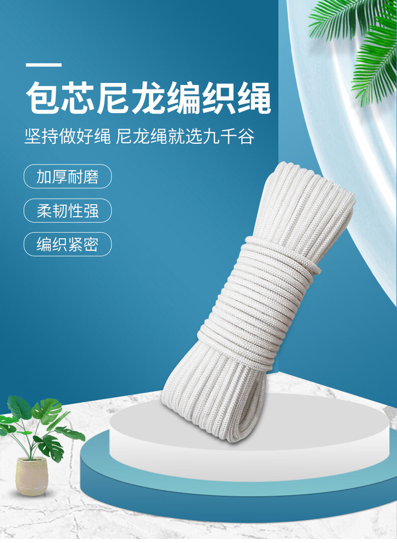 Jiuqiangu nylon rope 8mm*100 meters white packing rope packing tape high strength binding rope core-covered wear-resistant and anti-aging nylon tie braided rope clothesline packaging rope