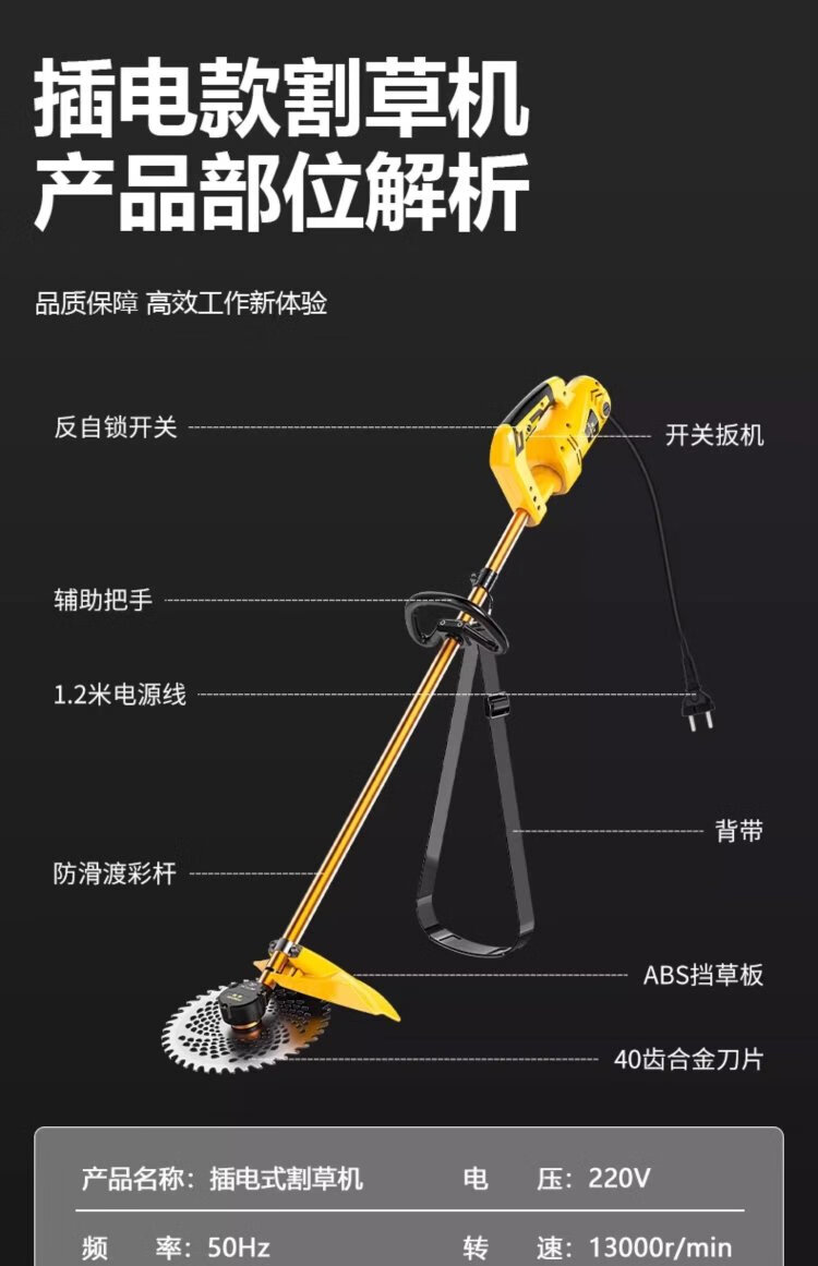 Enter the 220V plug-in high-power electric lawn mower household agricultural weeding small lawn trimmer lawn mower
