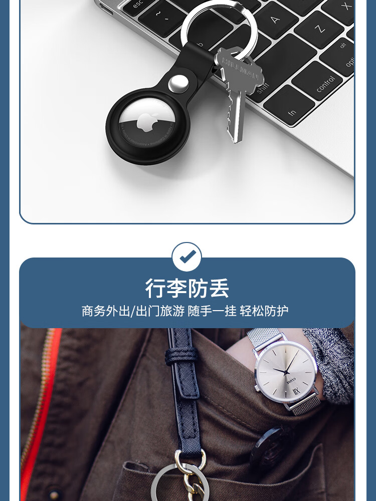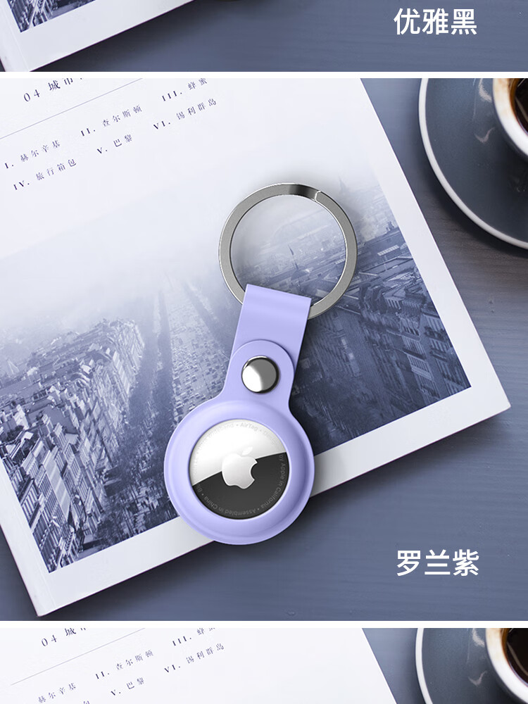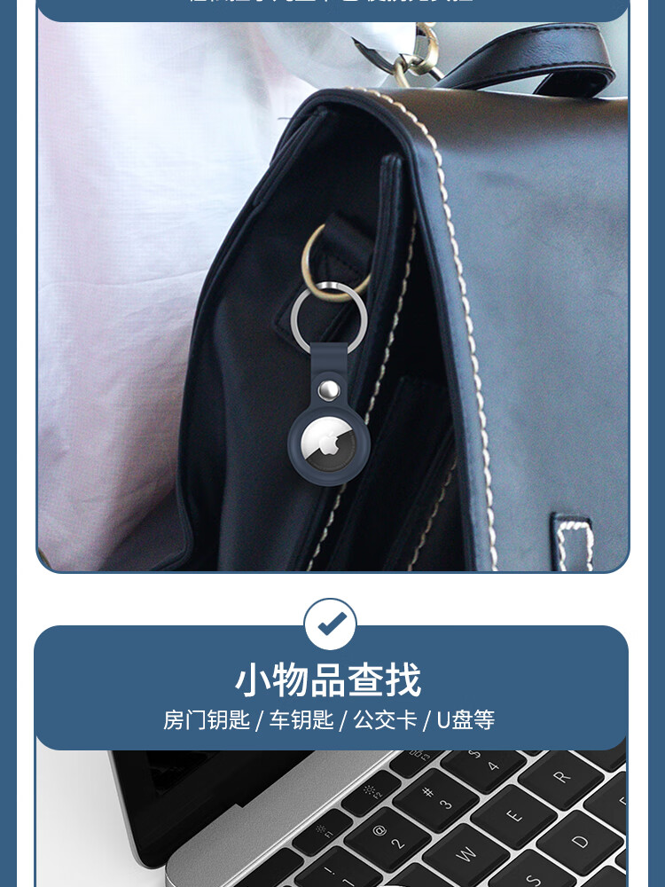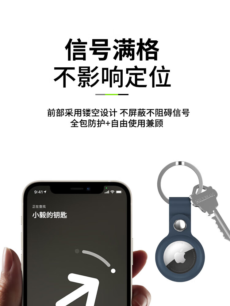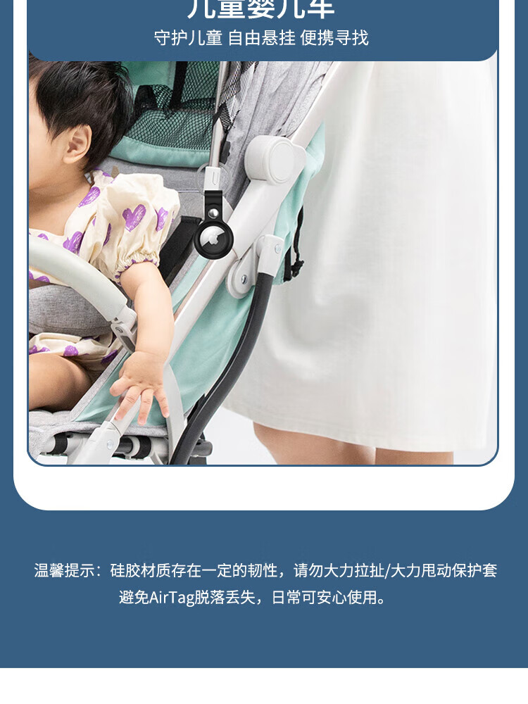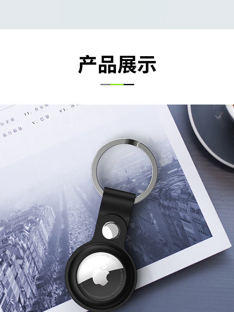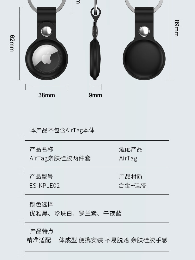 ESCASE applicable AirTag protective cover Apple AirTags anti-lost positioning tracking tracker keychain ring silicone shell dirt-resistant anti-fall belt hook white