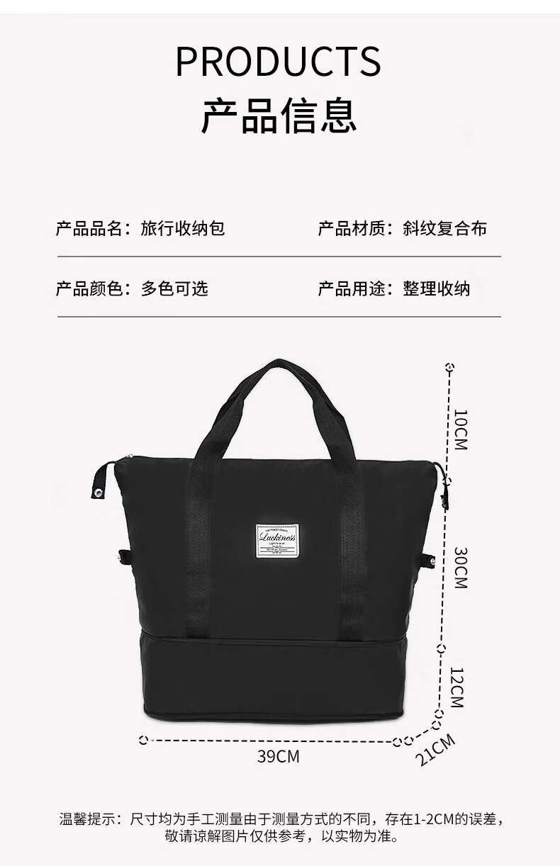 Baicaoyuan travel bag large capacity expansion business trip male and female handbag luggage fitness bag can be put into the trolley case for delivery storage