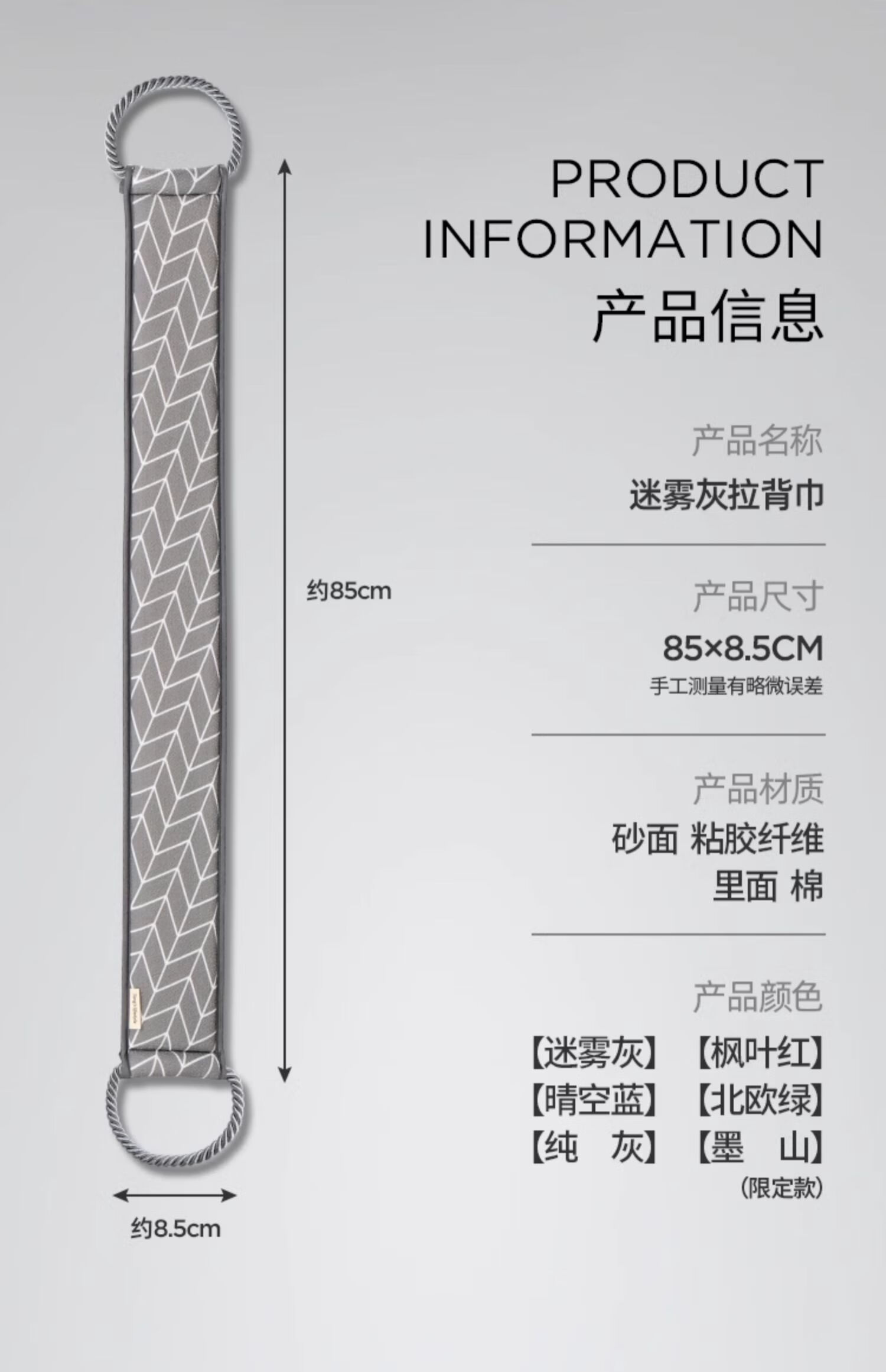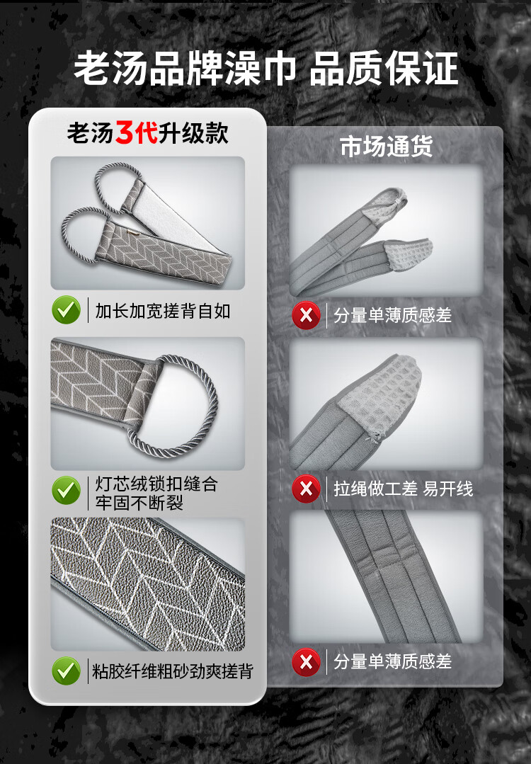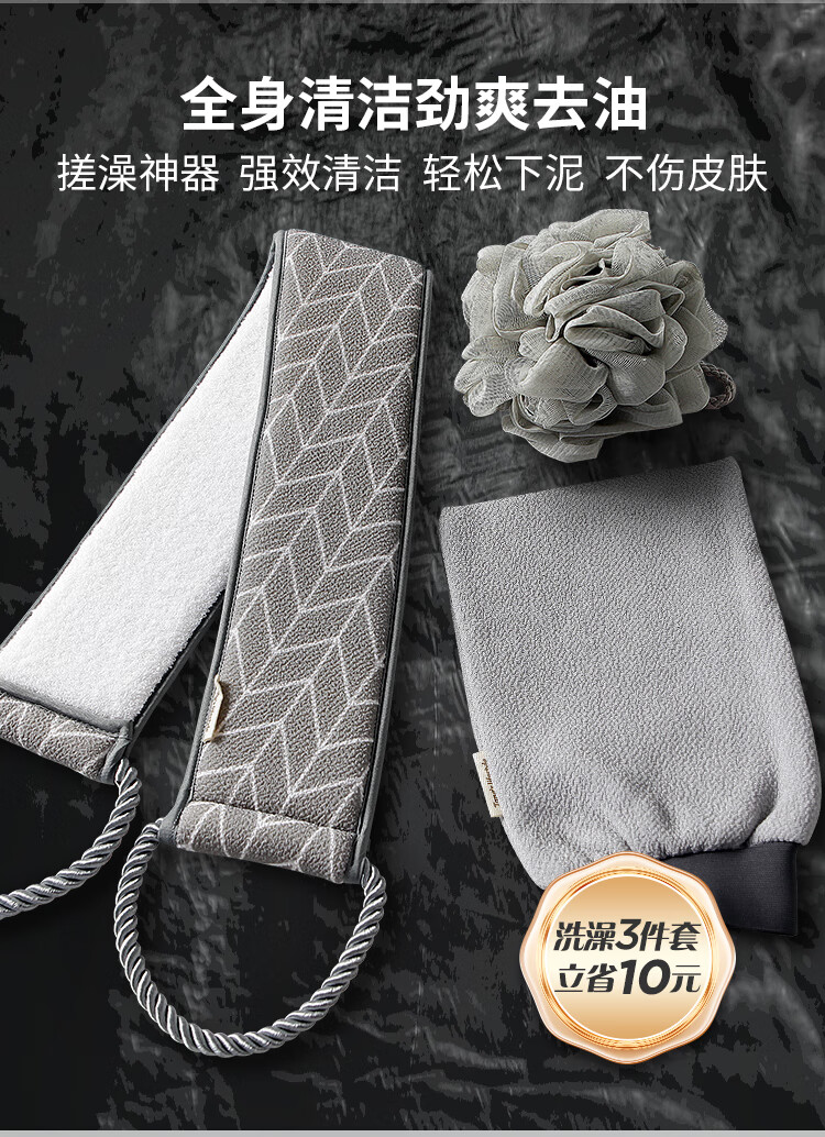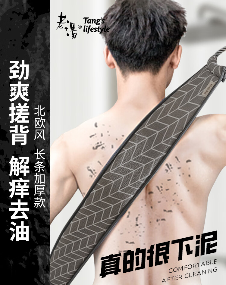 Lao Tang Lao Tang back rub towel for men, extra long and wide, mud rub strip, strong bath towel, leaf gray-85*8cm
