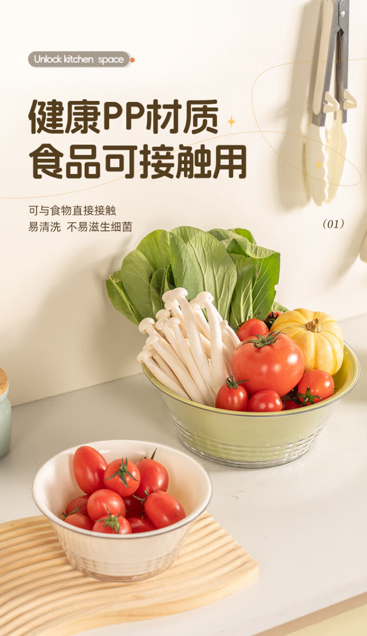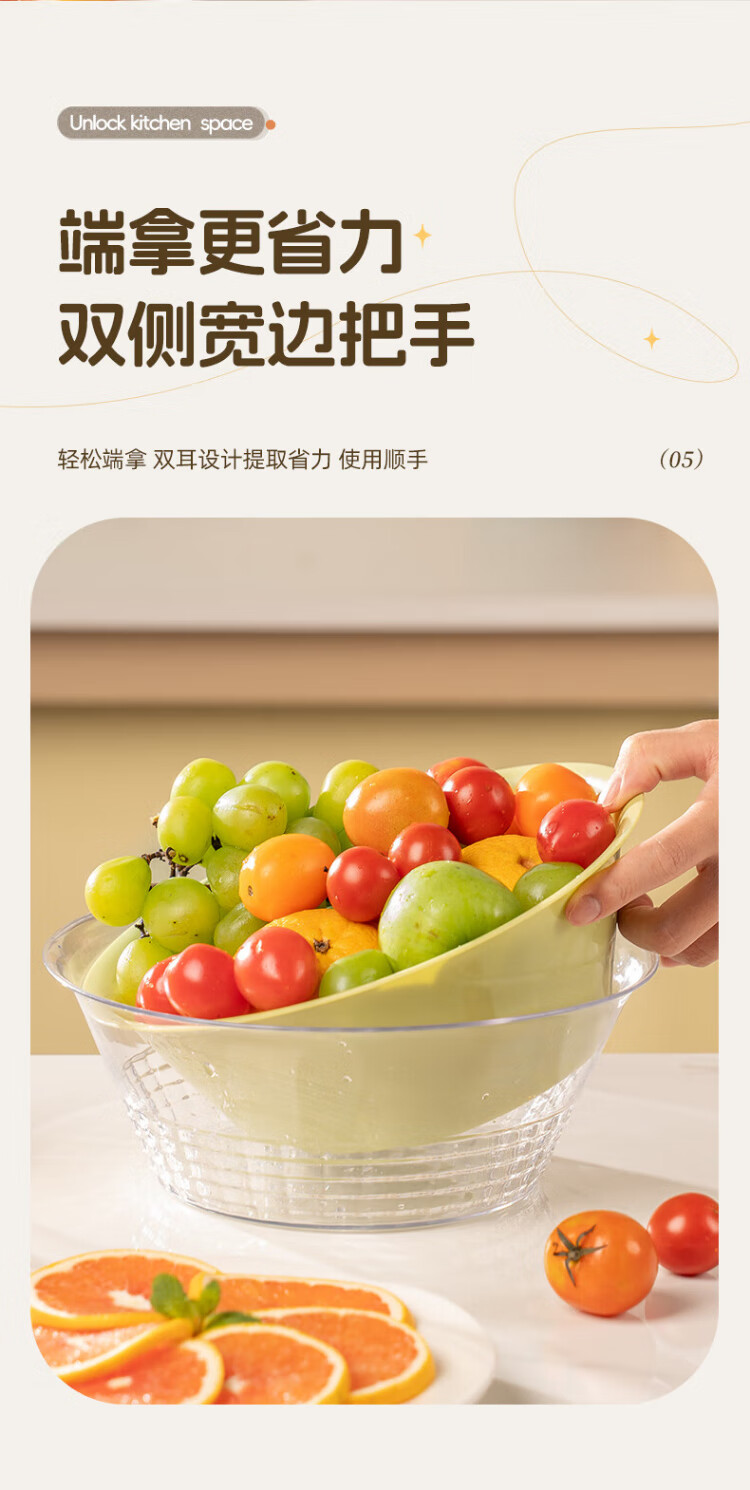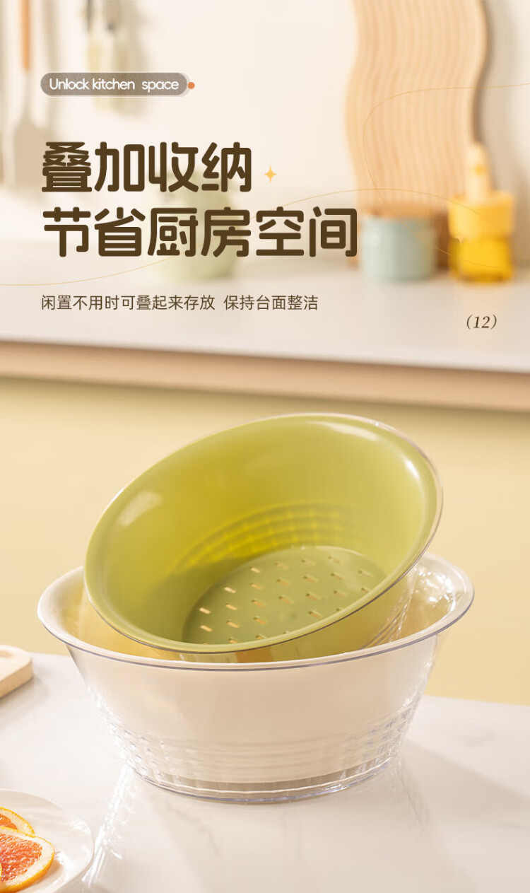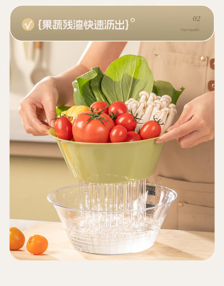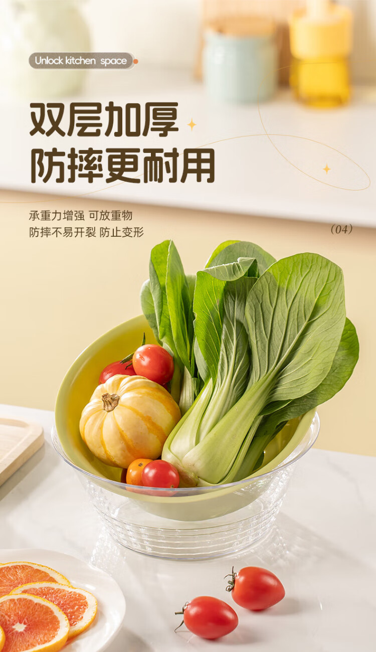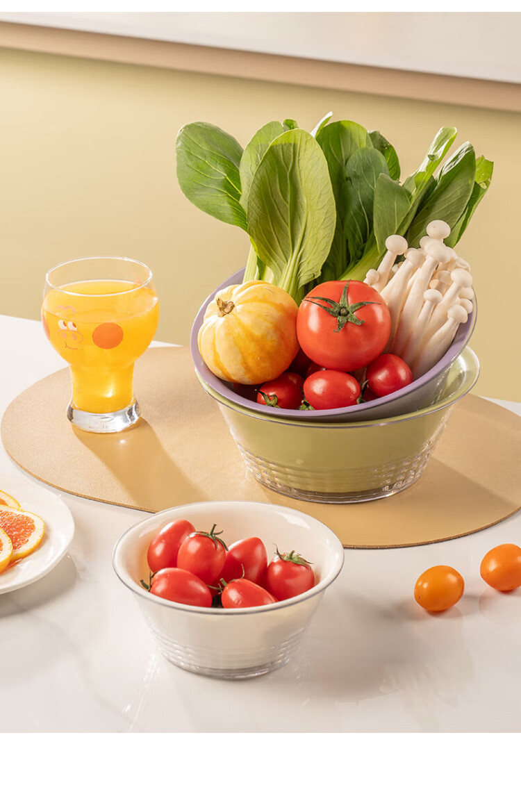 CAIZHI vegetable washing basket drain basket double-layer basin sieve vegetable basin fruit basket plastic kitchen rice basket 4-piece set CZ6222