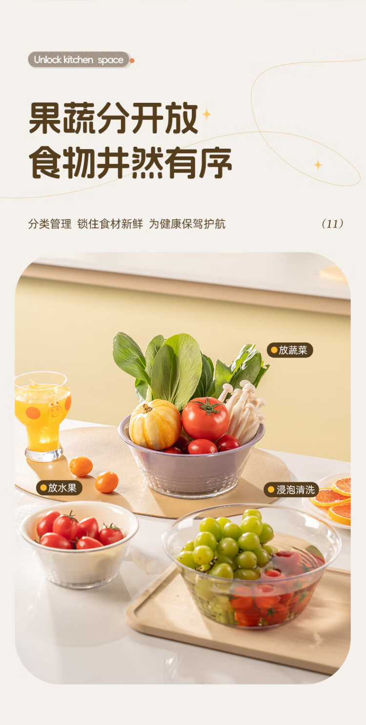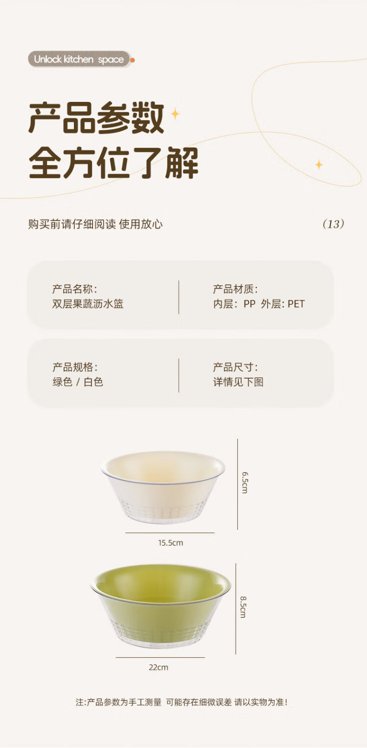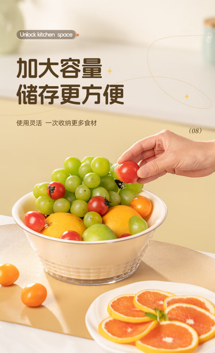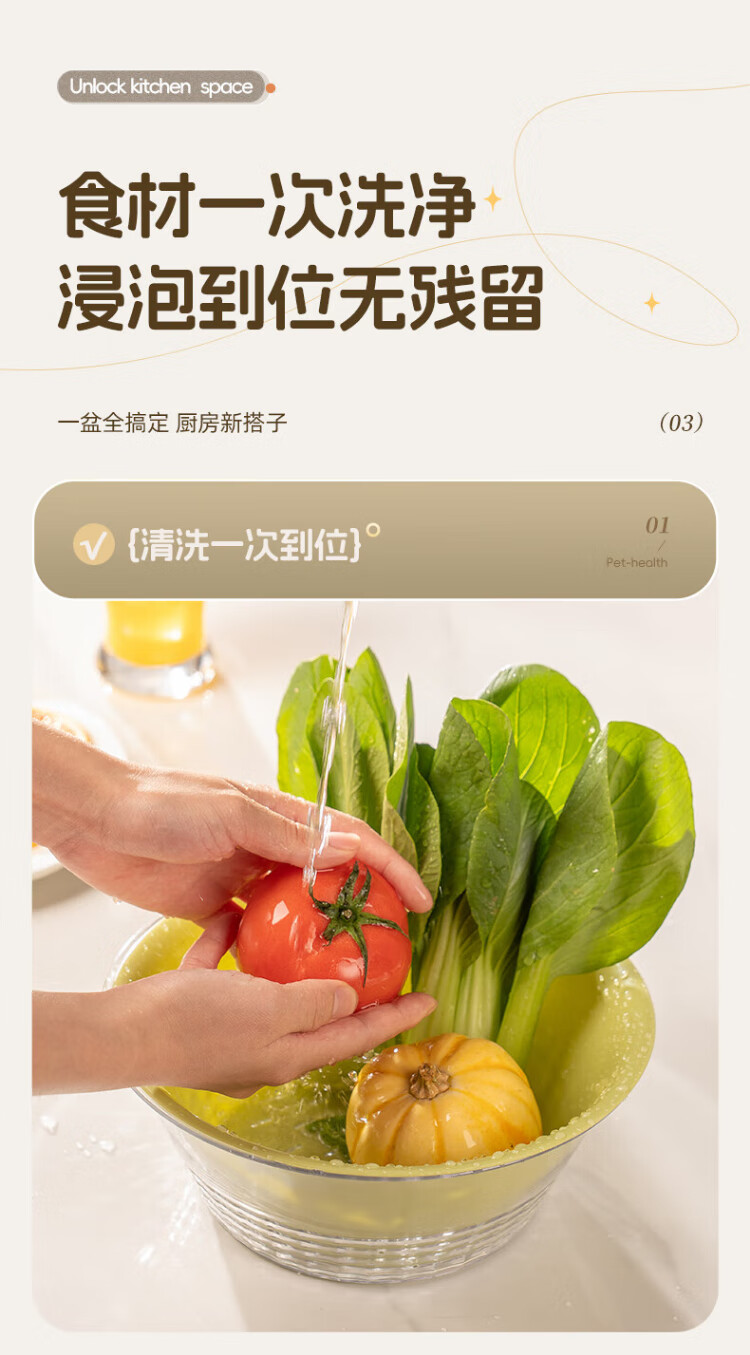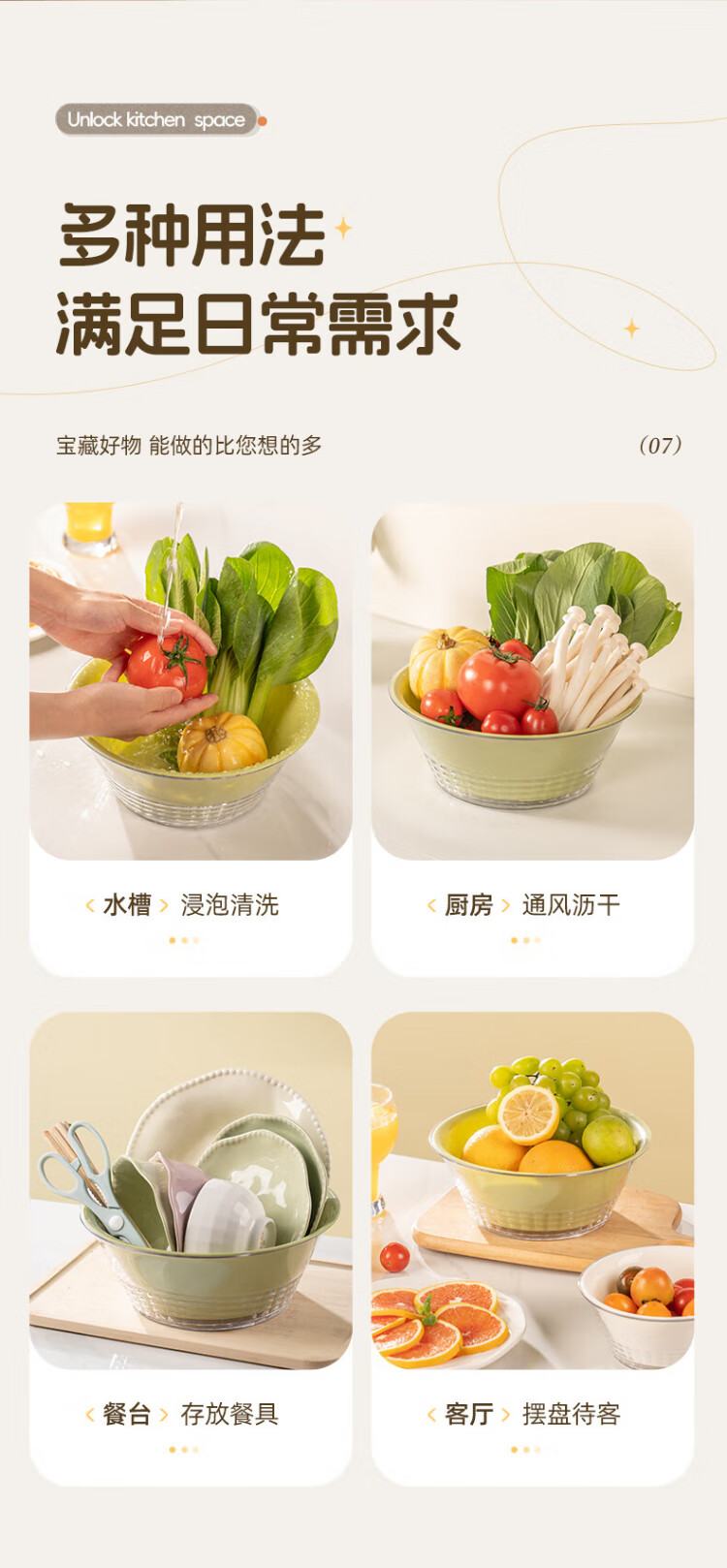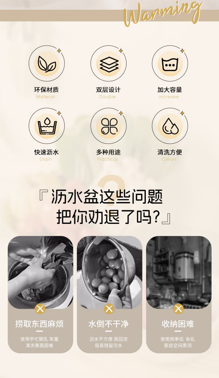 CAIZHI vegetable washing basket drain basket double-layer basin sieve vegetable basin fruit basket plastic kitchen rice basket 4-piece set CZ6222