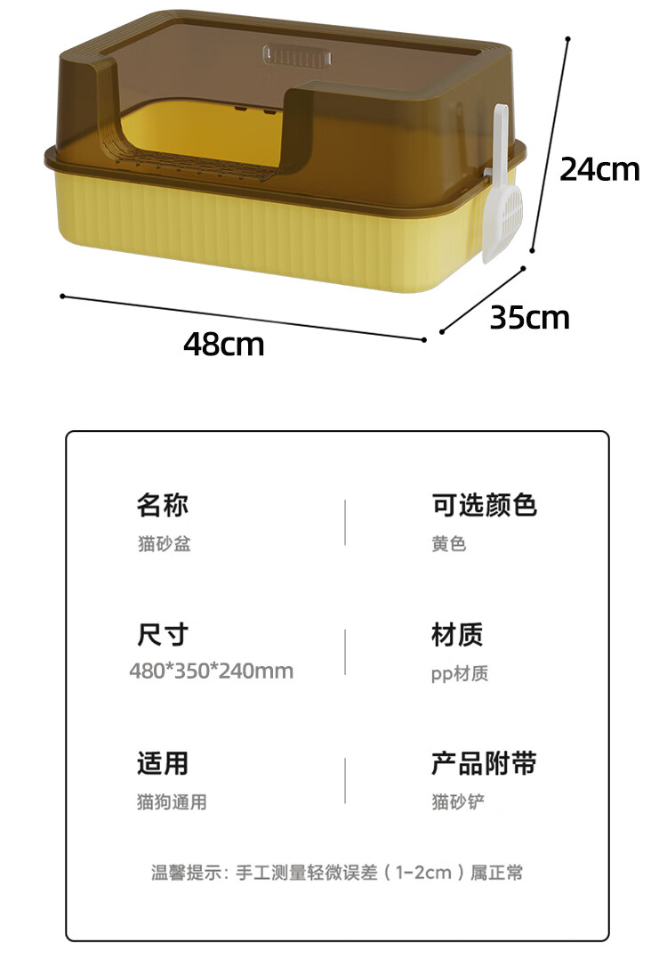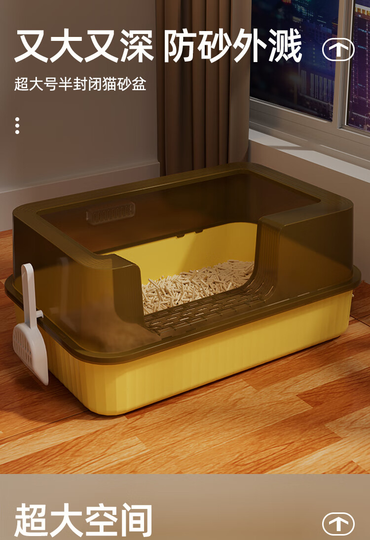 HELLOJOY cat litter box anti-splash semi-enclosed cat toilet anti-splash cat litter box cat poop box with cat litter scoop yellow
