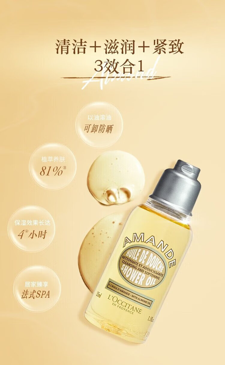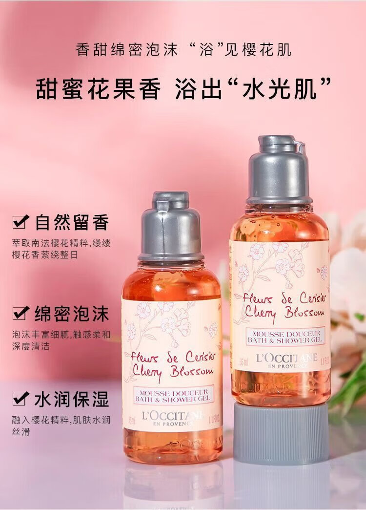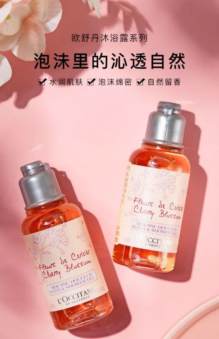 L OCCITANE Sakura Shower Gel 35ml+Sakura Moisturizer 35ml+Sweet Almond Shower Oil 35ml on clearance