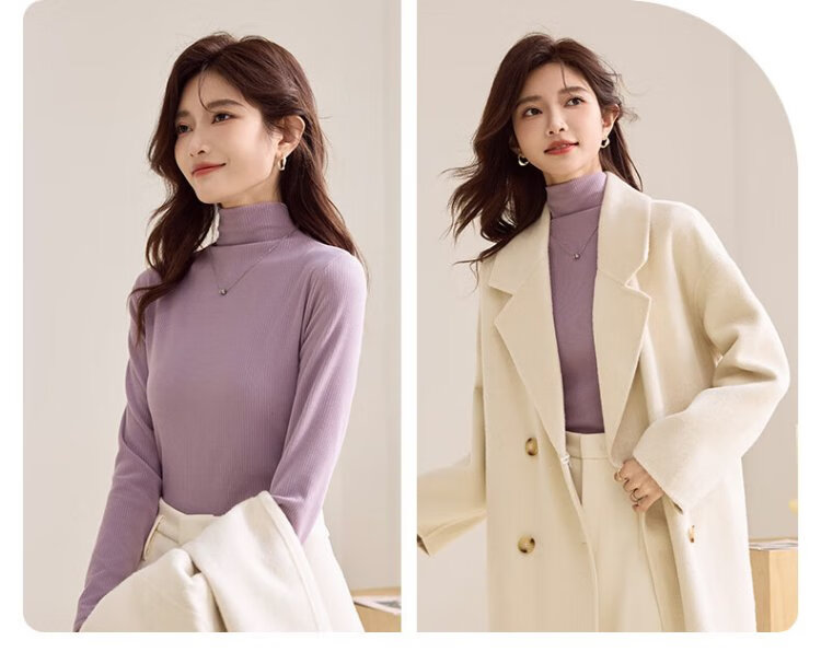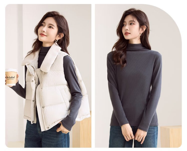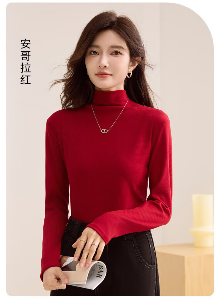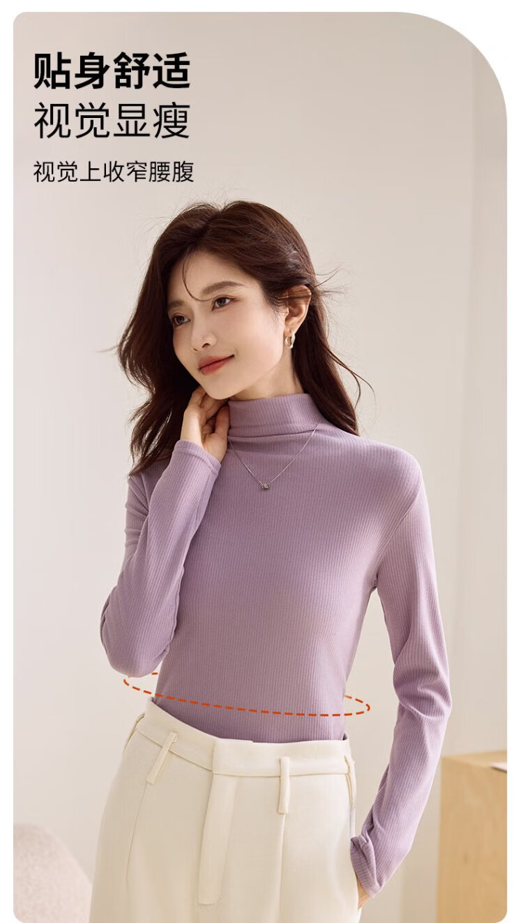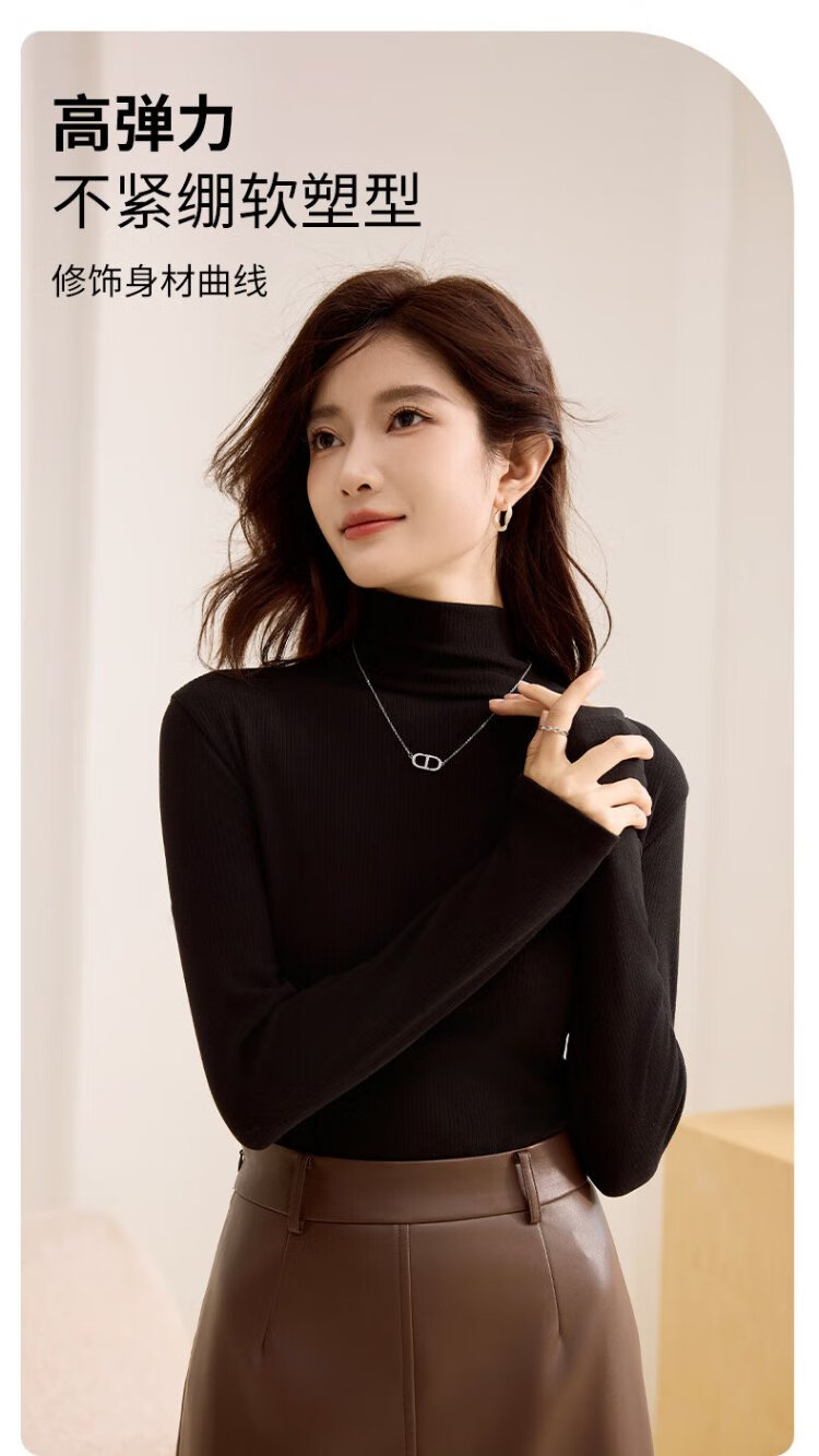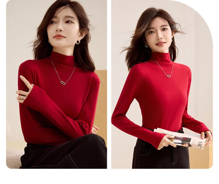 BOPRUIEY thickened brushed bottoming shirt for women, autumn and winter style, half turtleneck, vertical pattern, skin-friendly long-sleeved top