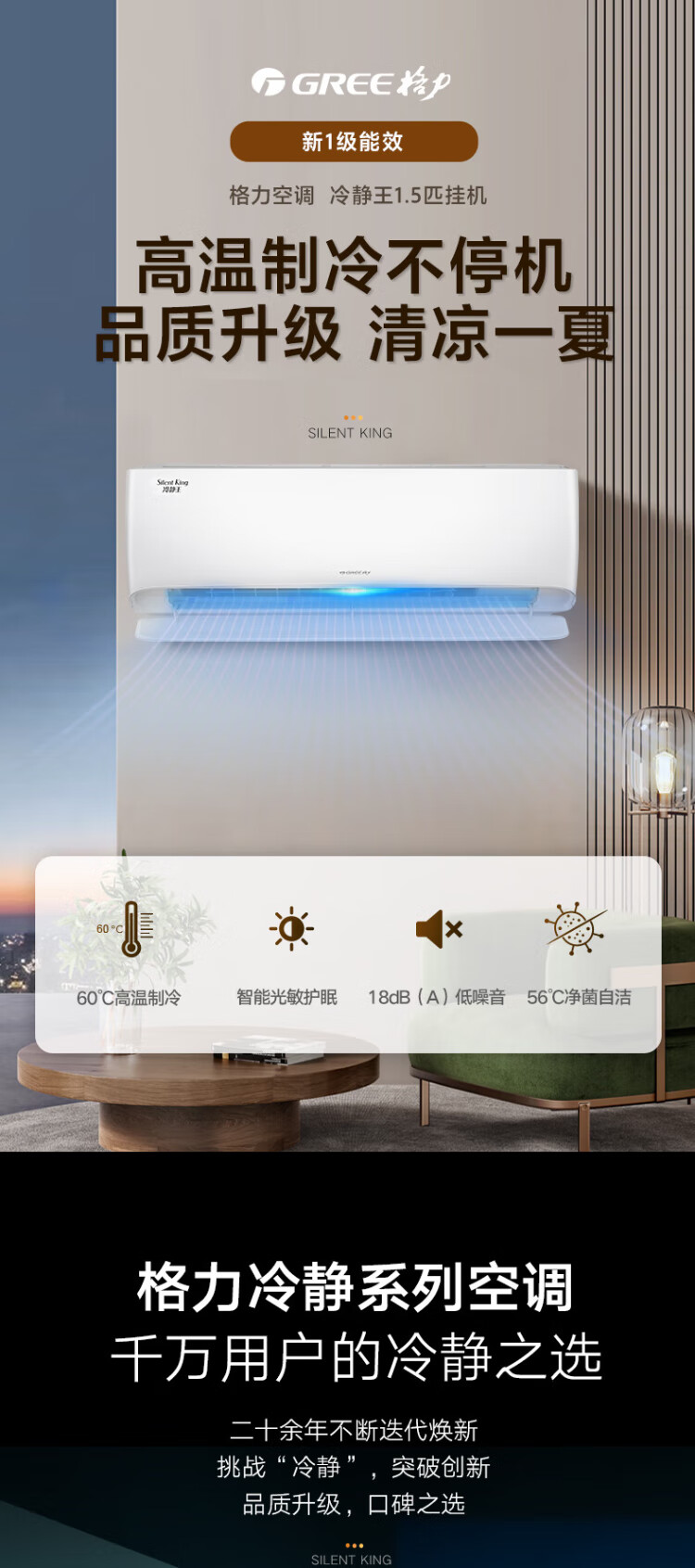 Gree (GREE) 1.5 HP Calm King New Level Energy Efficiency Inverter Pure Copper Tube Wall-Mounted Air Conditioner Same Style as Store National Subsidy KFR-35GW/(35549)FNhAc-B