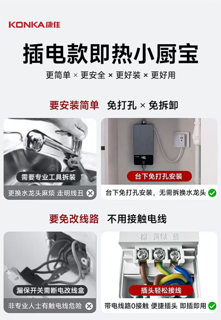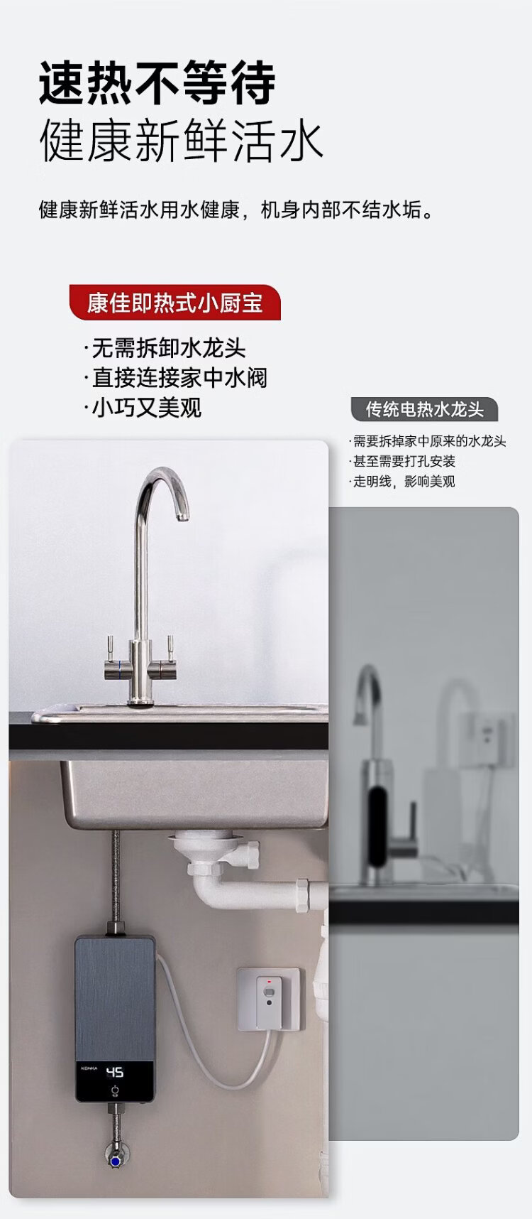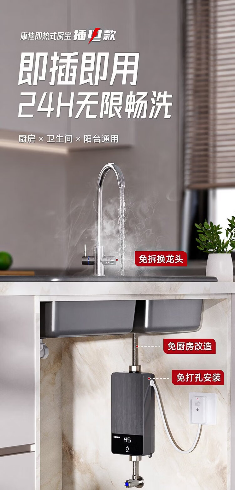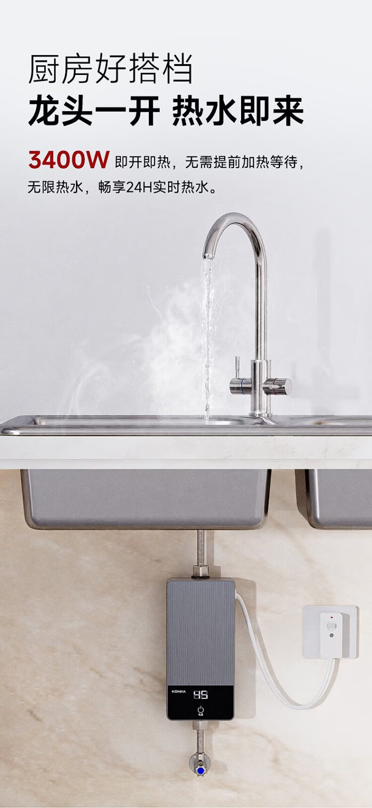 KONKA instant hot kitchen basin 3400W punch-free household kitchen basin plug type electric hot water faucet heating treasure water heater DJ34-KSDTF01