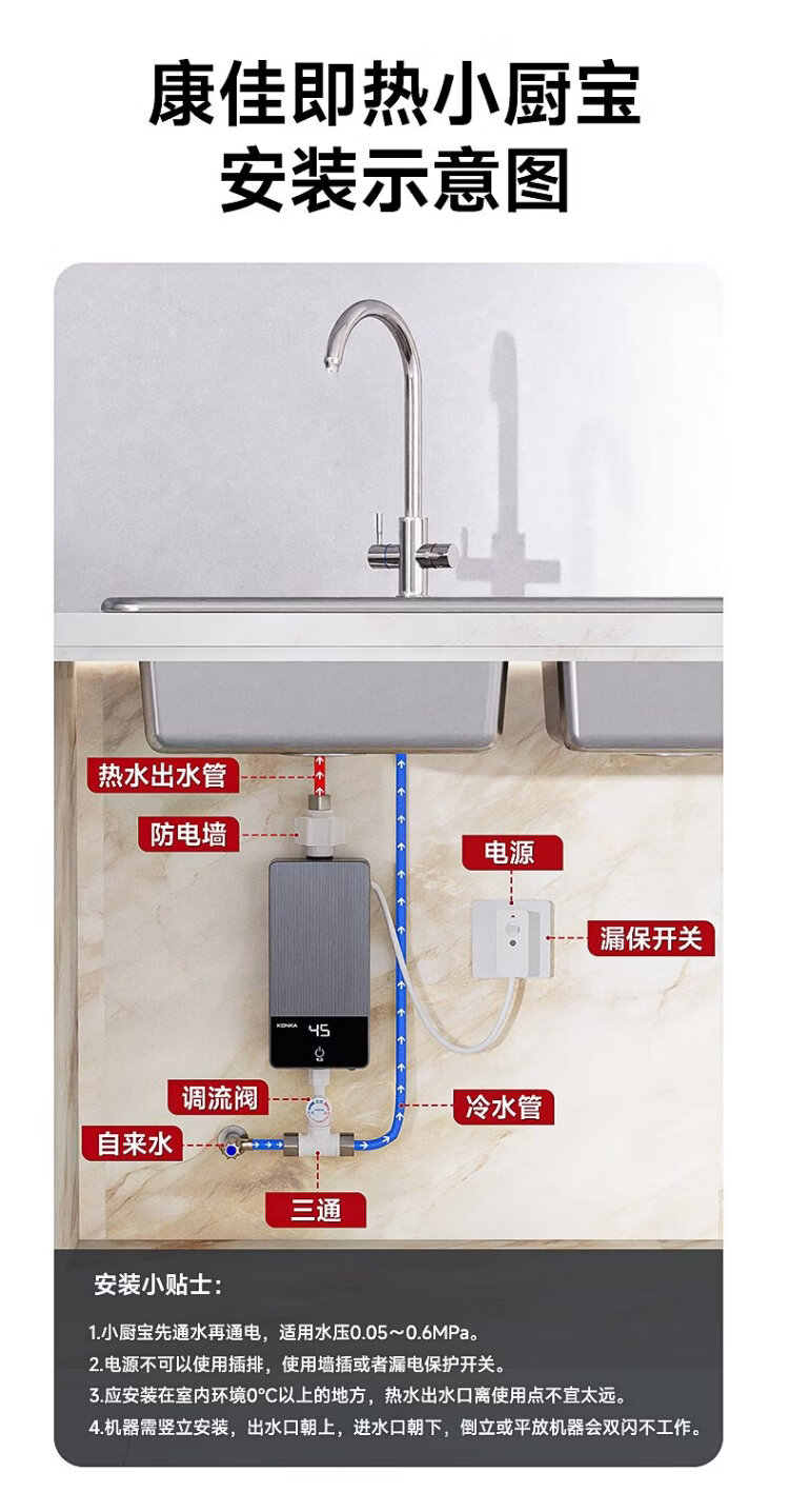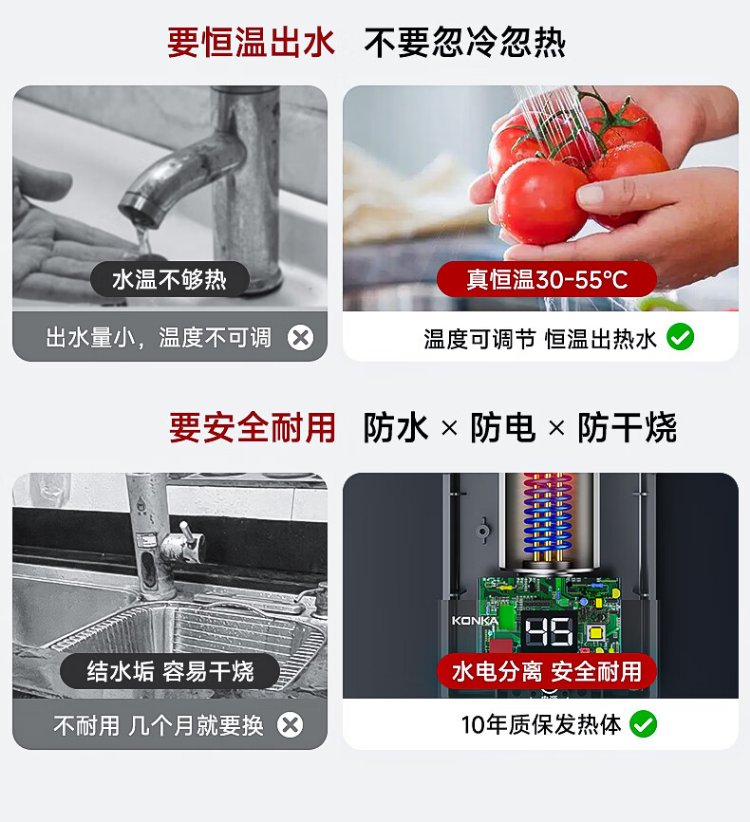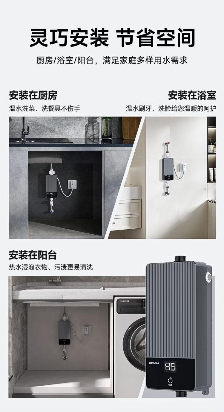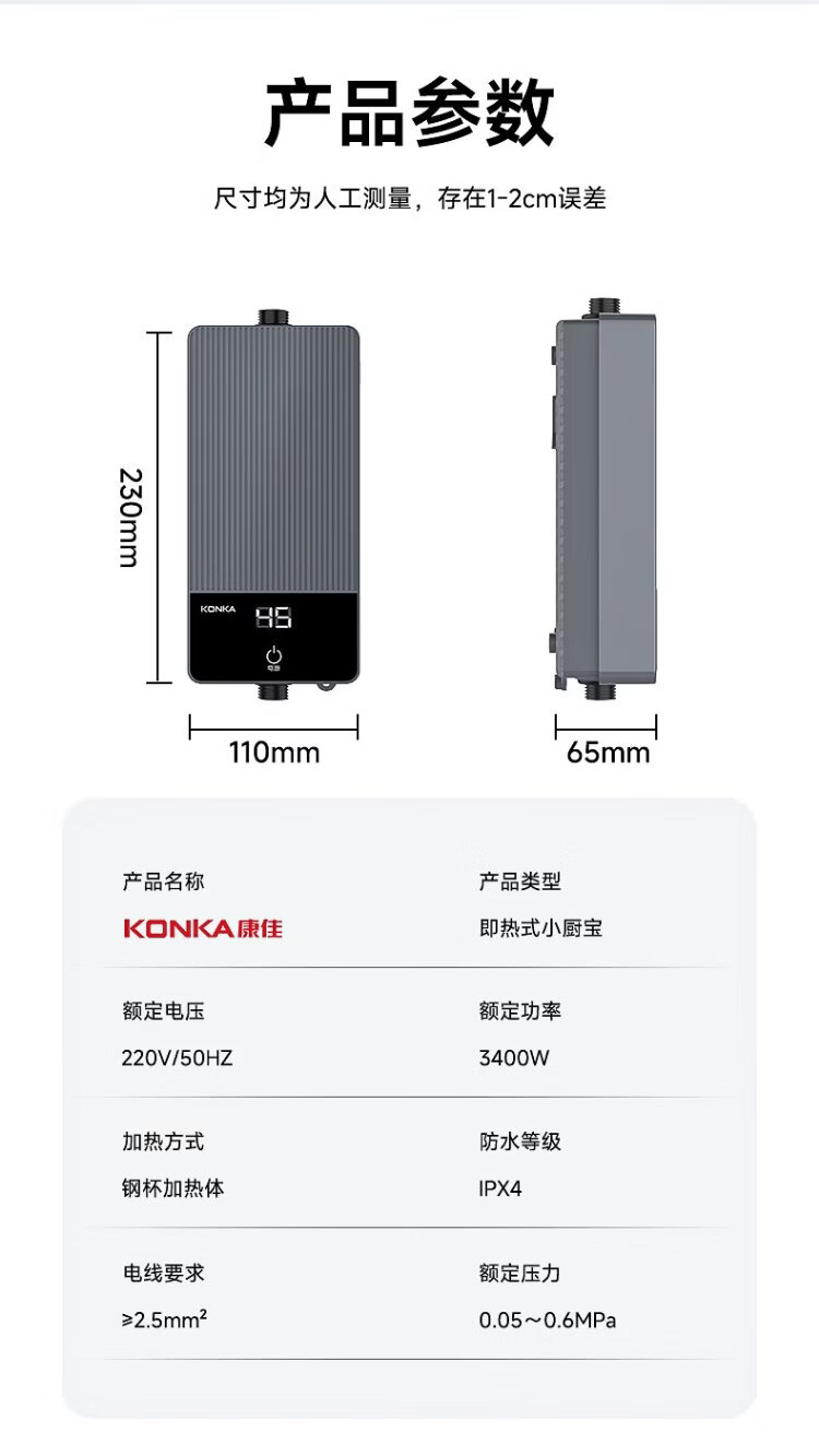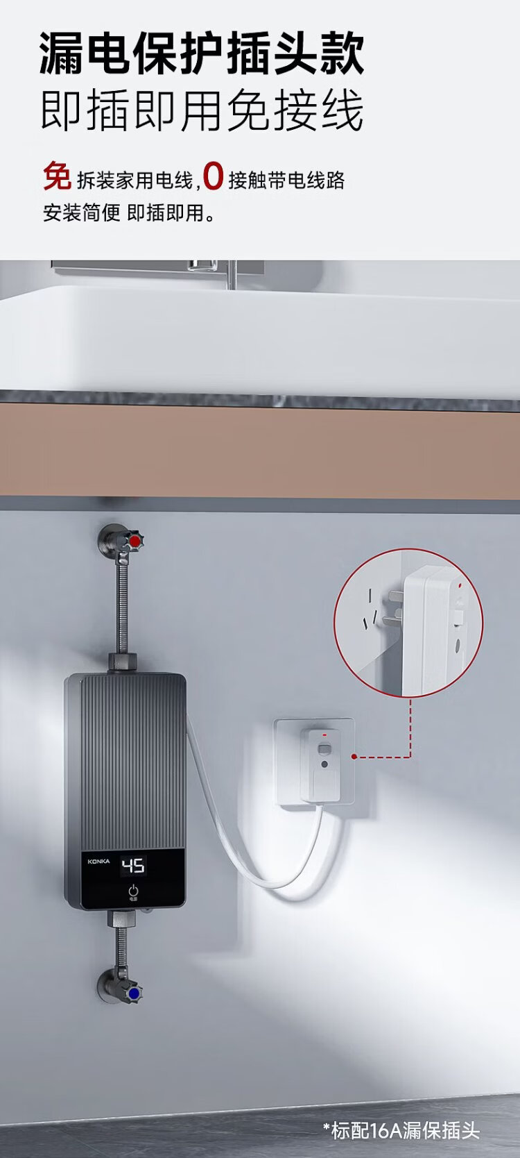 KONKA instant hot kitchen basin 3400W punch-free household kitchen basin plug type electric hot water faucet heating treasure water heater DJ34-KSDTF01