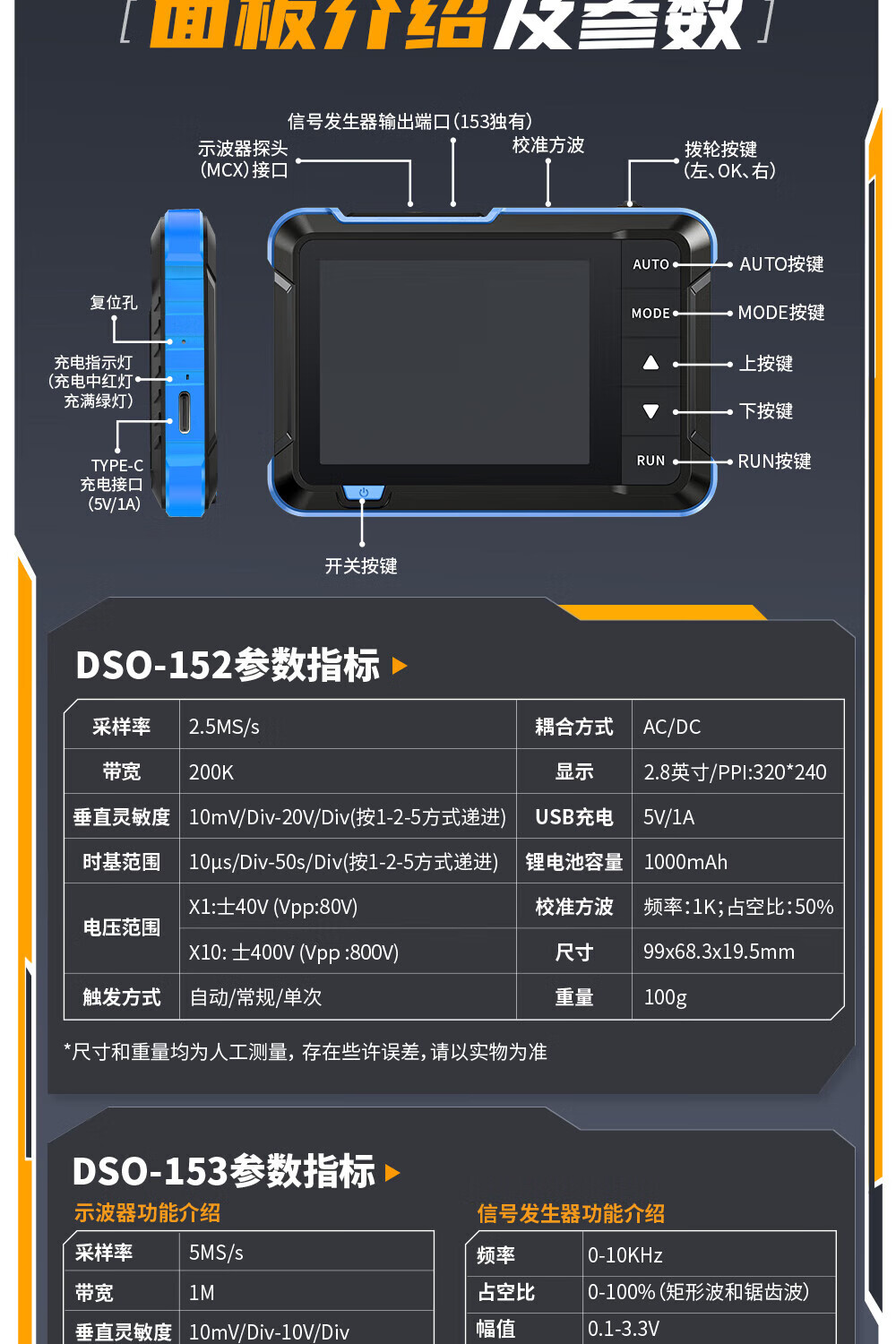 FNIRSI small digital oscilloscope two-in-one multi-function portable mini signal generator 1M bandwidth