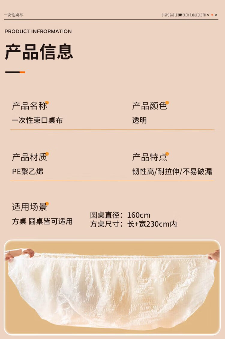 Forty Thousand Kilometers Disposable Tablecloth Thickened Transparent Belt Tablecloth Dining Table Film Waterproof and Oilproof Large Size 160*160cm*10 sheets