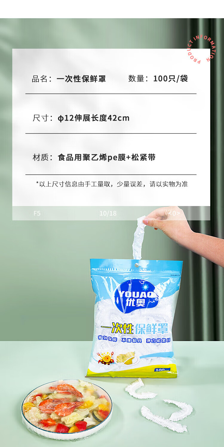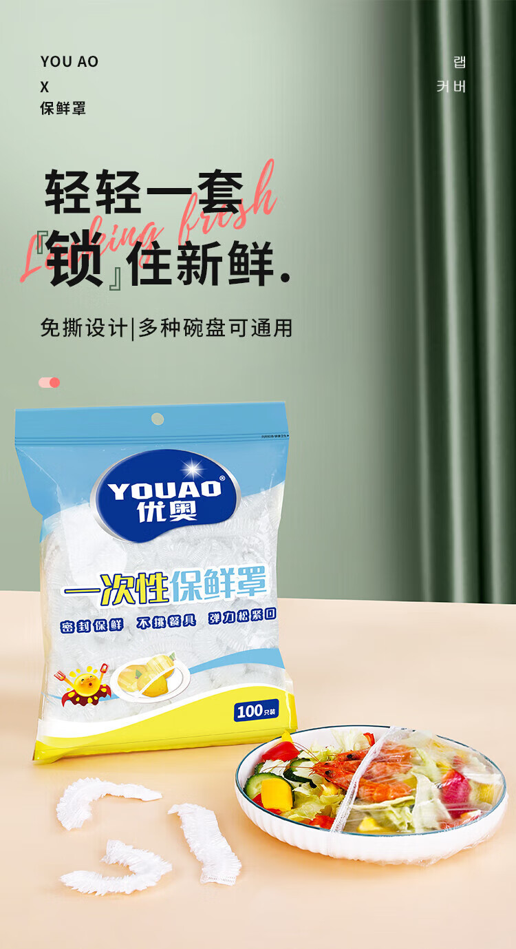 Youao disposable cling film cover 100 pieces food grade home refrigerator fresh-keeping bag elastic large and small bowls universal
