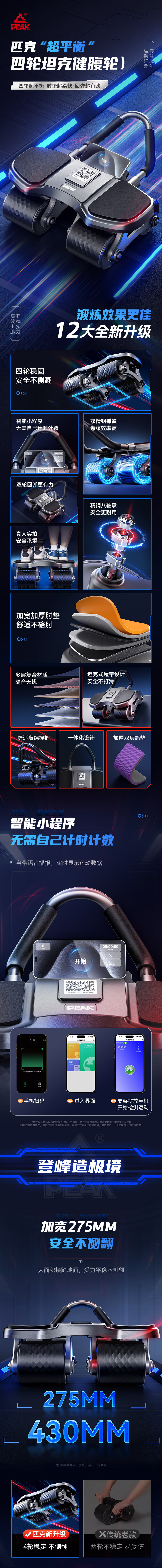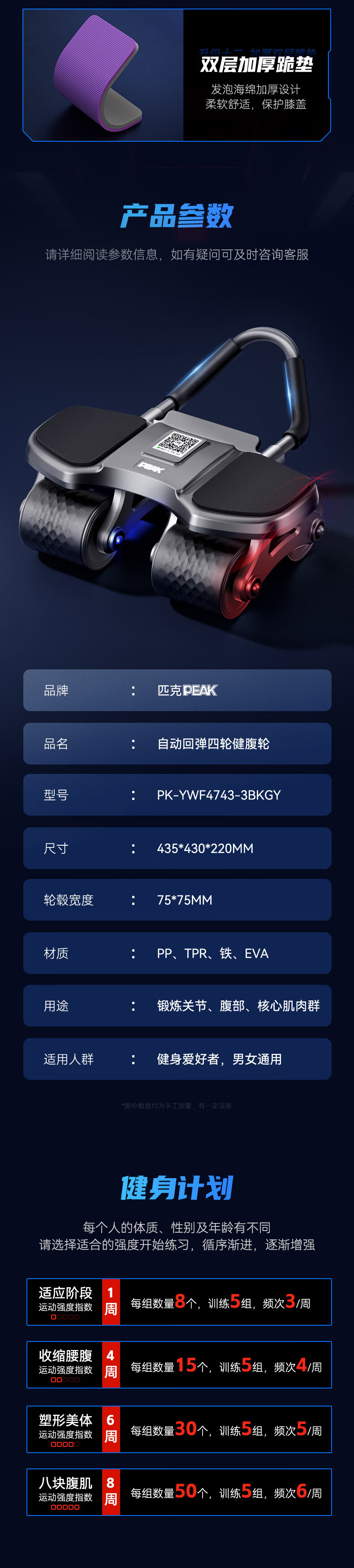 PEAK four-wheel abdominal fitness wheel, automatic rebound elbow support kneeling pad with auxiliary abdominal muscle wheel, abdominal slimming fitness equipment for home use