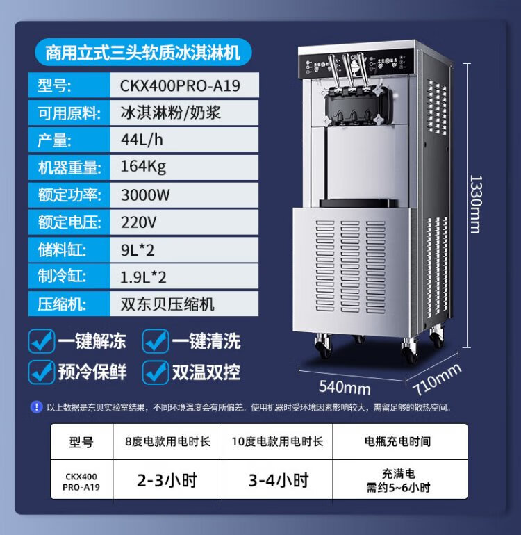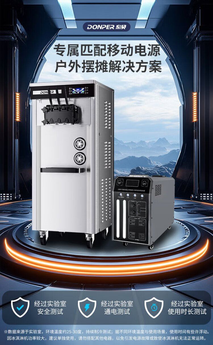 Donper commercial ice cream machine vertical soft ice cream machine cone machine fully automatic milk tea shop equipment ice cream machine CKX400 mobile power supply 8 degrees