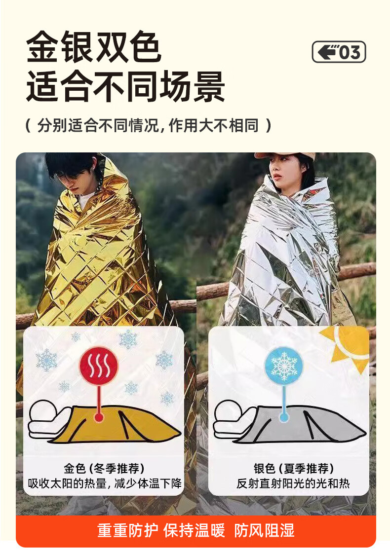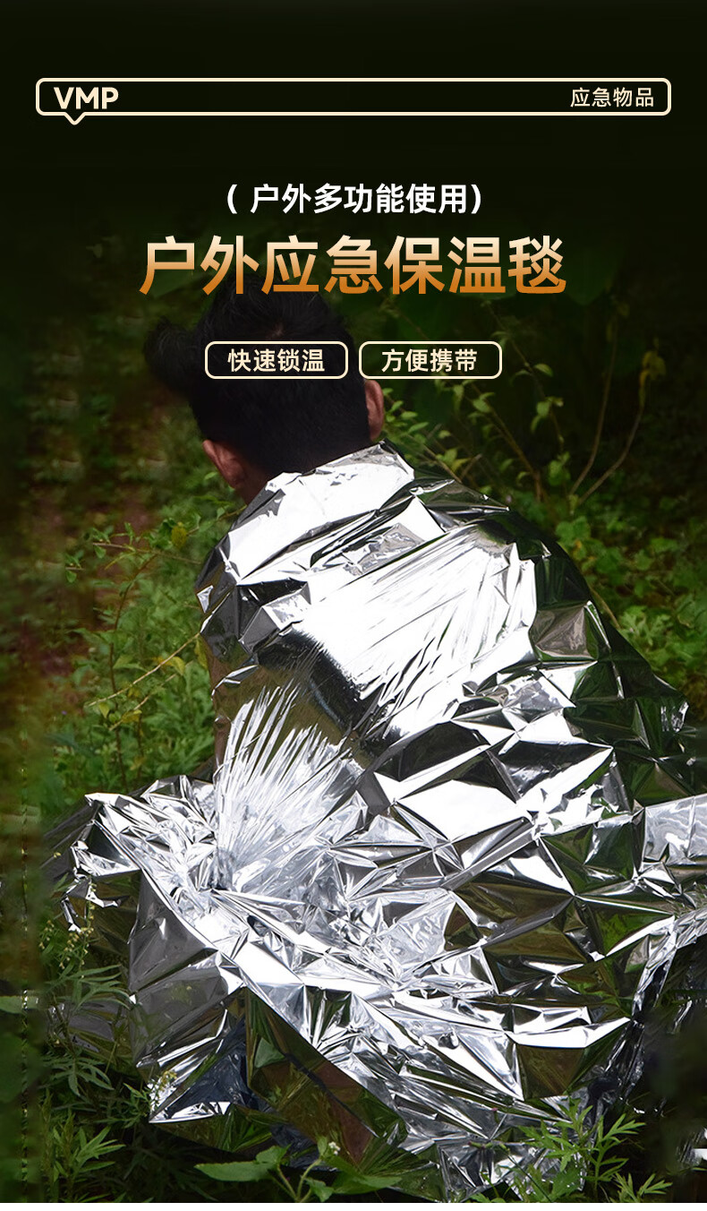 VMP outdoor emergency insulation blanket double-sided silver thickened anti-cold and anti-hyperthermia outdoor multi-functional emergency blanket camping survival equipment