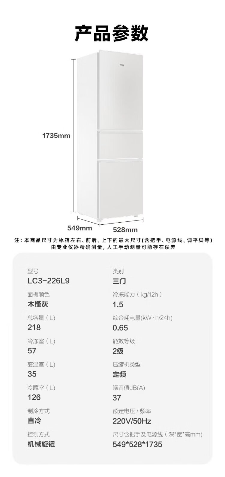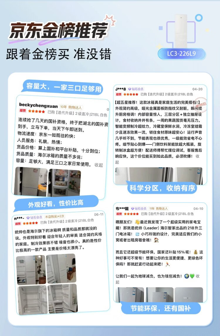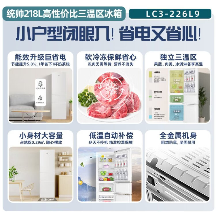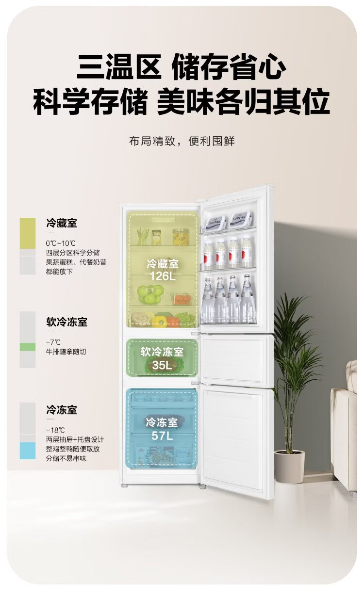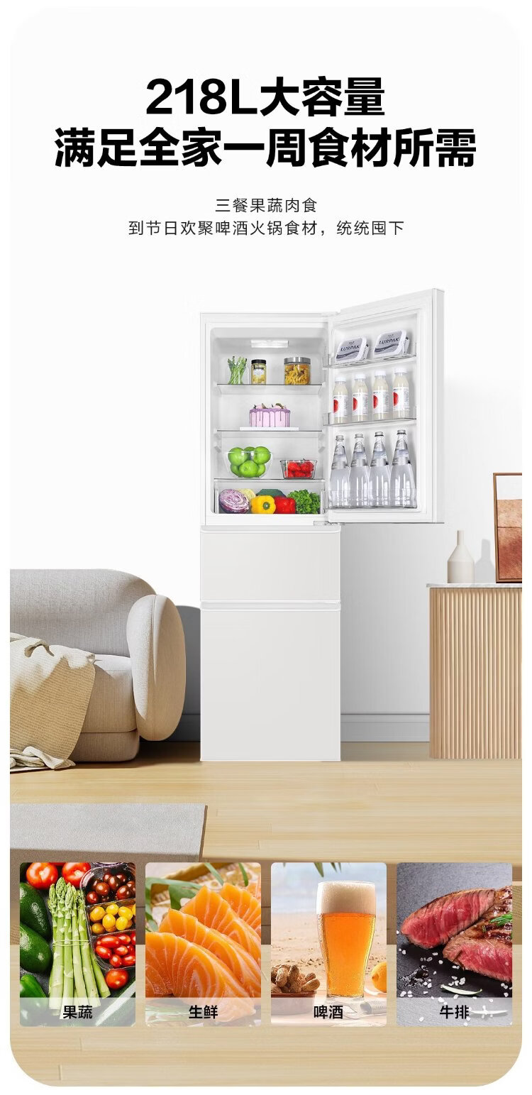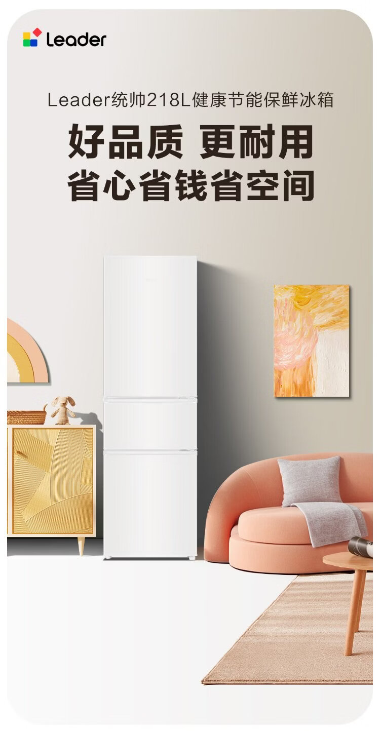 Leader Haier Refrigerator produces Yuexiang series 218L three-door household small refrigerator Level 2 energy efficiency direct cooling soft freezer refrigerator LC3-226L9 trade-in subsidy
