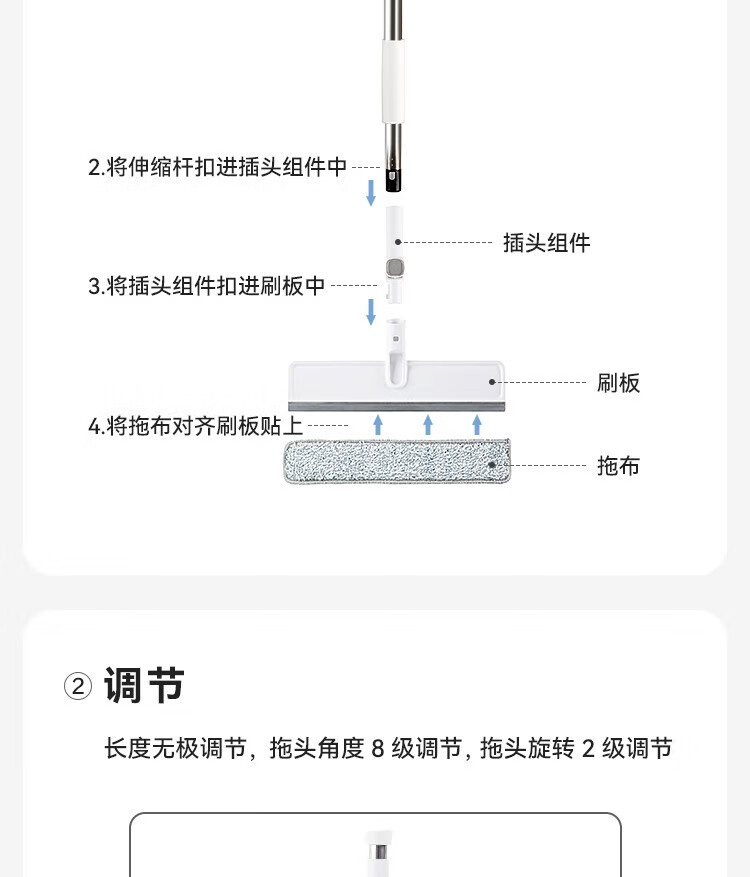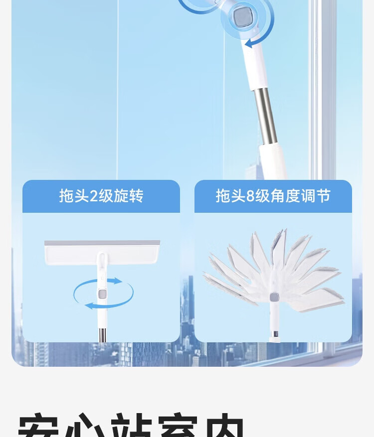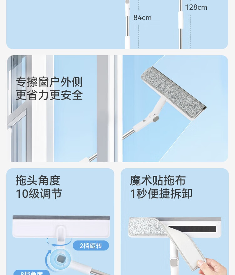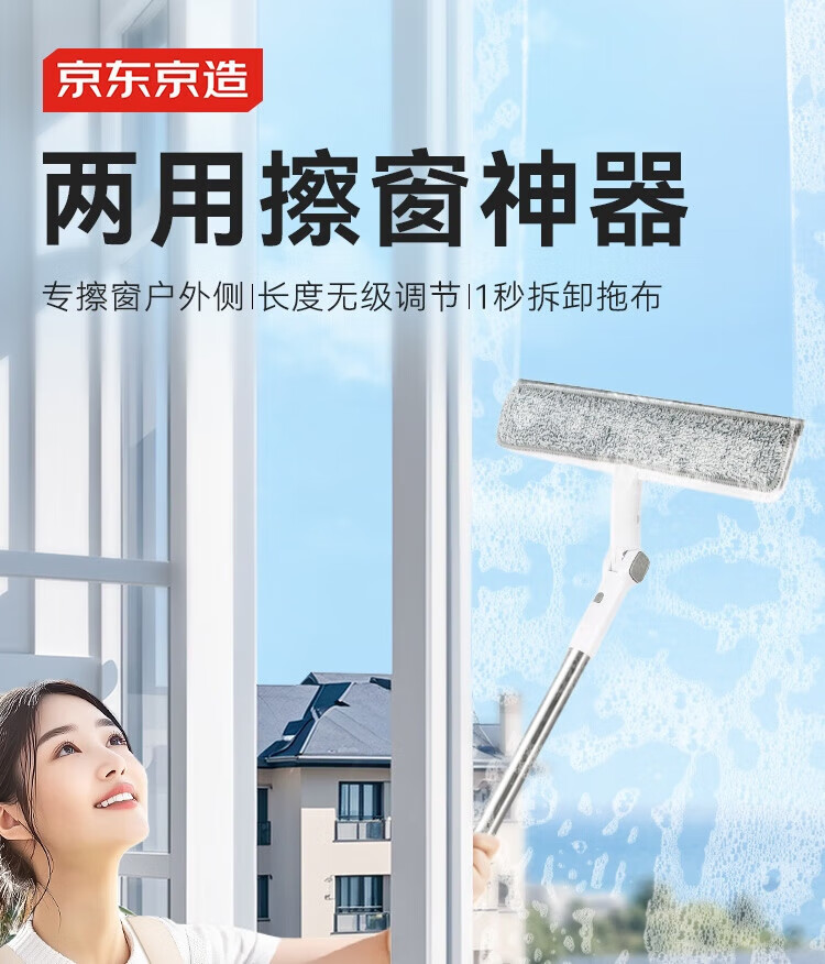 Glass cleaning artifact made in Tokyo, household high-rise window cleaning artifact without watermark, adjustable mop for housekeeping, including mop*2