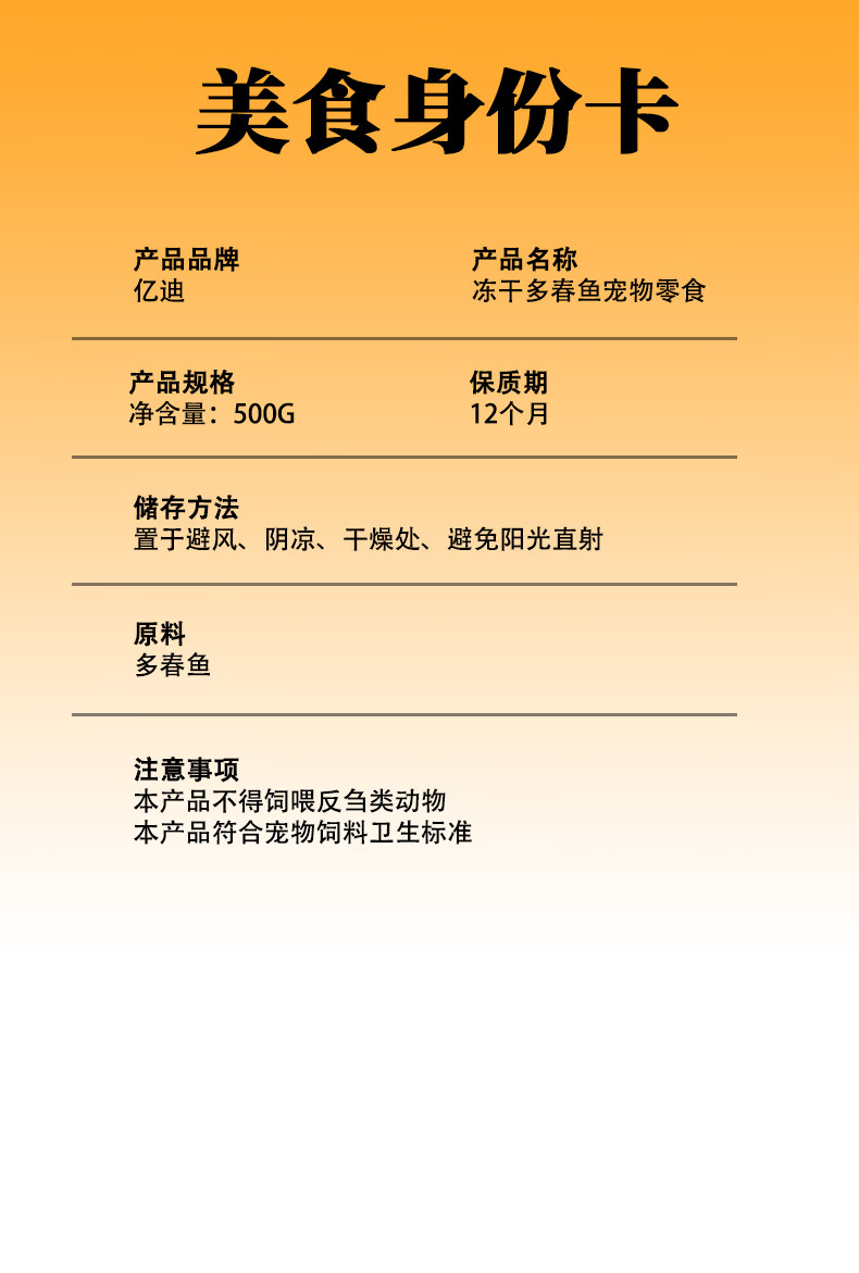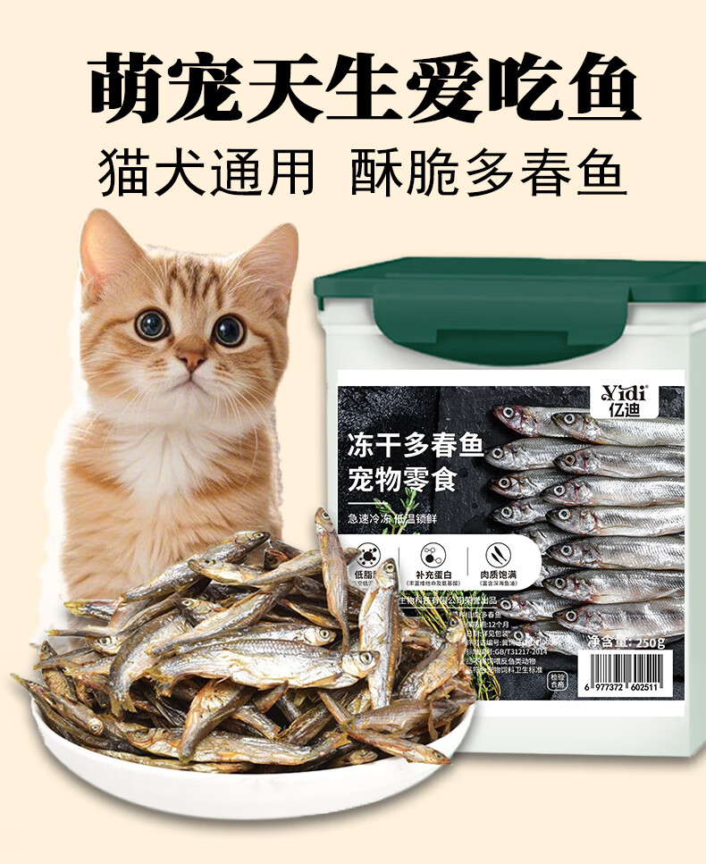 Yidi freeze-dried spring fish 250g cat fish dried adult cats and kittens pet teething snacks freeze-dried cats