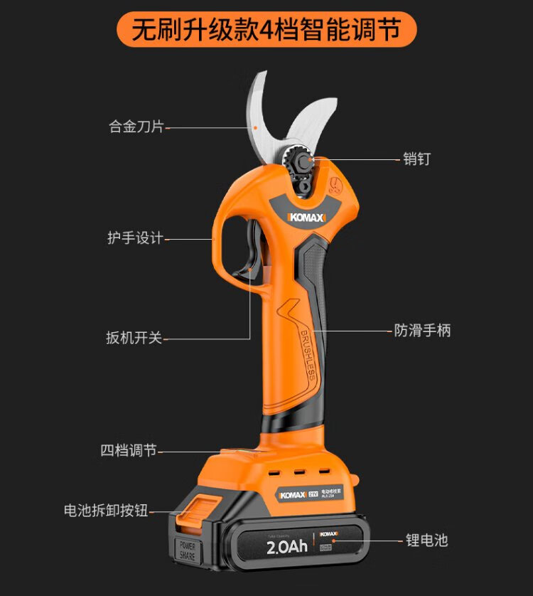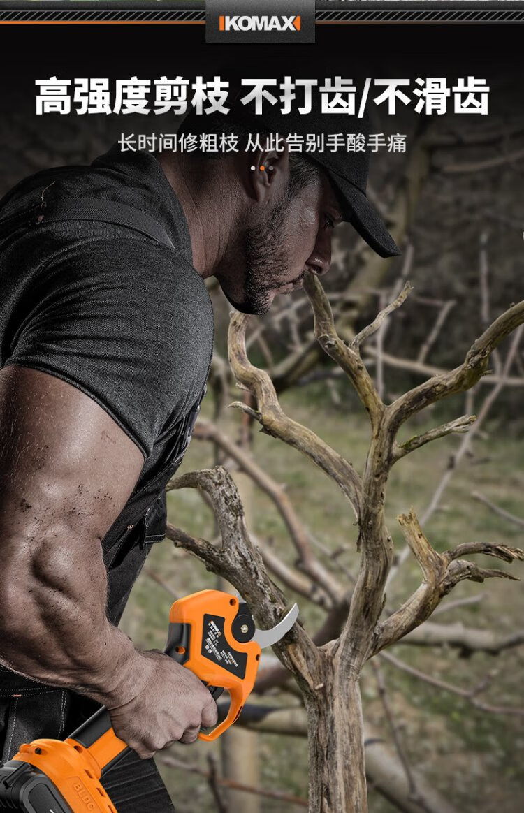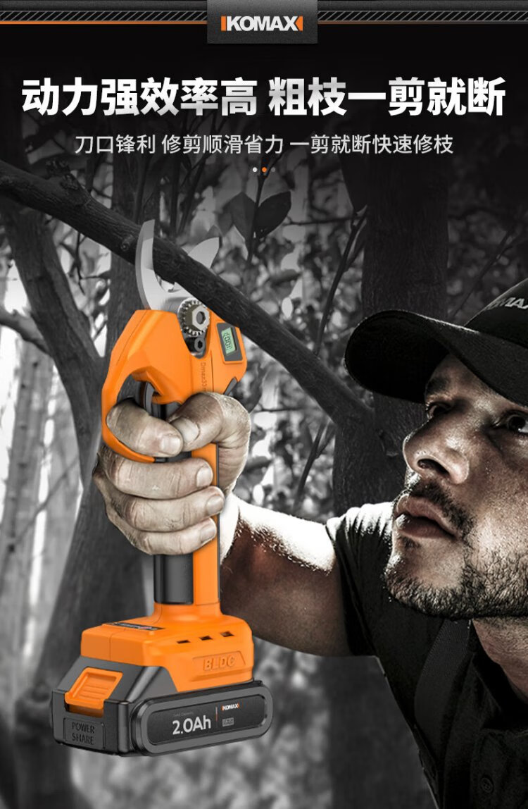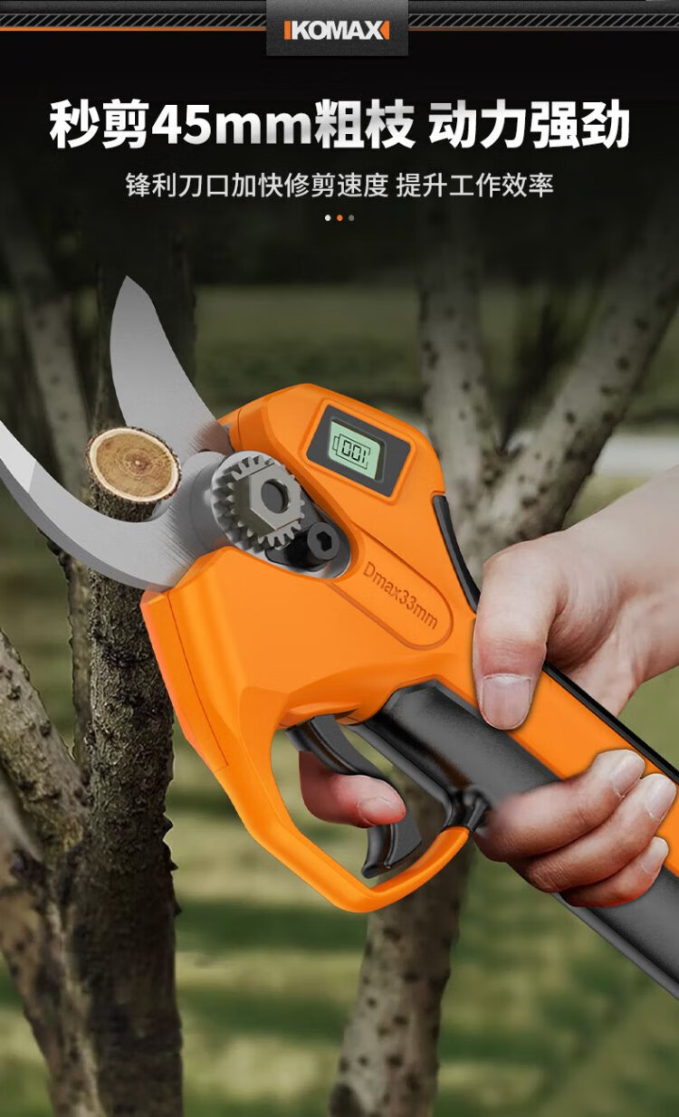 Komax electric scissors for fruit trees, industrial-grade rechargeable powerful scissors for pruning branches, garden lithium electric scissors artifact