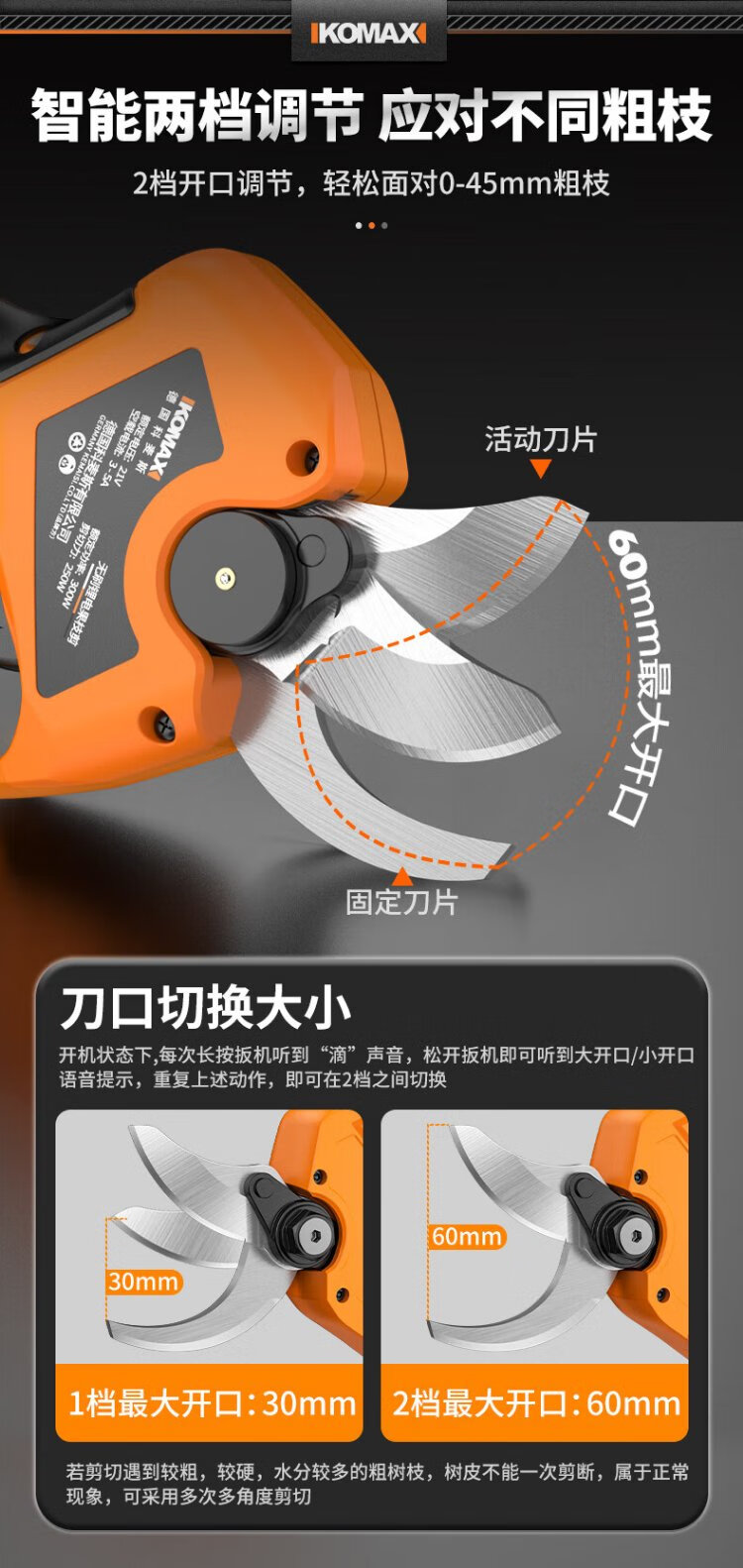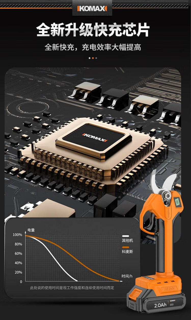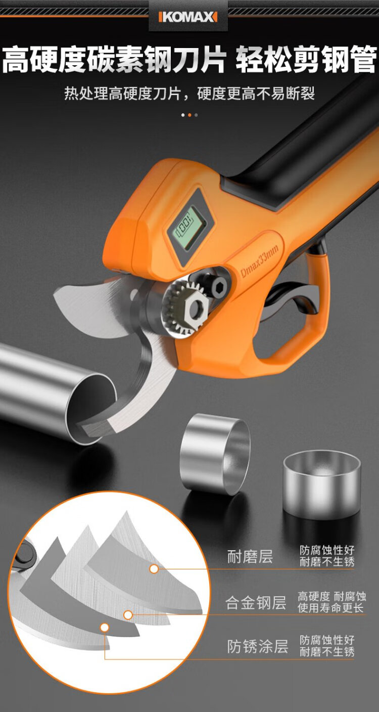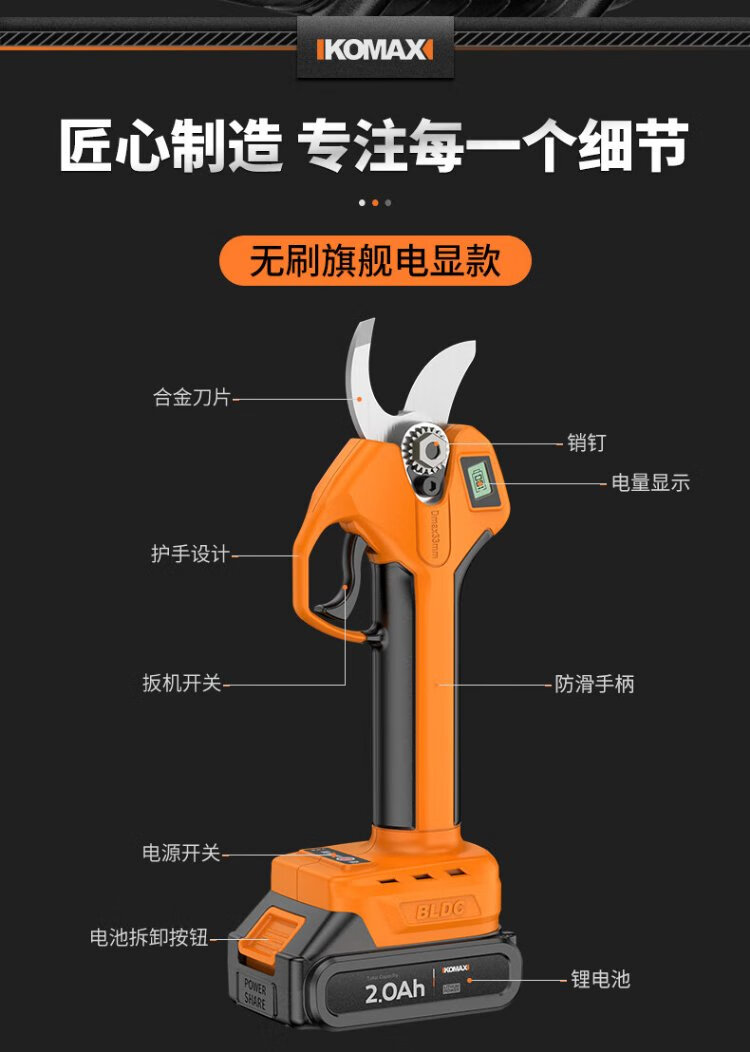 Komax electric scissors for fruit trees, industrial-grade rechargeable powerful scissors for pruning branches, garden lithium electric scissors artifact