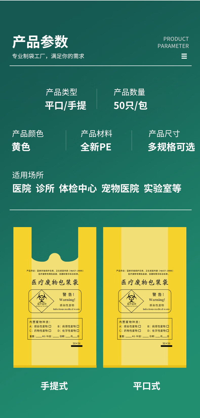 Hongantu Medical Garbage Bag Portable Vest Type Medical Clinic Special New PE Material Garbage Bag Portable 22*10*38cm3 Silk 100 Pieces (5L Bucket) Beijing Distribution Can Be Customized