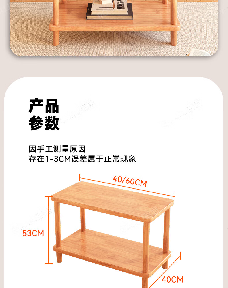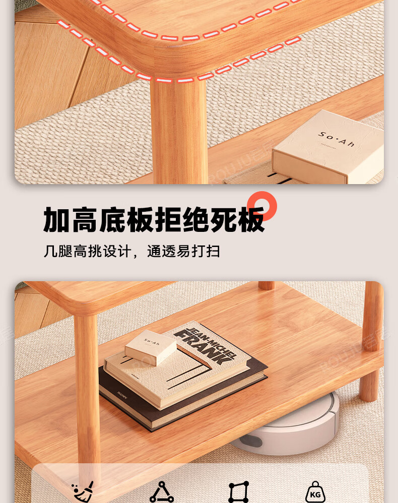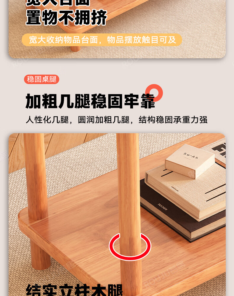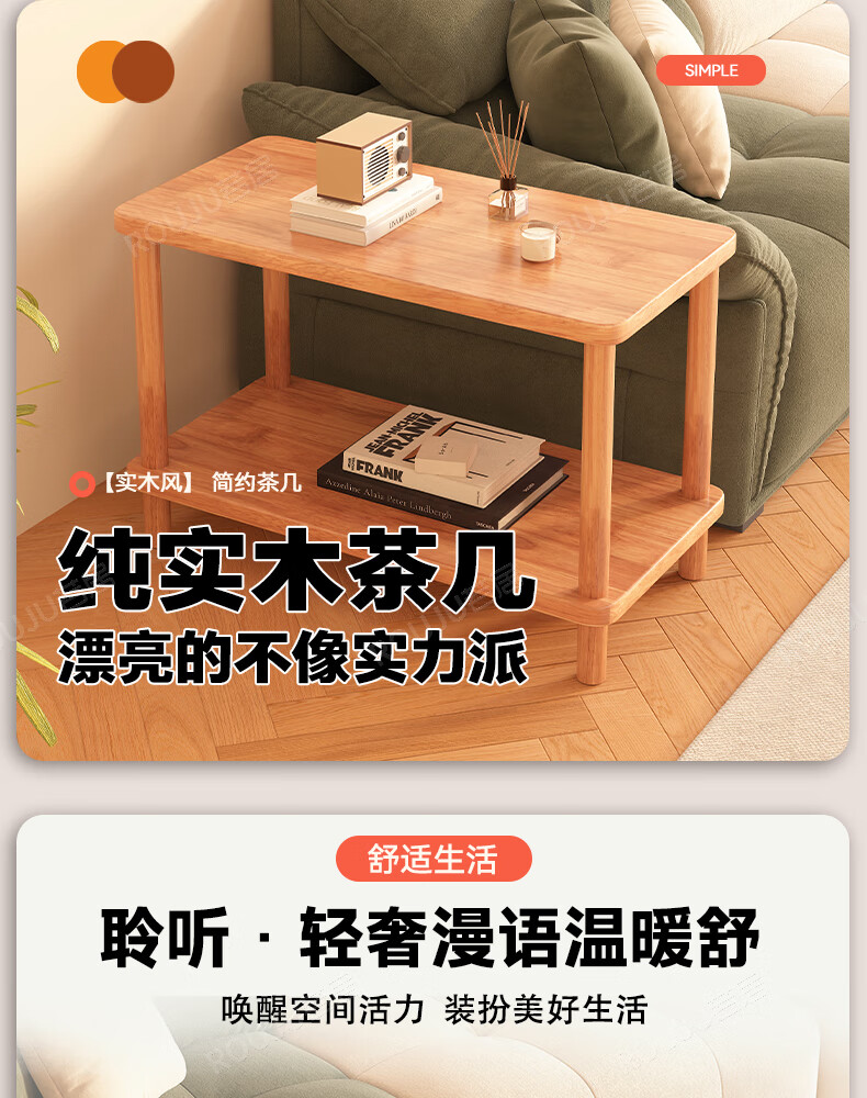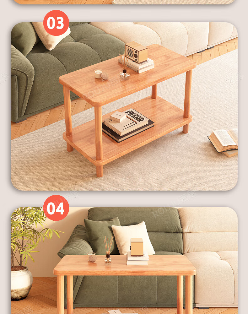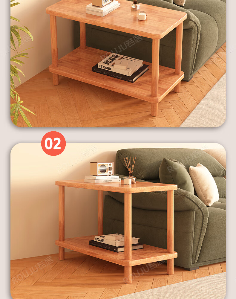 Ruoju coffee table shelf imported rubber wood small solid wood living room bedside cabinet 0.6m*0.4m BJ-02