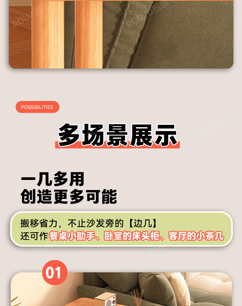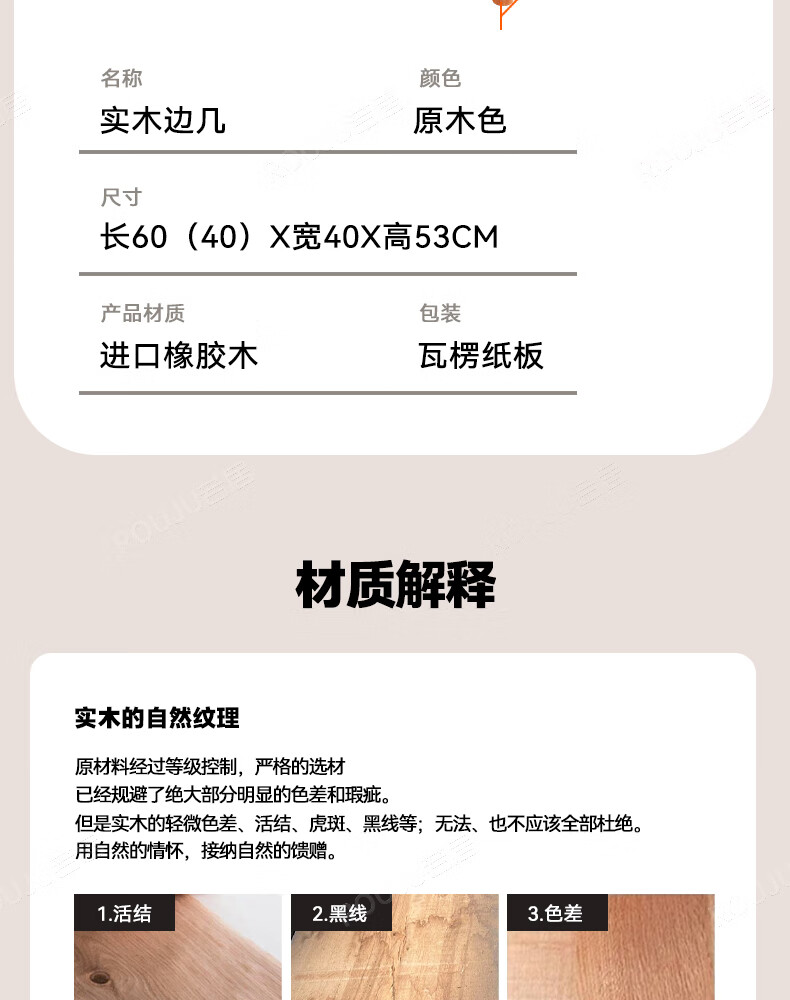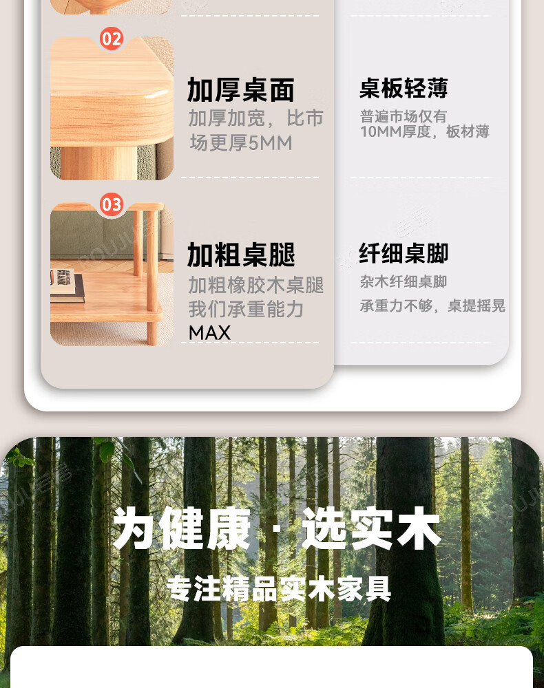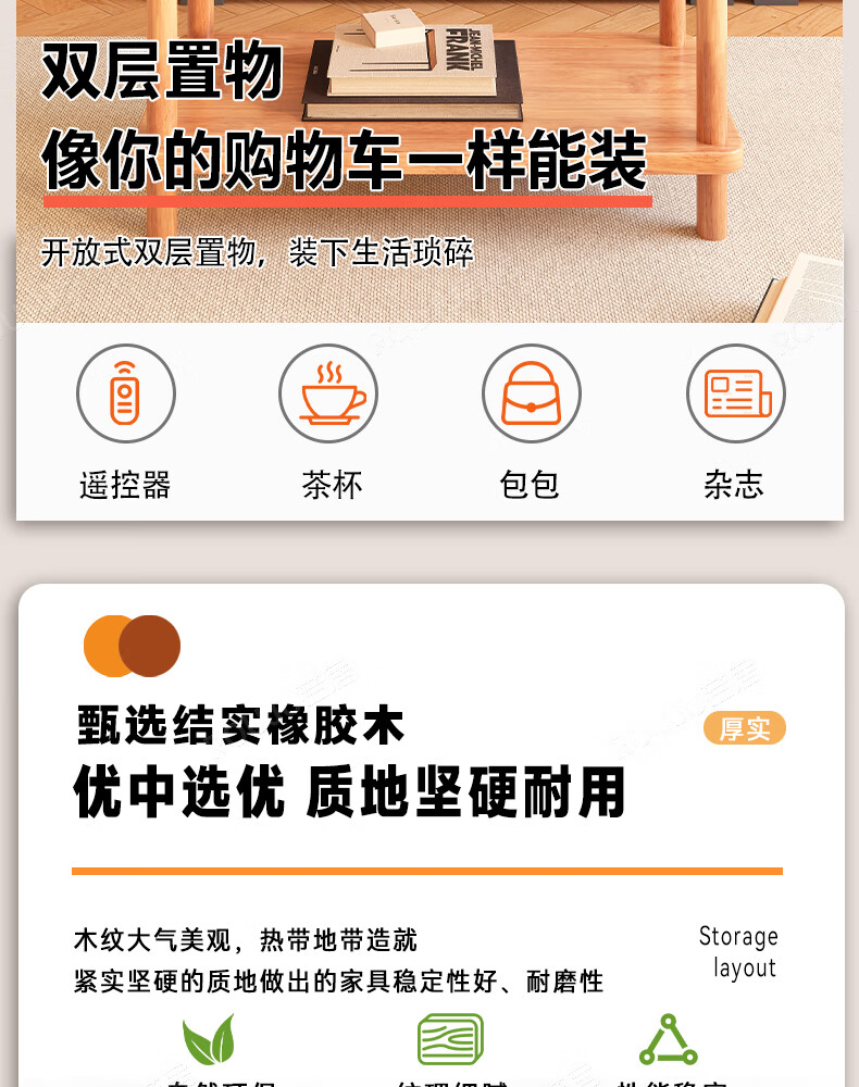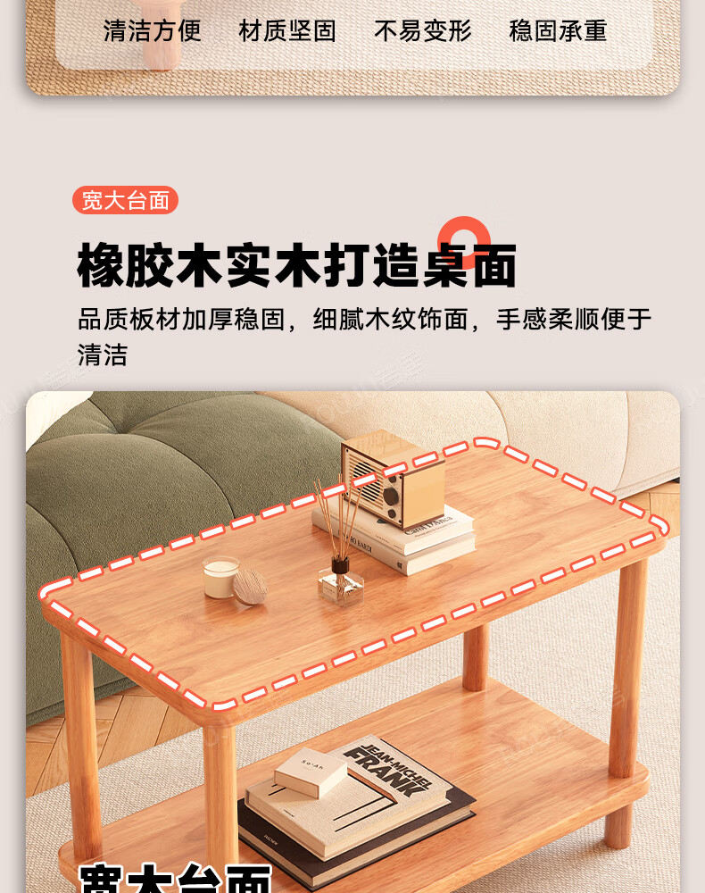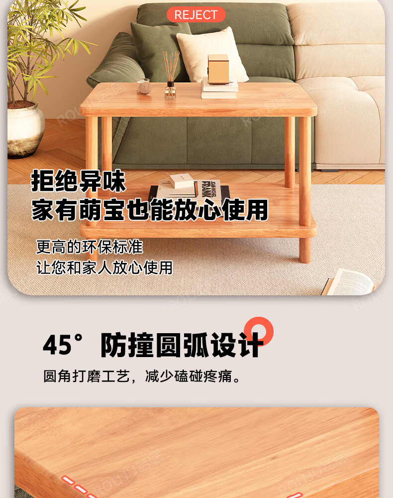 Ruoju coffee table shelf imported rubber wood small solid wood living room bedside cabinet 0.6m*0.4m BJ-02